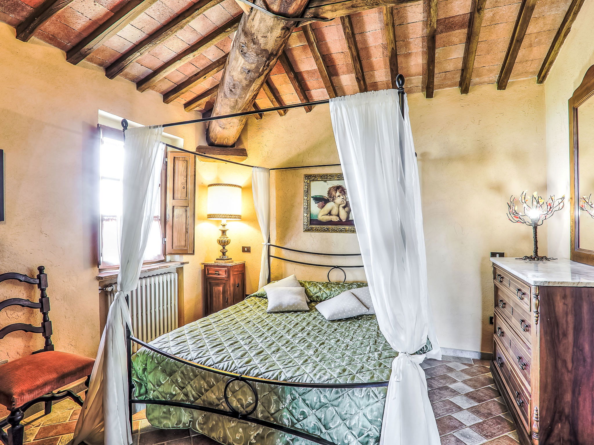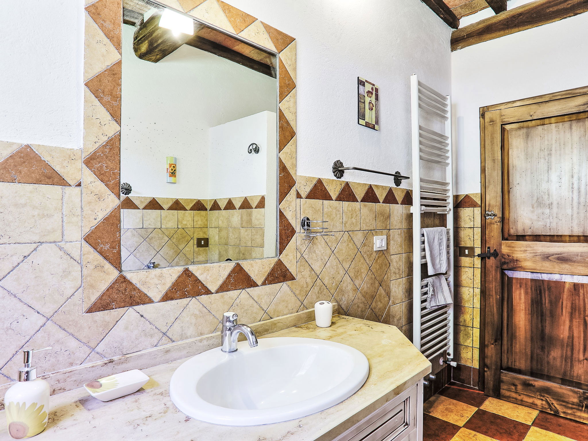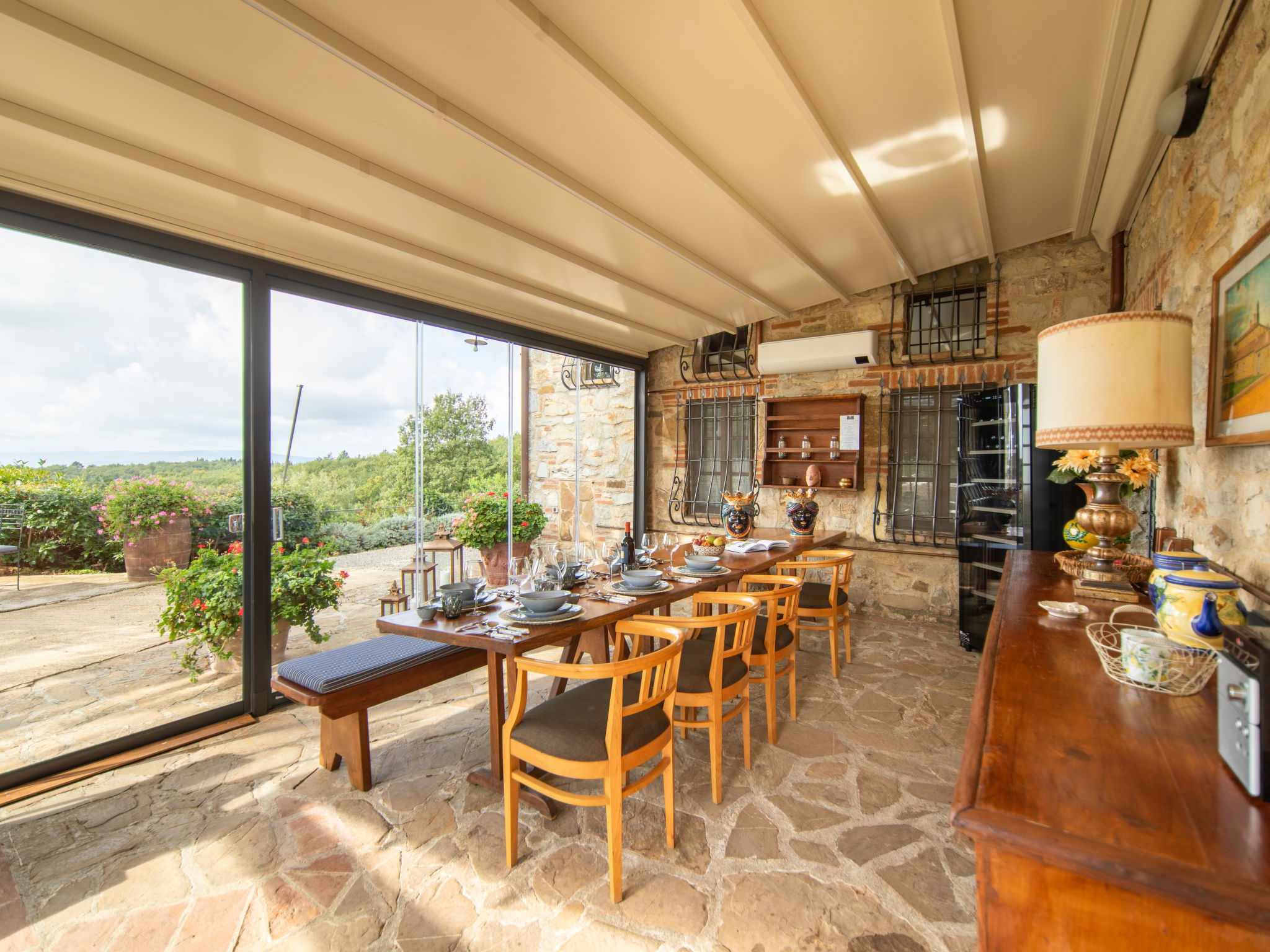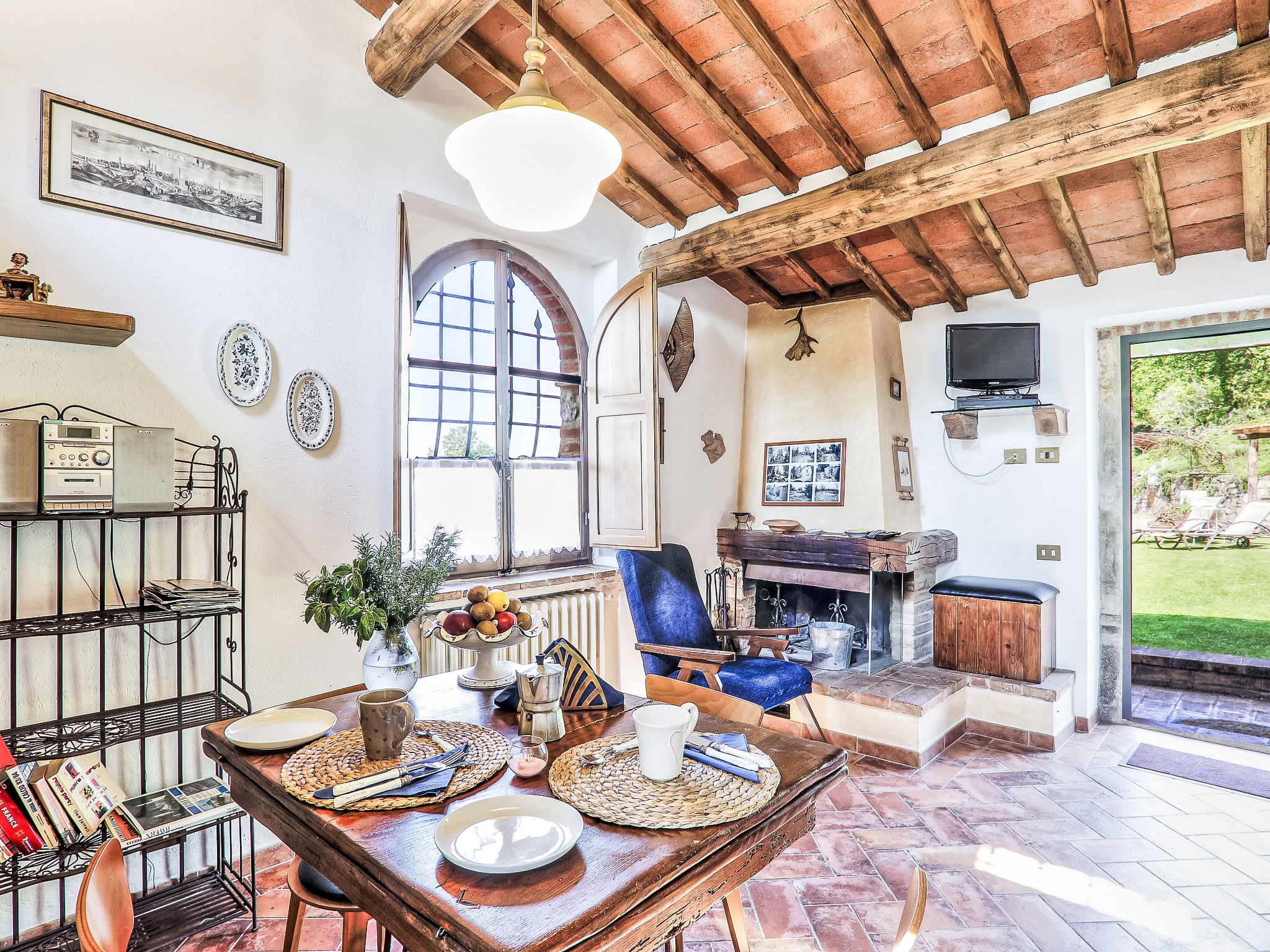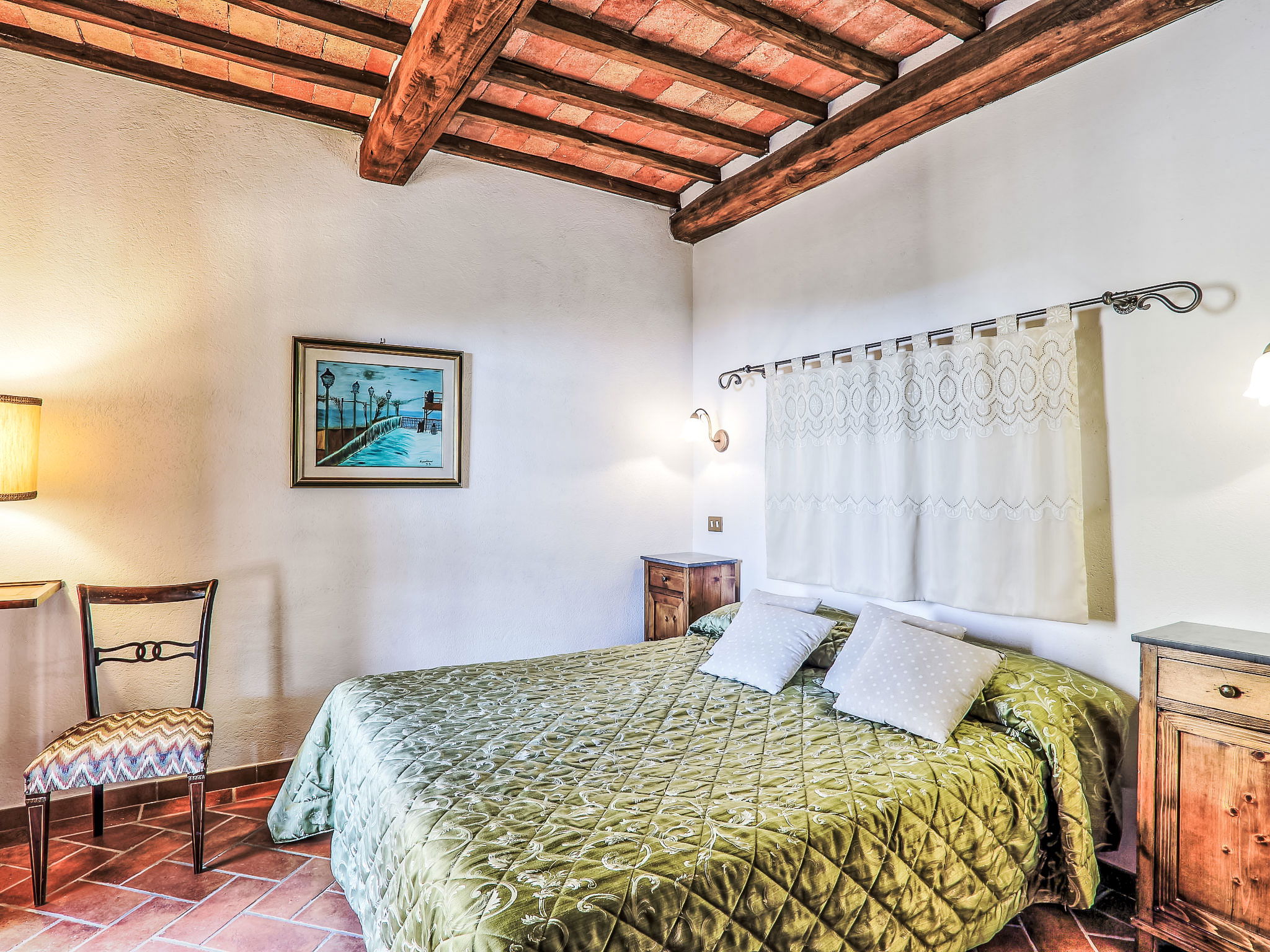Casale il Poggino, located in a hilly position in the heart of the Chianti Classico, consists of two units, the farmhouse which is divided into three apartments (for 12 people) communicating with each other from the outside and the annex (for 04 people). Country house "Casale Il Poggino", 400 m a.s.l.. 2 houses in the residence. 5.8 km from the centre of Castellina in Chianti, 26 km from the centre of Siena, 42 km from the centre of Firenze, in a secluded, quiet, sunny position on top of a hill, in the countryside. Private: garden 1 ha (fenced), swimming pool fenced (12 x 6 m, depth 120 - 240 cm, seasonal availability: 01.Apr. - 31.Oct.). Outdoor shower, table tennis, pergola, garden furniture, barbecue. In the complex: fitness room, storage room for bicycles, heating to be paid on the spot, heating available only from 01.Nov. - 07.Apr., bicycle rental. Available: bicycles (4). Cook on request (extra). Motor access to the house (1.5 km via unmade road). Roofed, parking on the premises. Grocery 5.8 km, supermarket 5.8 km, restaurant 5.8 km, bus stop 3.5 km, thermal baths "Rapolano Terme" 50 km. Nearby attractions: San Donato in Poggio 16 km, Radda in Chianti 16 km, Monteriggioni 18 km, Gaiole in Chianti 19 km, Greve in Chianti 25 km, San Gimignano 47 km. Residence with electric gates. Video surveillance in the outdoor area.