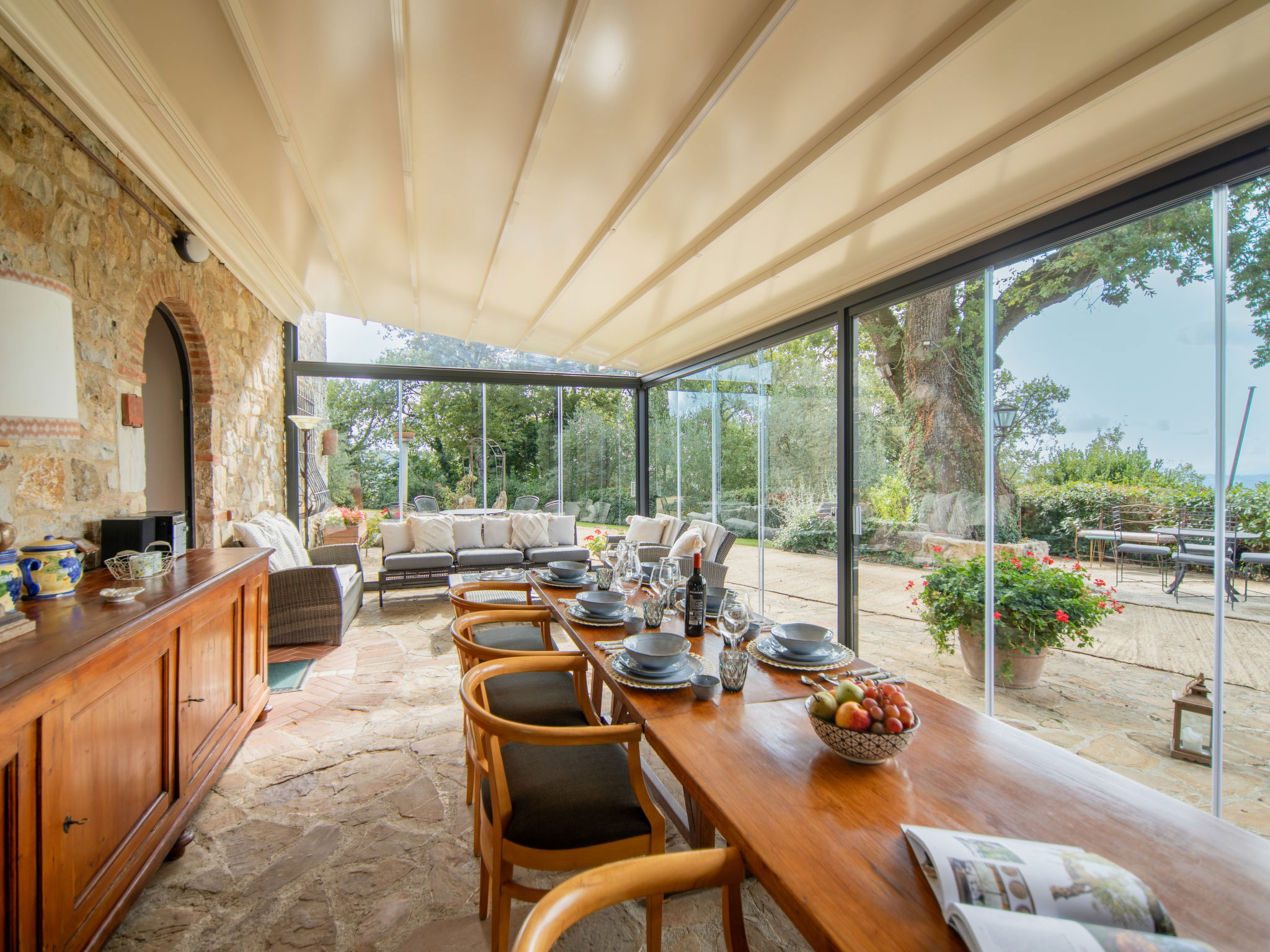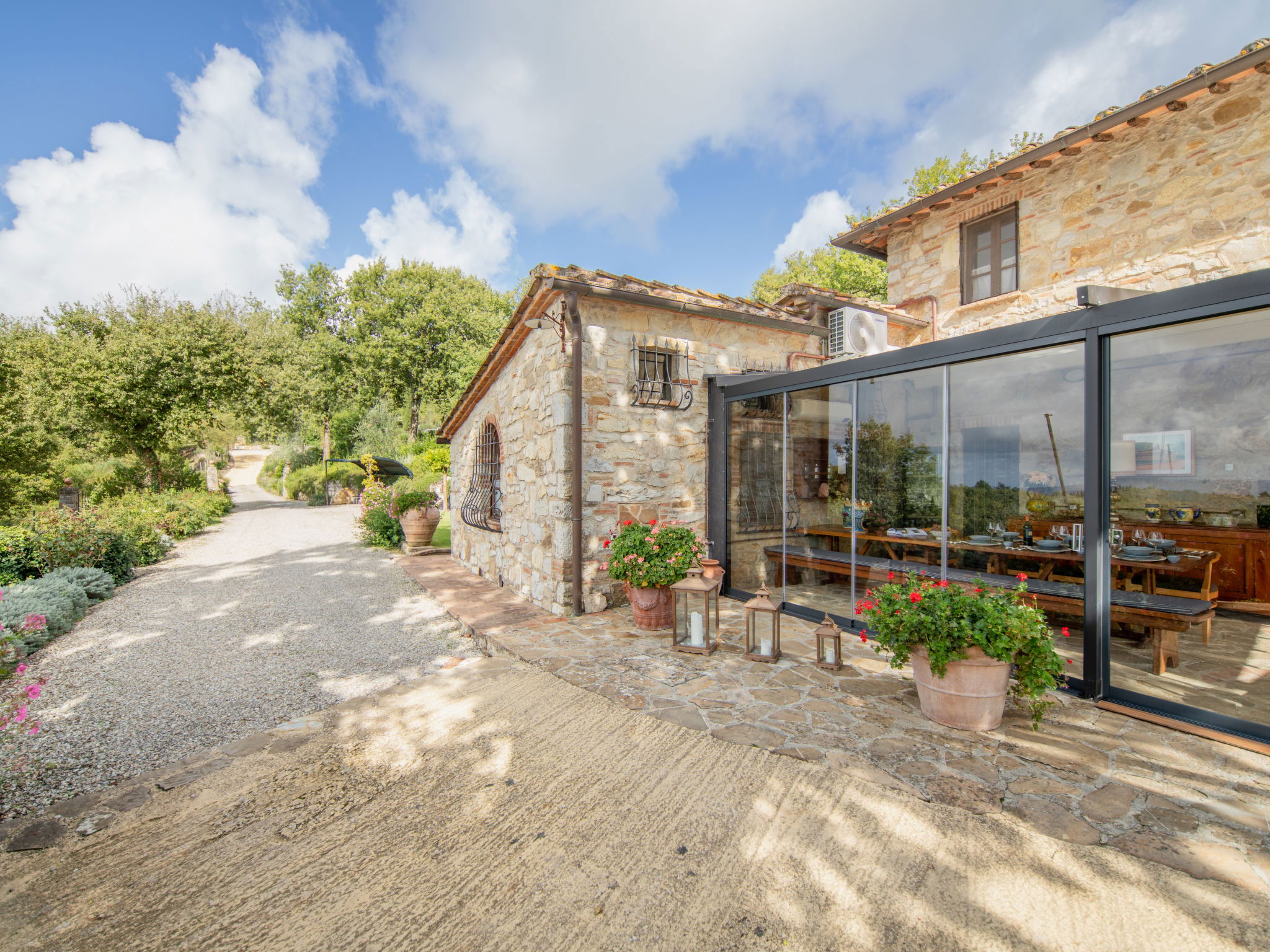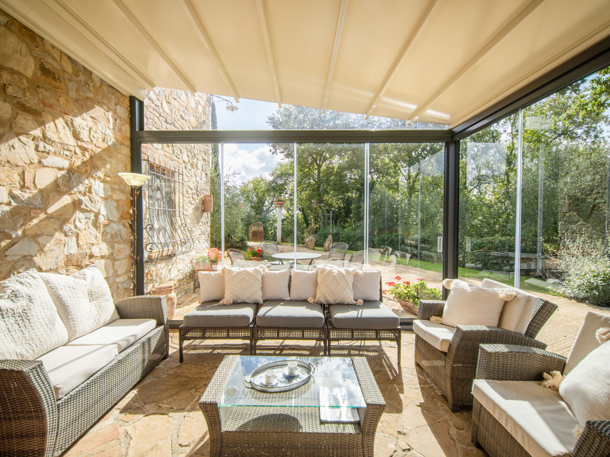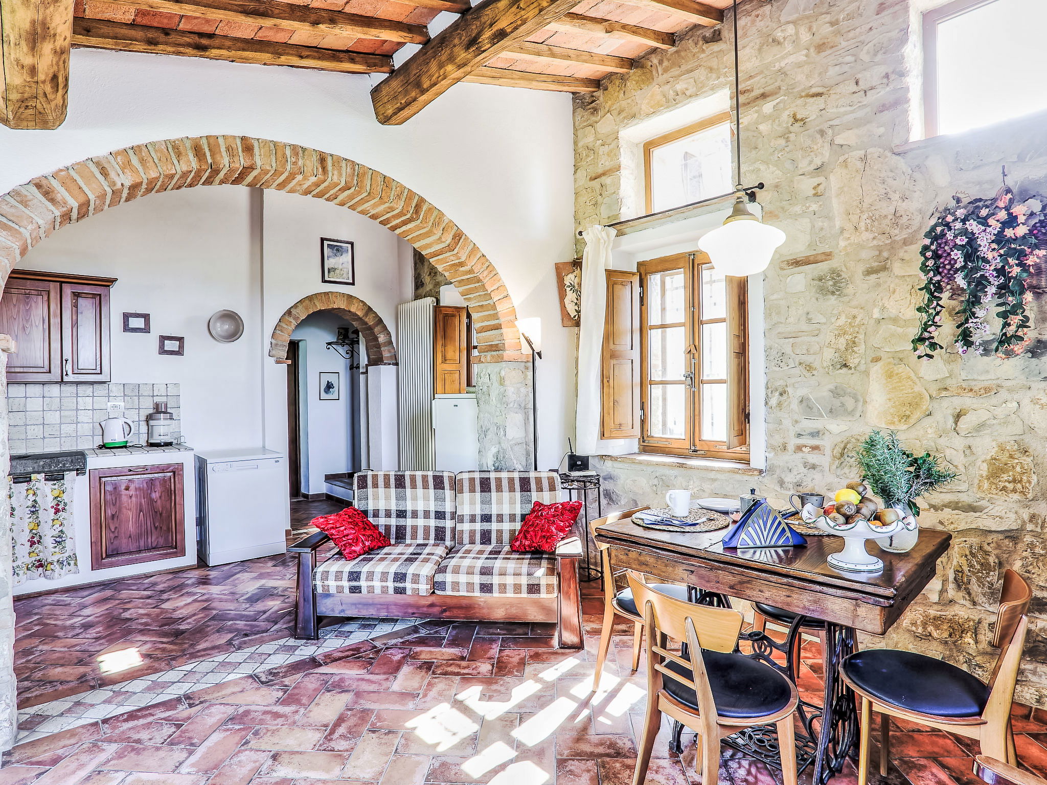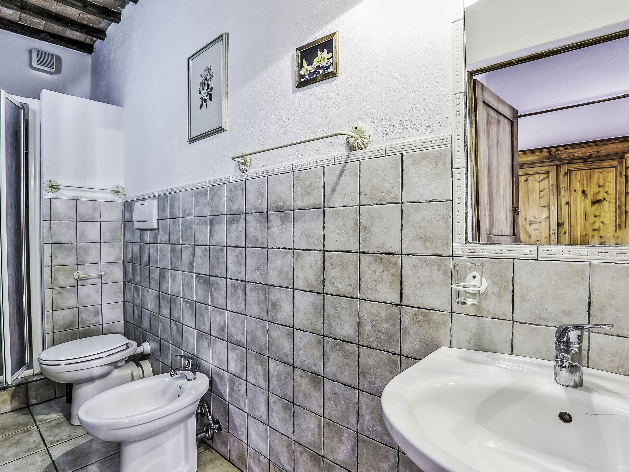 Casale il Poggino, located in a hilly position in the heart of the Chianti Classico, consists of two units, the farmhouse which is divided into three apartments (for 12 people) communicating with each other from the outside and the annex (for 04 people). Country house "Casale Il Poggino", 400 m a.s.l.. 2 houses in the residence. 5.8 km from the centre of Castellina in Chianti, 26 km from the centre of Siena, 42 km from the centre of Firenze, in a secluded, quiet, sunny position on top of a hill, in the countryside. Private: garden 1 ha (fenced), swimming pool fenced (12 x 6 m, depth 120 - 240 cm, seasonal availability: 01.Apr. - 31.Oct.). Outdoor shower, table tennis, pergola, garden furniture, barbecue. In the complex: fitness room, storage room for bicycles, heating to be paid on the spot, heating available only from 01.Nov. - 07.Apr., bicycle rental. Available: bicycles (4). Cook on request (extra). Motor access to the house (1.5 km via unmade road). Roofed, parking on the premises. Grocery 5.8 km, supermarket 5.8 km, restaurant 5.8 km, bus stop 3.5 km, thermal baths "Rapolano Terme" 50 km. Nearby attractions: San Donato in Poggio 16 km, Radda in Chianti 16 km, Monteriggioni 18 km, Gaiole in Chianti 19 km, Greve in Chianti 25 km, San Gimignano 47 km. Residence with electric gates. Video surveillance in the outdoor area.
