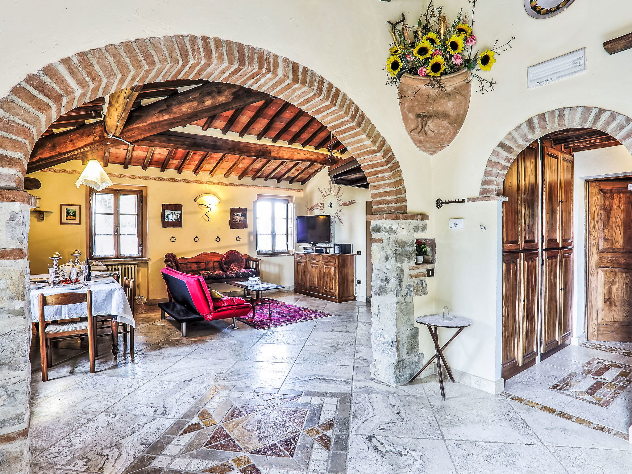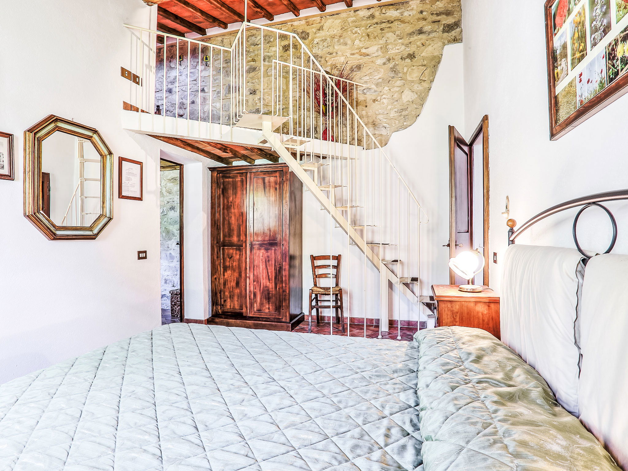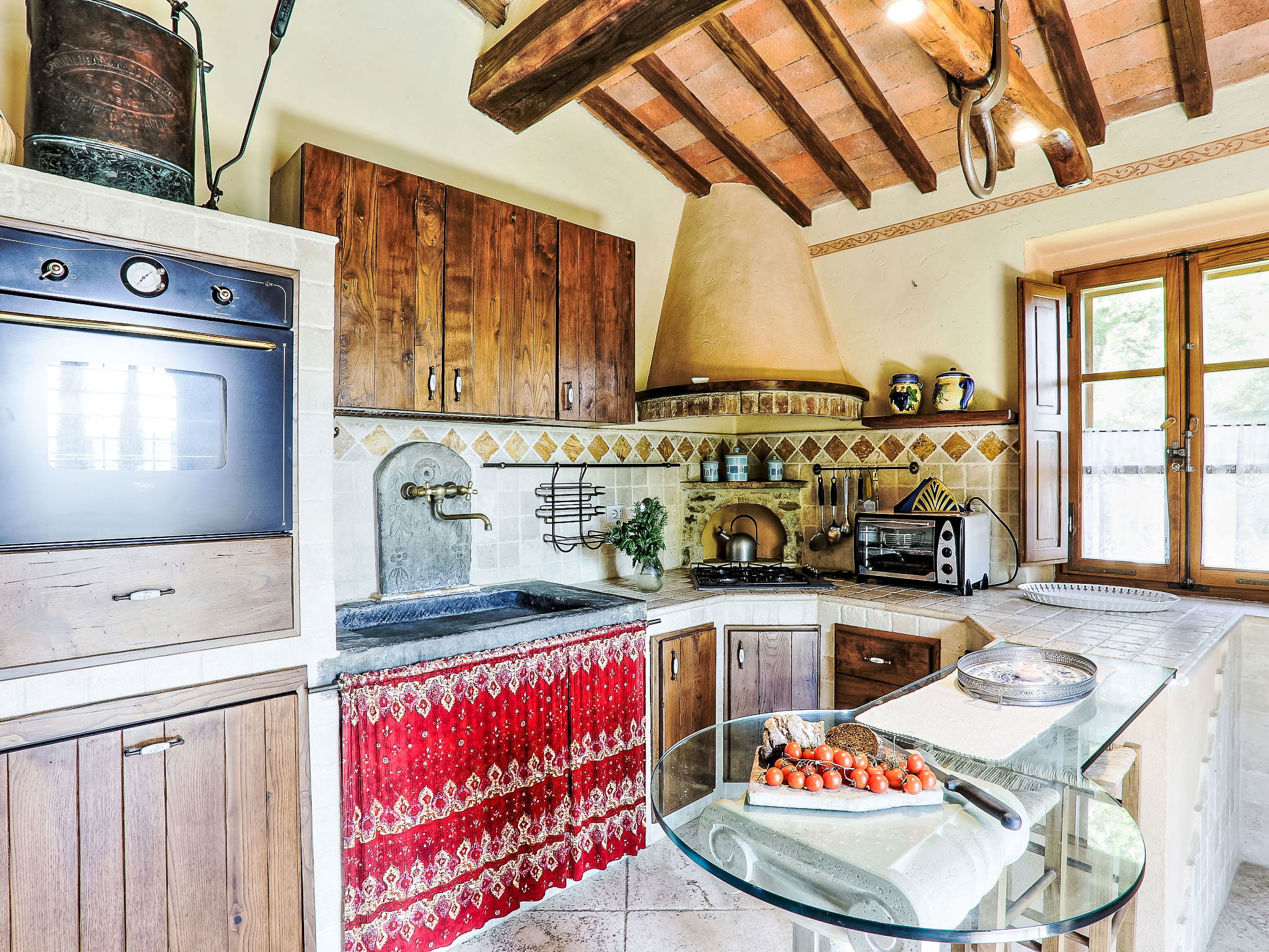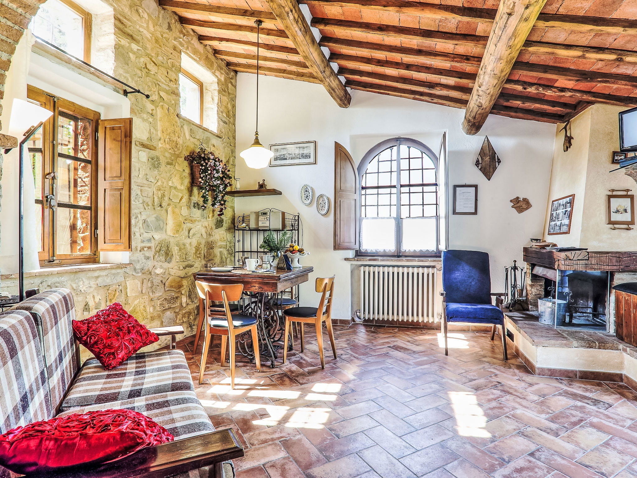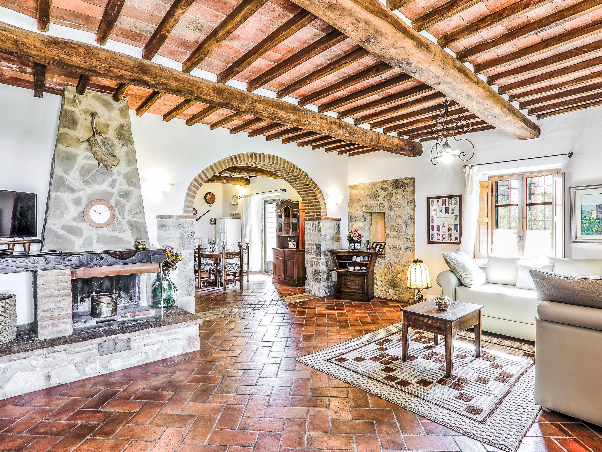 10-room house 314 m2 on 2 levels. Comfortable and cosy furnishings: open living room with open-hearth fireplace and satellite TV. 2 double bedrooms, each room with air conditioning. Living room with open-hearth fireplace and satellite TV. 1 double bedroom with air conditioning. 1 small room with 1 bed and air conditioning. Open gallery with sloping ceilings with 1 bed and air conditioning. Living room with satellite TV. 1 double bedroom with air conditioning. Open kitchen (4 hot plates, oven, dishwasher, freezer). 4 showers/bidet/WC. Upper floor: open living/sleeping room with 1 double bed, open-hearth fireplace and satellite TV. 2 double bedrooms, each room with air conditioning. Open kitchen (4 hot plates, oven, dishwasher, freezer). 2 showers/bidet/WC. Gas heating, air-conditioning (extra). Terrace furniture, barbecue. Very beautiful view of the countryside. Facilities: washing machine, children's high chair, baby cot. Internet (WiFi, free). Maximum 1 pet/ dog allowed. IT052005B4YP63KC2M
