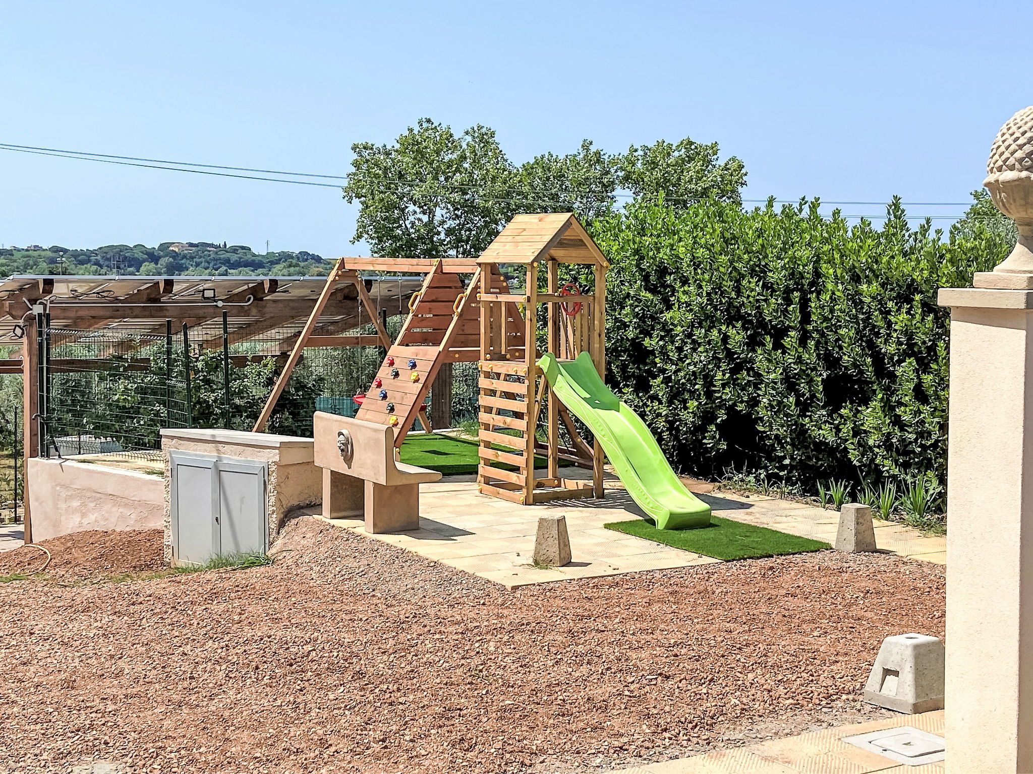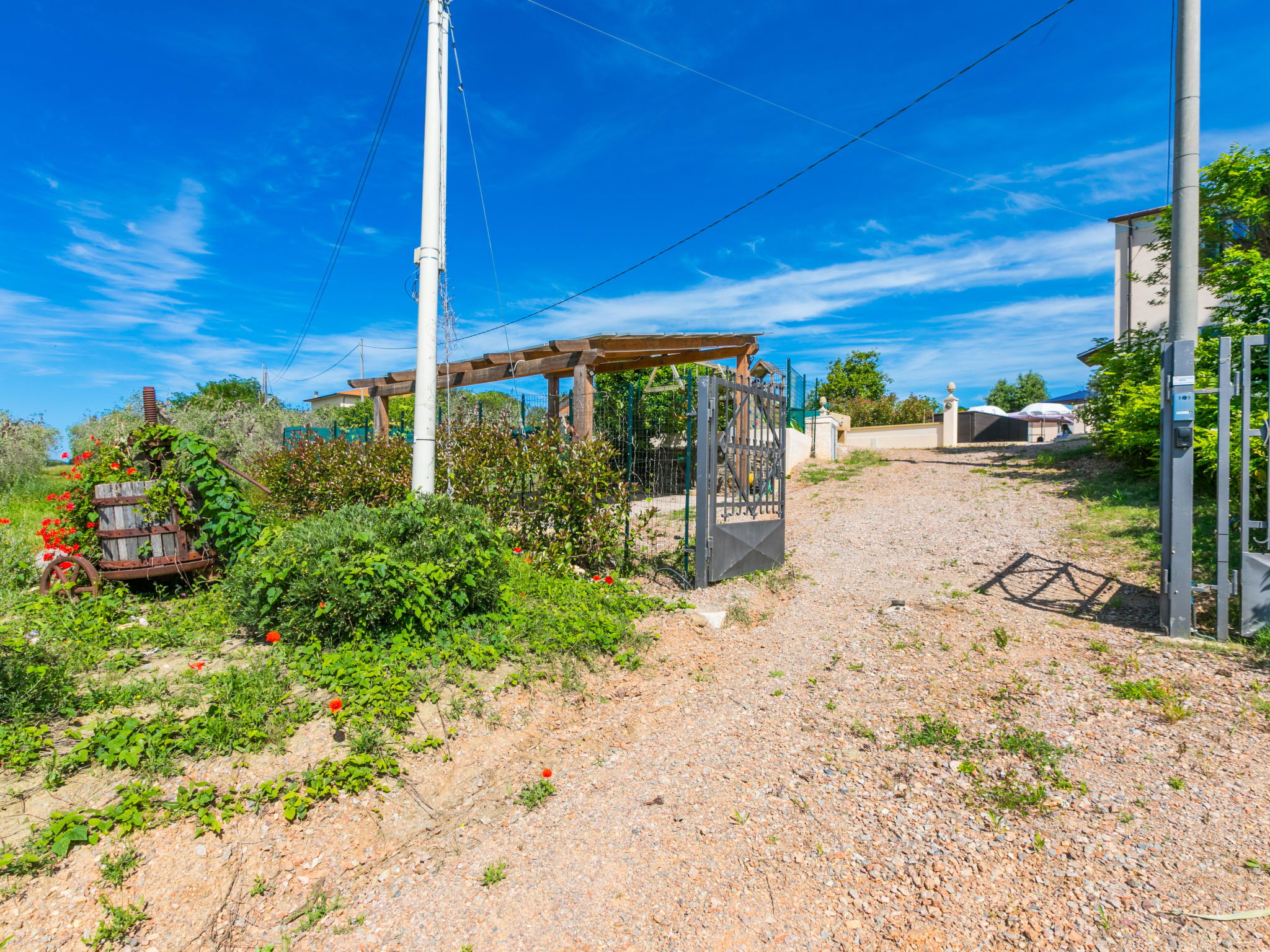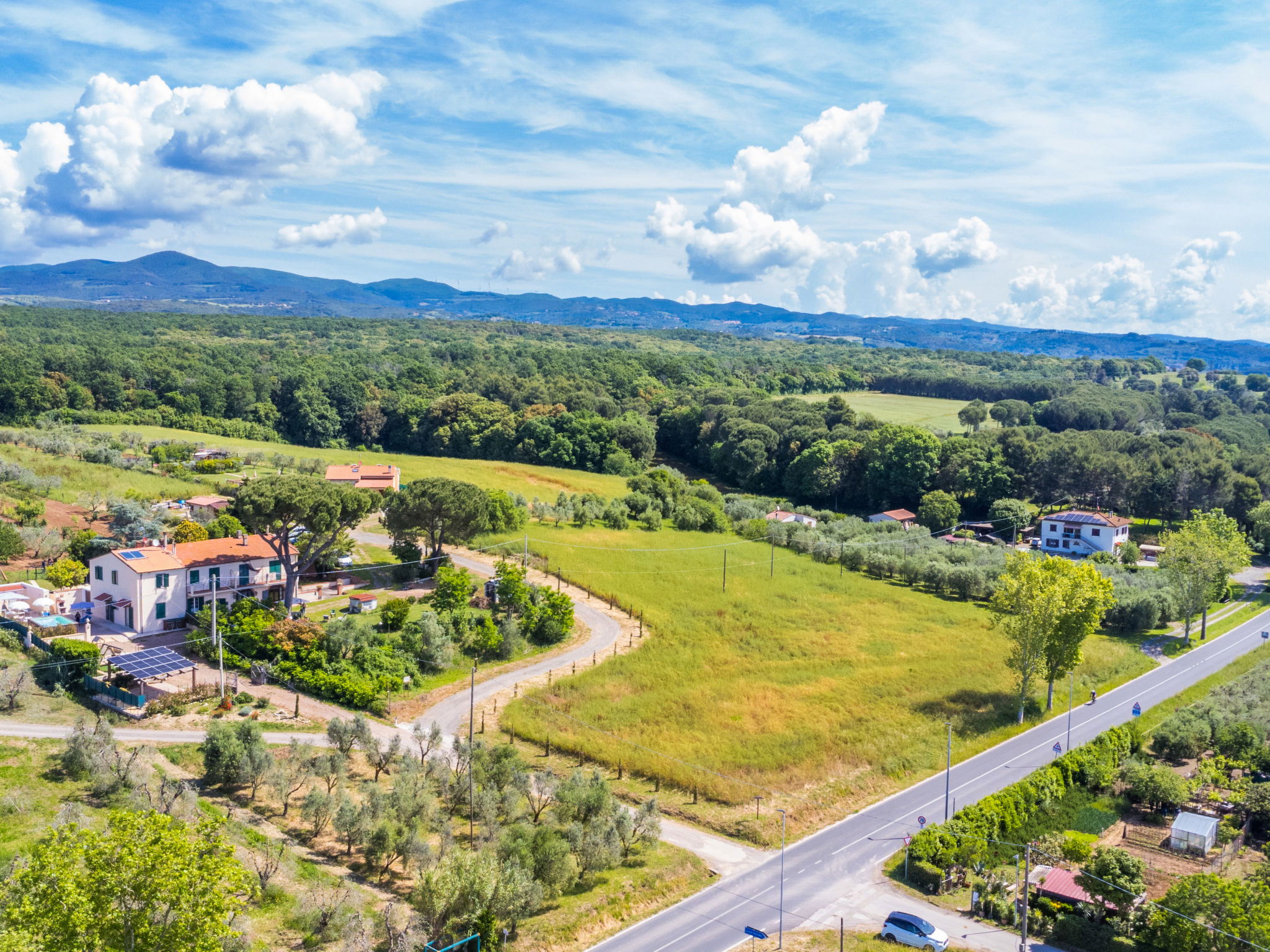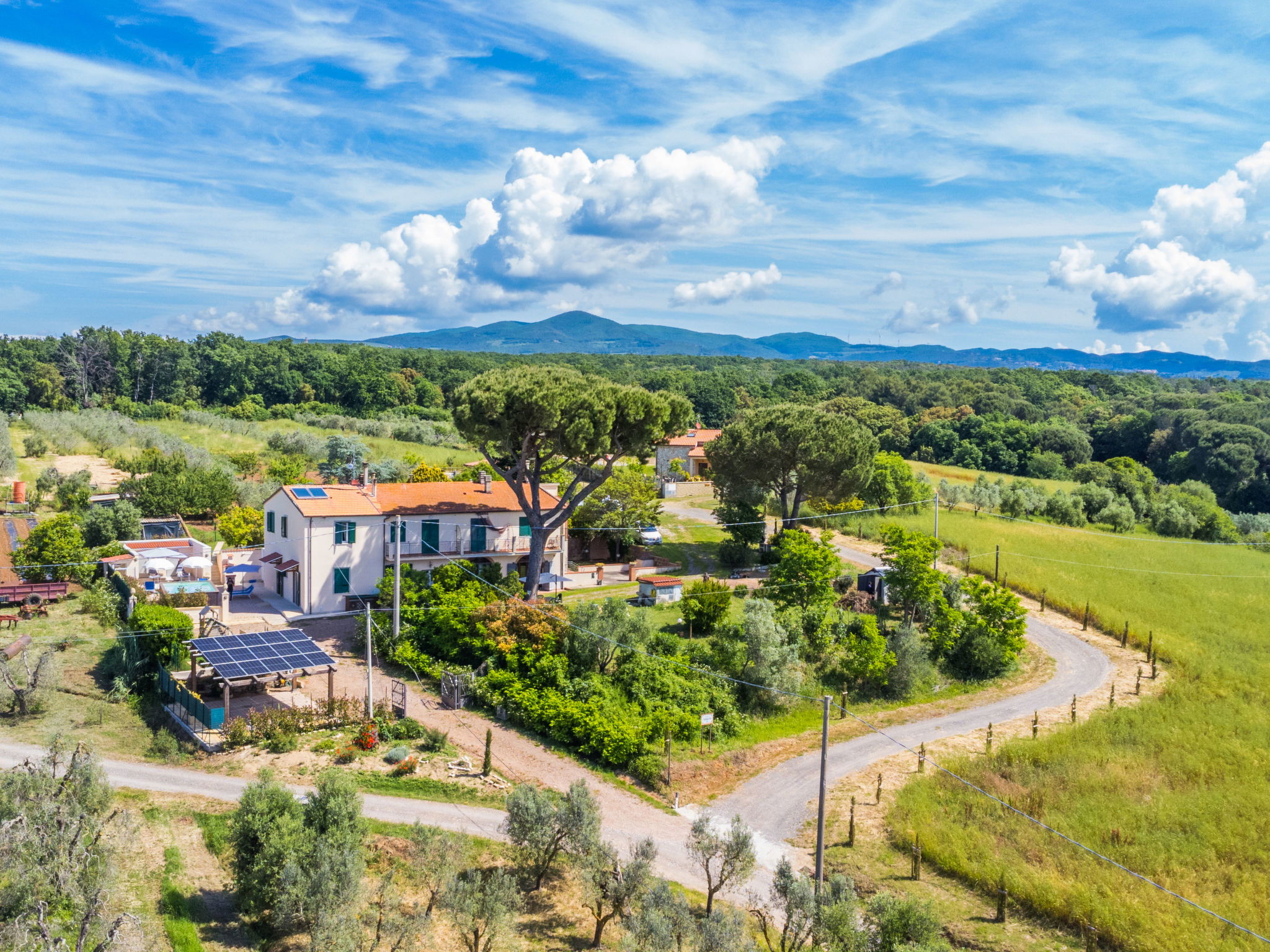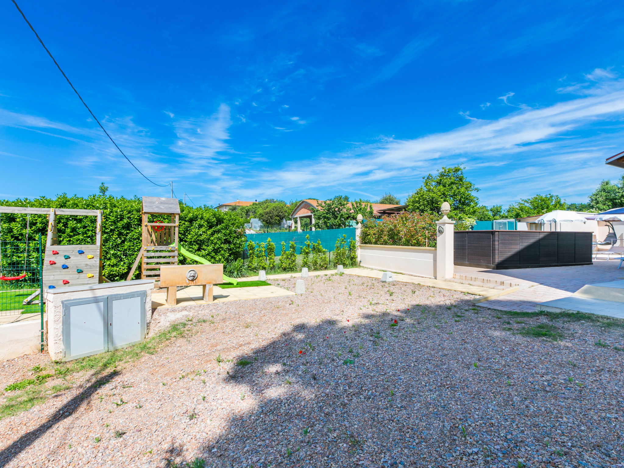 Comfortable house "Da Lisa", 2 storeys, semi-detached, renovated in 2024, surrounded by meadows and fields. 3 km from the centre of San Pietro in Palazzi, 5 km from the centre of Cecina, in an elevated position, 5 km from the sea, 5 km from the beach. Private: property 700 m2 (fenced), swimming pool (above ground) (3 x 5 m, depth 120 - 120 cm, seasonal availability: 12.Apr. - 13.Oct.). Shower/WC in the pool area, terrace (100 m2), garden furniture, barbecue, children's playground. Linen change (suppl. charge extra). Towel change (suppl. charge extra). Storeroom available. Roofed, parking (for 2 cars). E-charging station. Shop 1 km, supermarket 1 km, restaurant 1 km, bakery 1 km, bus stop "Sp 68 - Bivio Loc. Giardino" 90 m, railway station "Cecina" 5 km, thermal baths "Calidario" 35 km. Marina 6 km. Nearby attractions: Pisa 50 km, Lucca 70 km, Firenze 112 km.