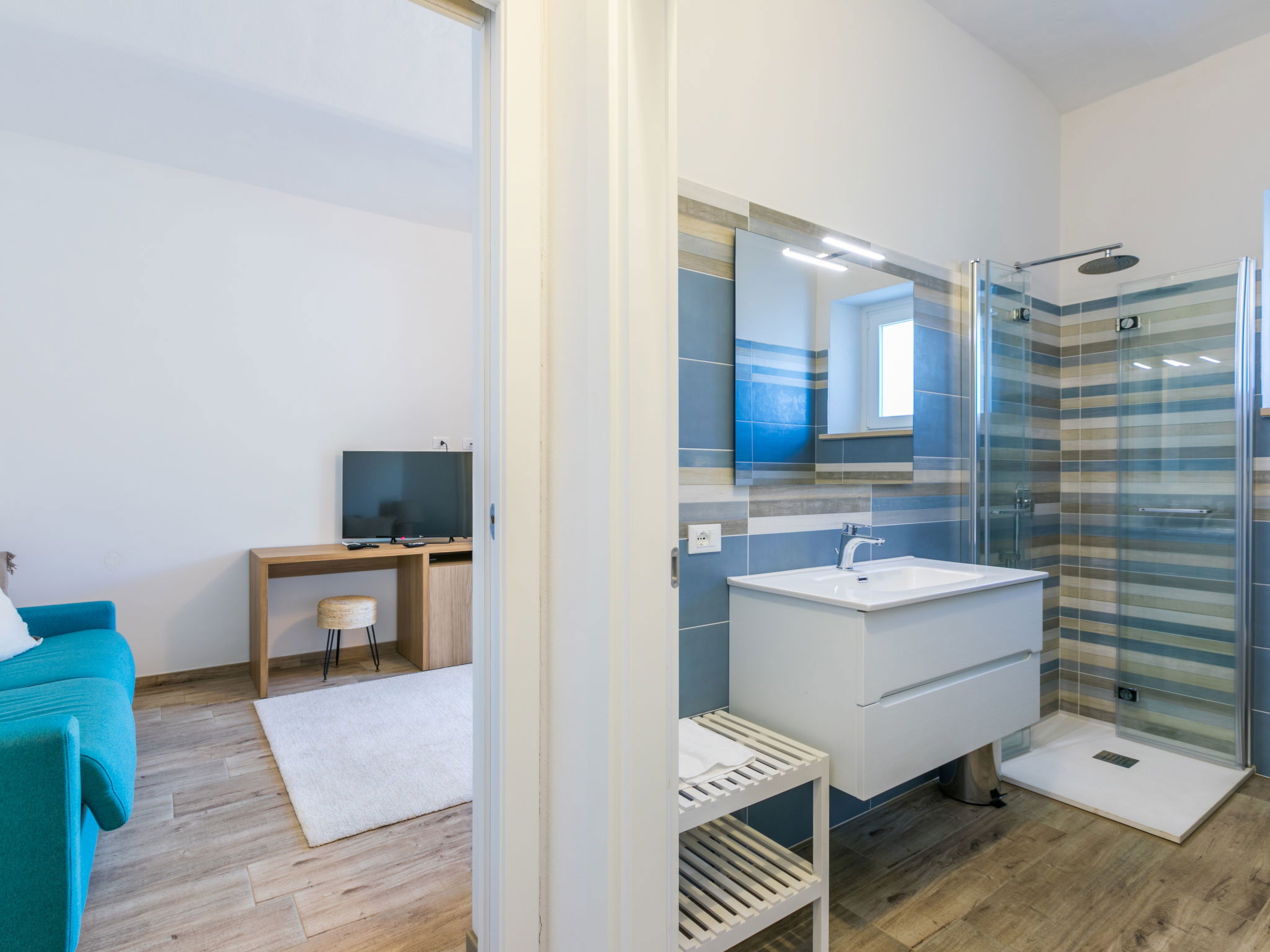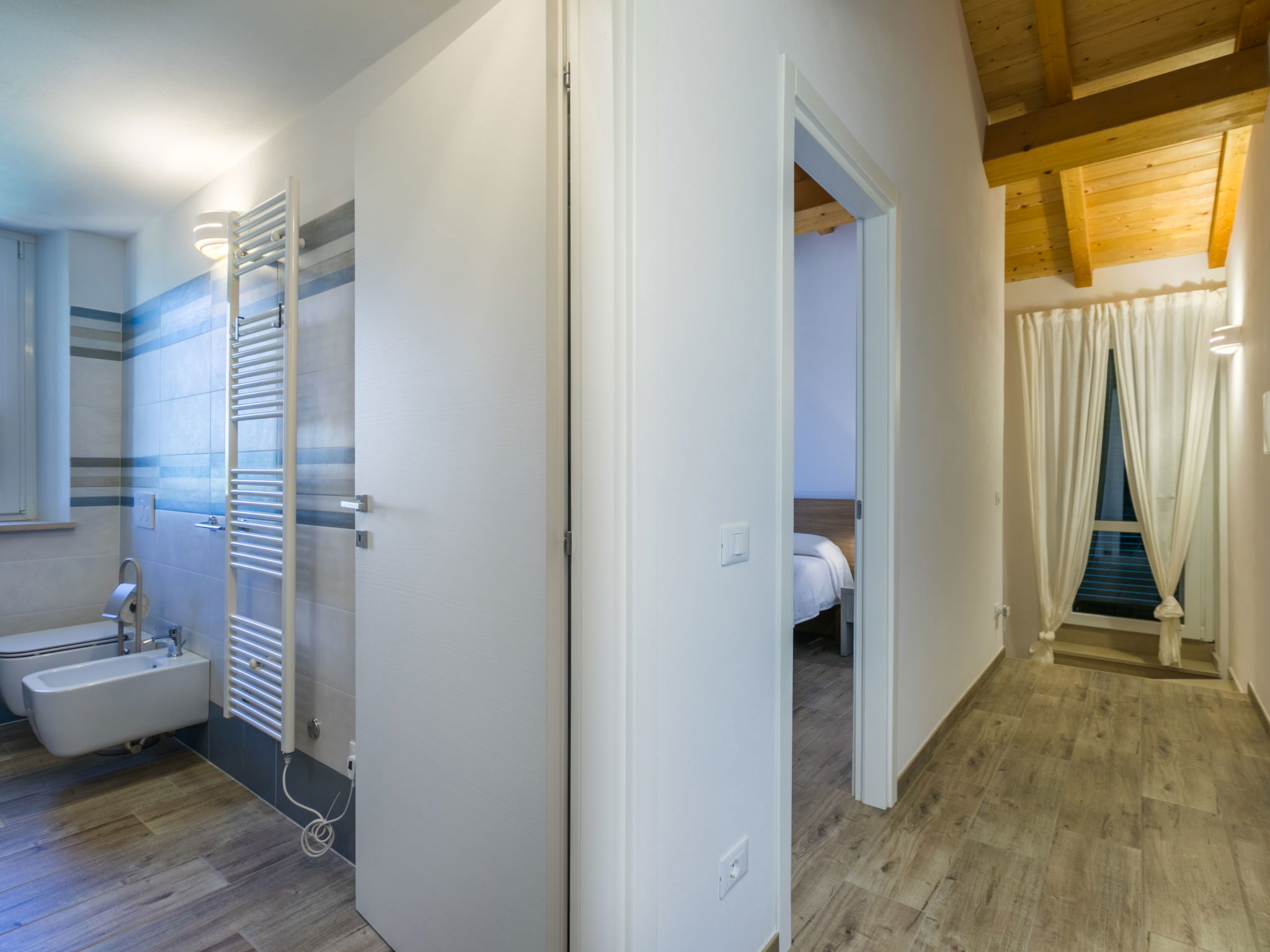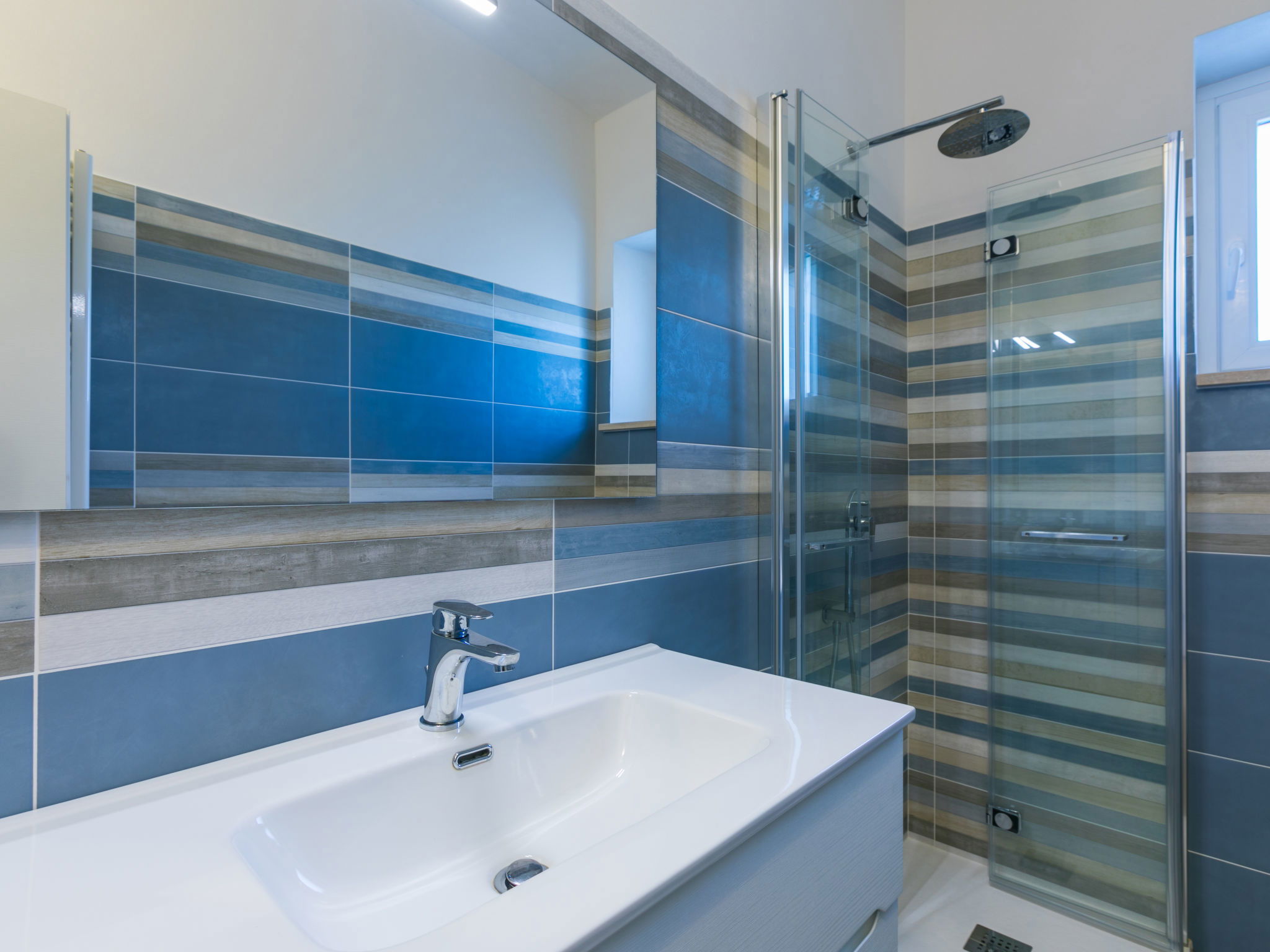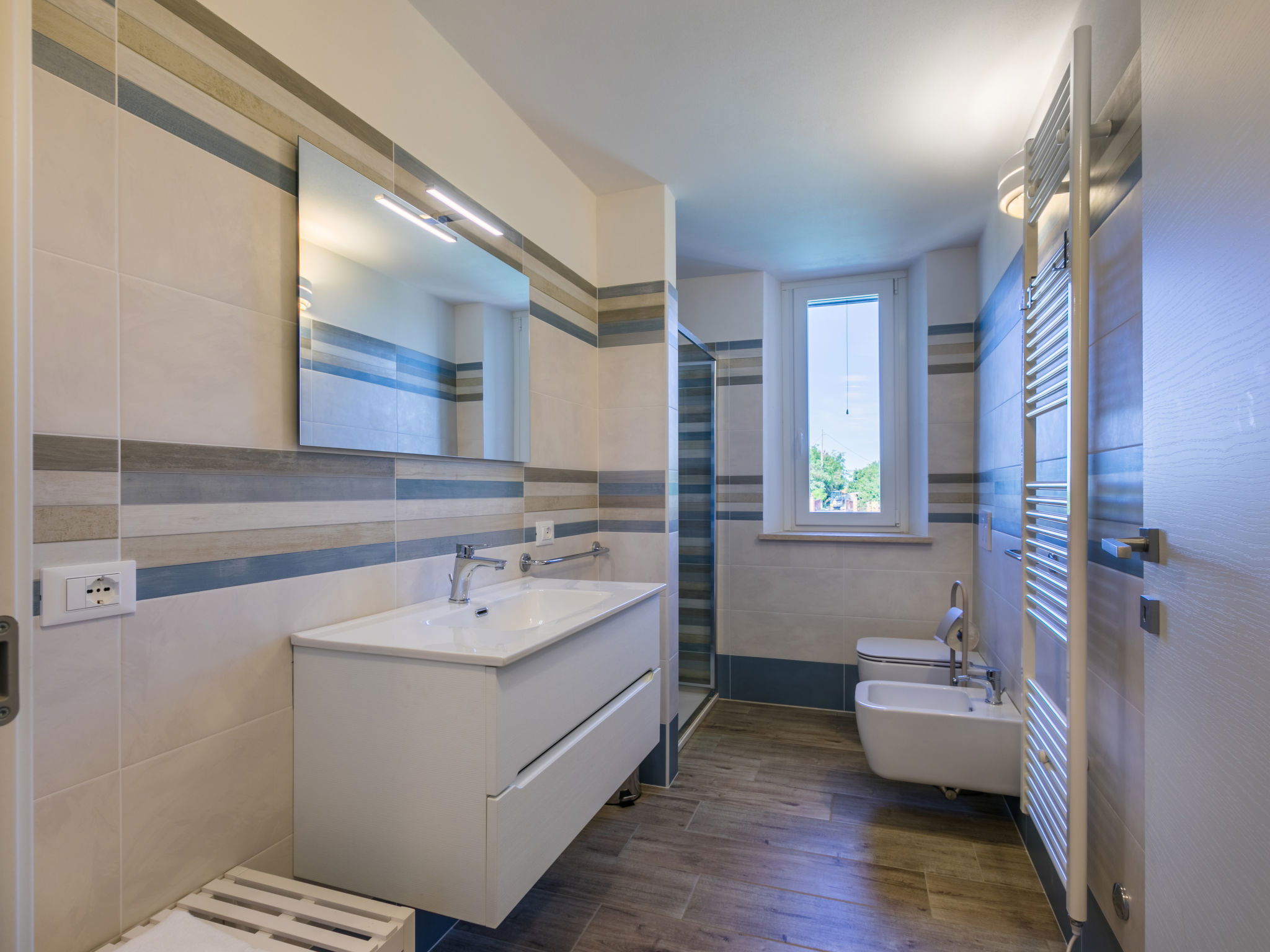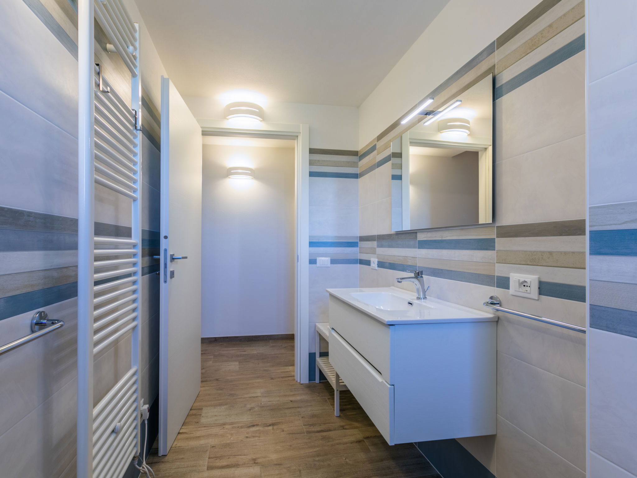 4-room house 110 m2 on 2 levels. Fully renovated in 2024, beautiful and modern furnishings: living/dining room with dining table. Exit to the terrace. 1 room with 1 double sofabed and TV. Exit to the garden. Open kitchen (oven, dishwasher, 4 induction hot plates, toaster, kettle, electric coffee machine). Exit to the terrace. Shower/bidet/WC. Electric heating, air-conditioning. Upper floor: 1 double bedroom with 1 double bed and TV. 1 double bedroom with 2 beds. (ladder) gallery. Shower/bidet/WC. Electric heating, air-conditioning. Large terrace 35 m2 partly roofed. Barbecue, deck chairs (6). Facilities: washing machine, iron, mosquito net, children's high chair, baby cot for up to 2 year olds, hair dryer. Internet (WiFi, free). Parking (roofed, fenced 2 cars). E-charging station. Please note: non-smokers only. Maximum 2 pets/ dogs allowed. Private entrance, fire extinguisher. complete outdoor kitchen (2 plates, microwave, dishwasher, washing machine, fridge). IT050030C2VXQG94XA