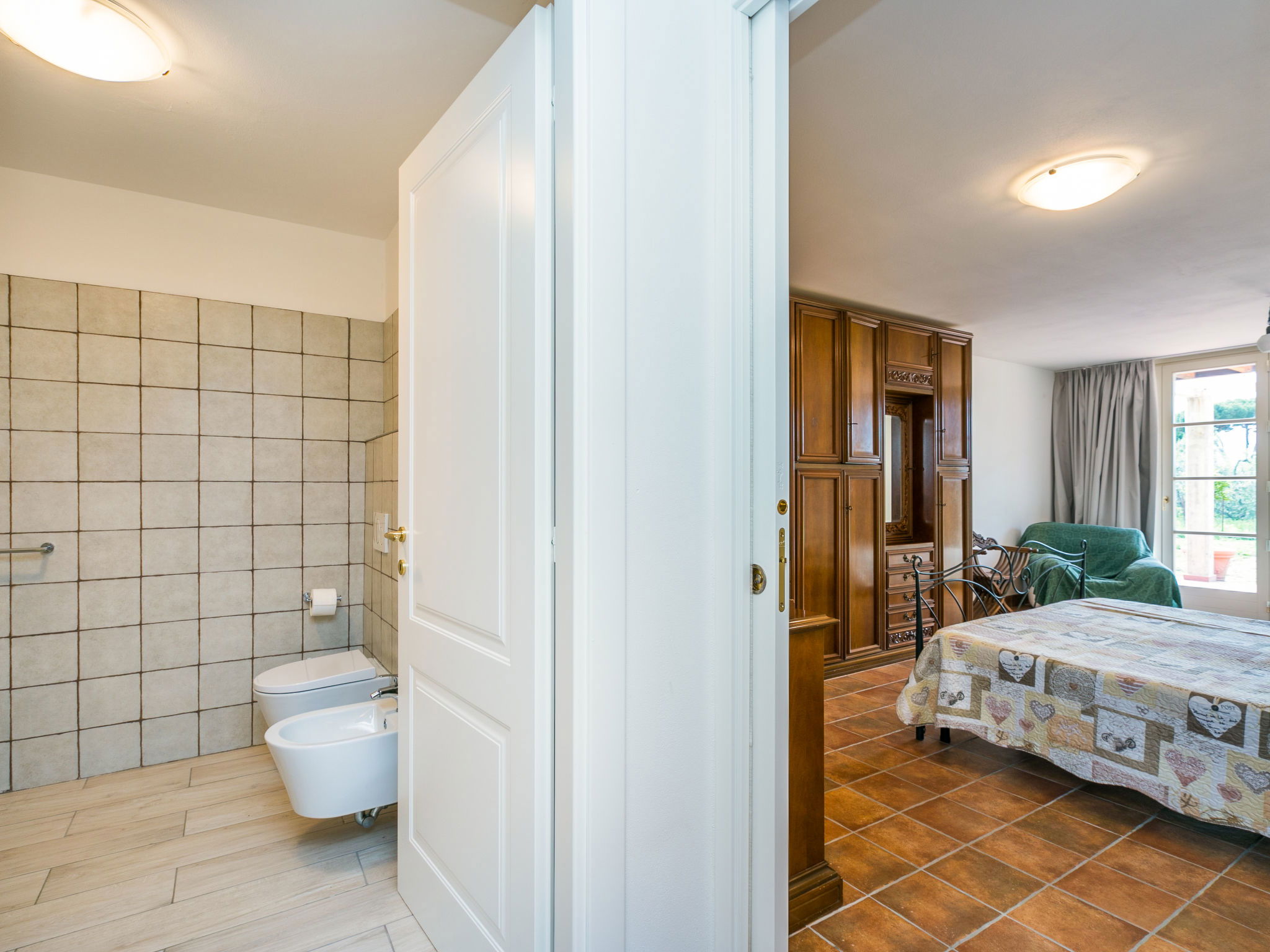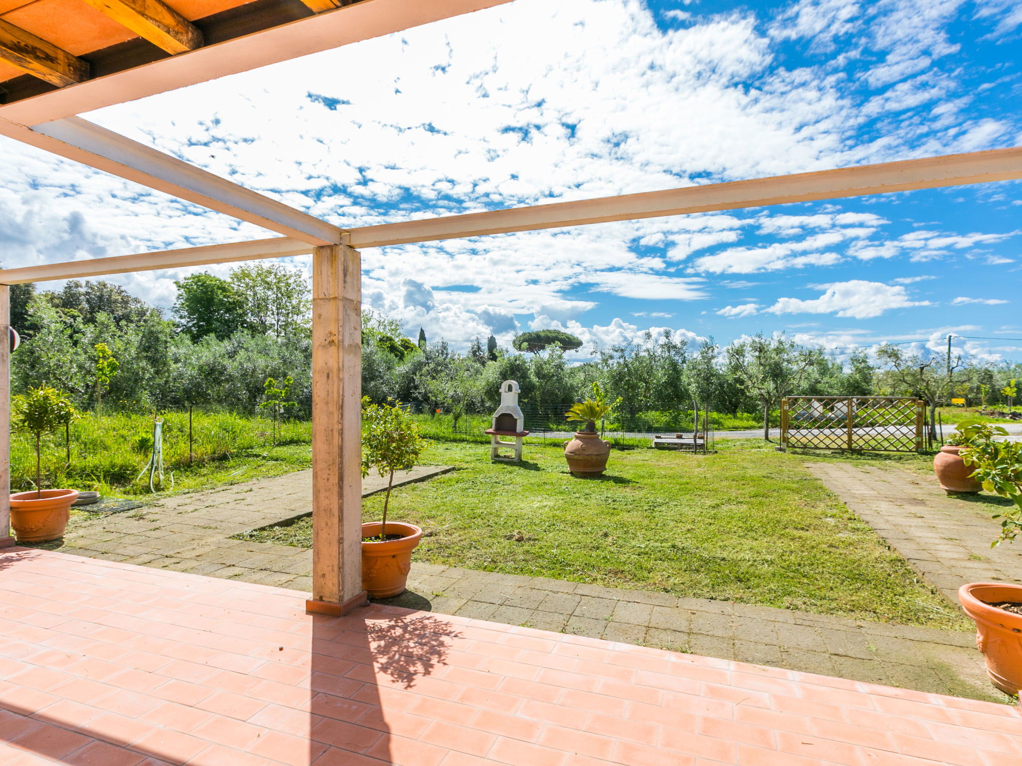 House "Uliveto", semi-detached, renovated in 2026. 3 apartments in the residence. 5 km from the centre of Cecina, 7 km from the centre of Bibbona, 5 km from the sea, 5 km from the beach. Private: property (fenced), swimming pool (8 x 4 m, depth 140 - 140 cm, seasonal availability: 15.May. - 15.Oct.). Linen change (suppl. charge extra). Towel change (suppl. charge extra). Roofed, parking. Supermarket 4 km, shopping centre 4 km, restaurant 3.5 km, bus stop 850 m, sandy beach "Marina di Cecina" 5 km, thermal baths "Calidario" 34 km. Marina 8 km, golf course (9 hole) 6 km. Nearby attractions: Bolgheri 11 km, Livorno 45 km, Pisa 65 km. Residence with electric gates.