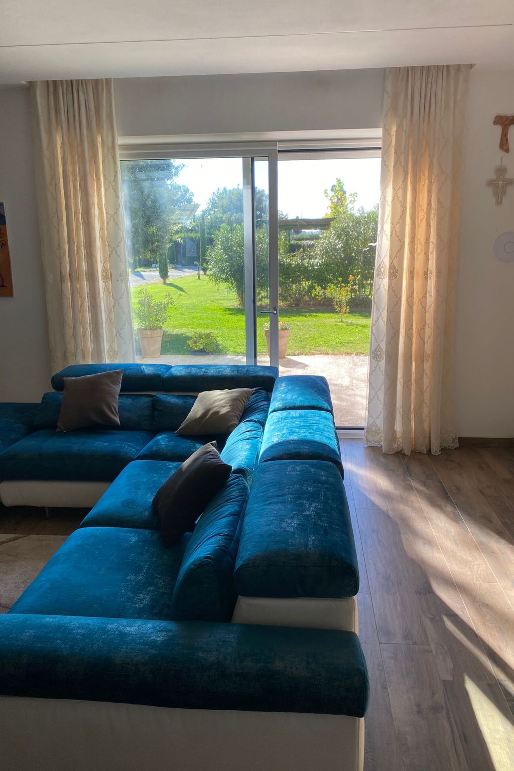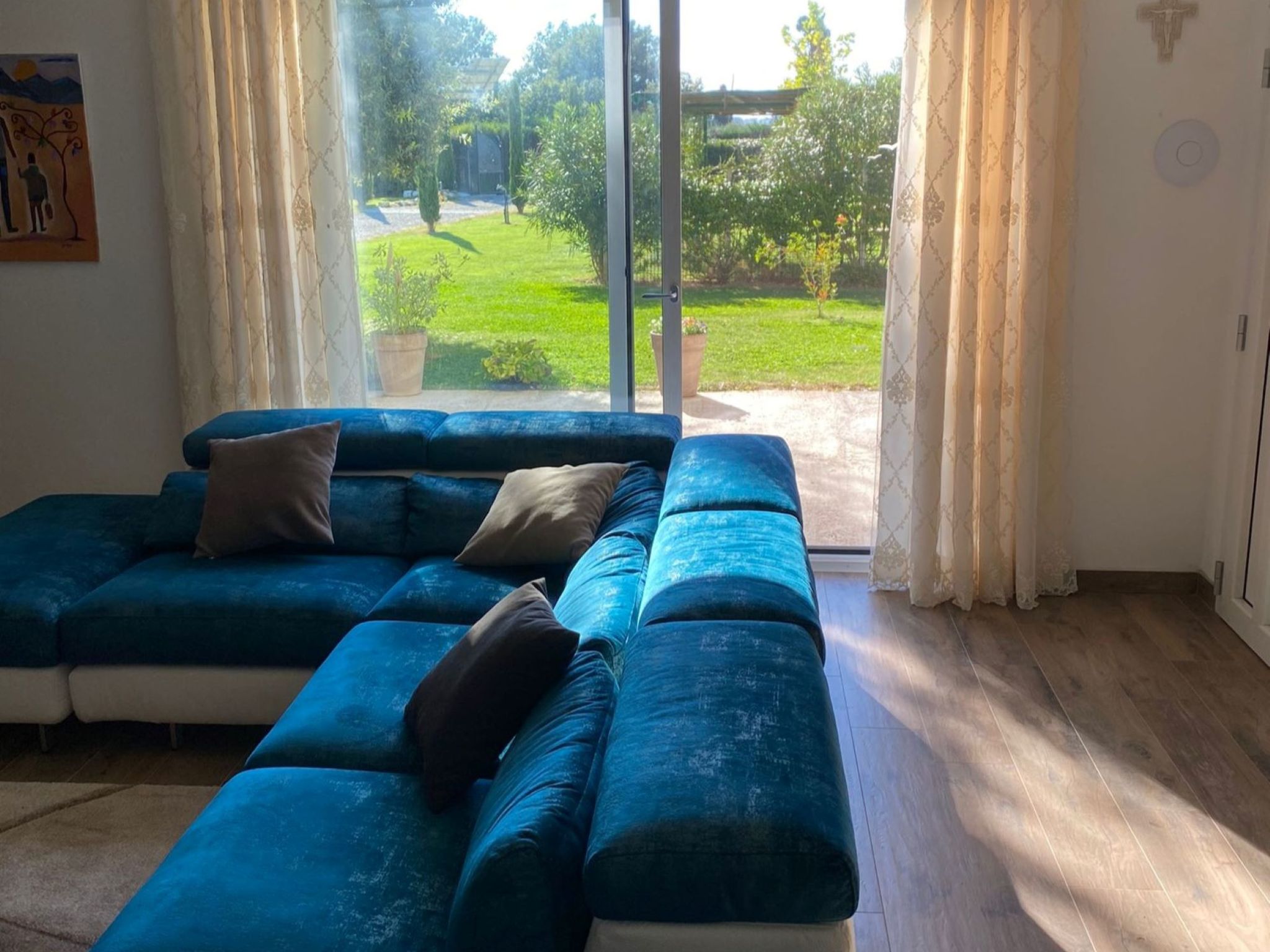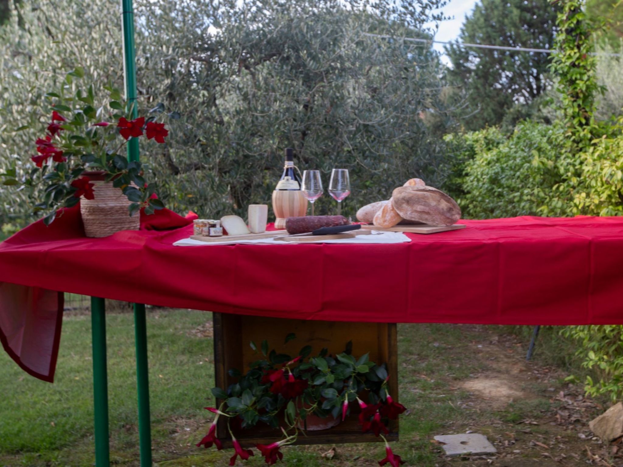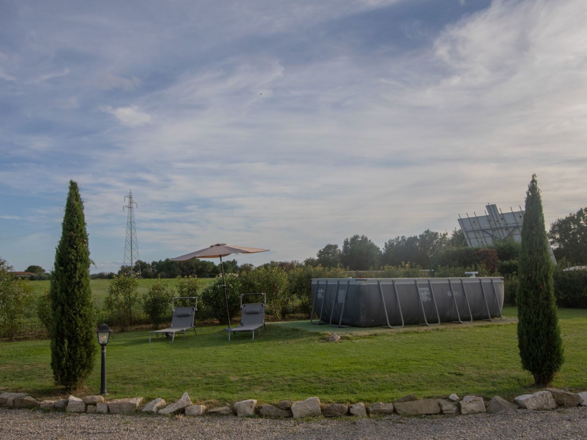 Modern, cosy house "Il Tiglioré", semi-detached, renovated, surrounded by fields. 5 km from the centre of Castiglion Fiorentino. Private: well-kept garden (fenced) with wildlife garden and trees, swimming pool (above ground) (6 x 3 m, depth 132 cm, seasonal availability: 01.Jun. - 31.Aug.). Arbour, garden furniture, barbecue, parking on the premises. Supermarket 3.3 km, restaurant 3 km, bus stop 600 m. Nearby attractions: Cortona 16 km, Arezzo 19 km, Montepulciano 33 km, Firenze 99 km. Well-known lakes can easily be reached: Lago Trasimeno 40 km. Please note: car recommended. The owner lives in the same residence.