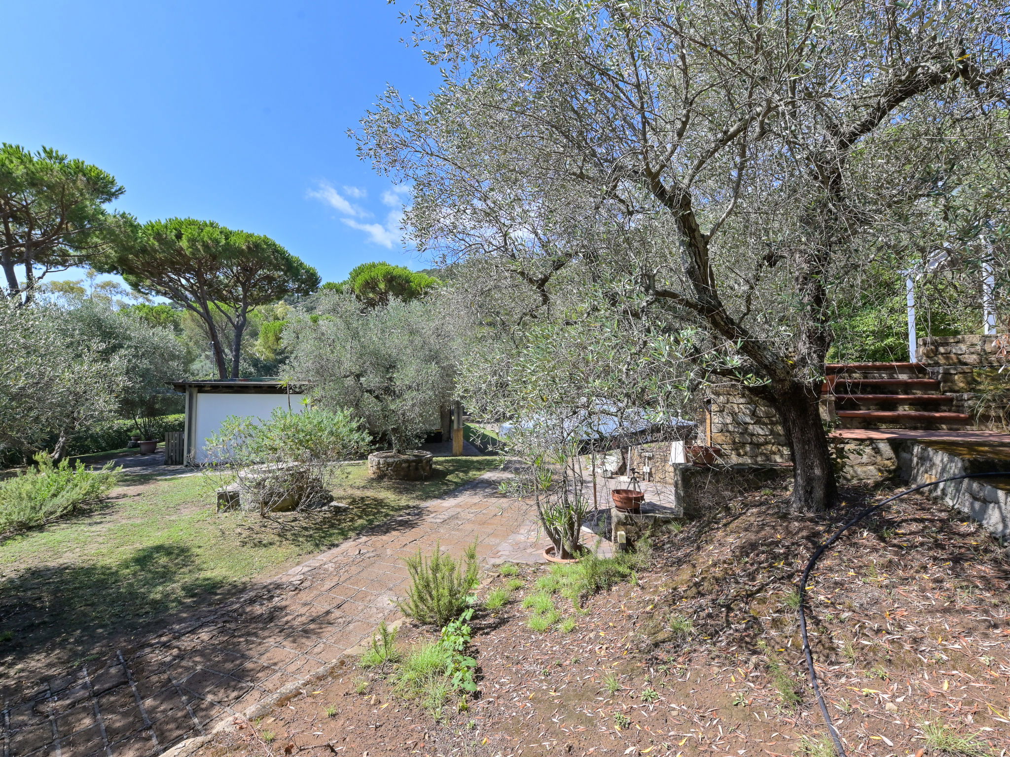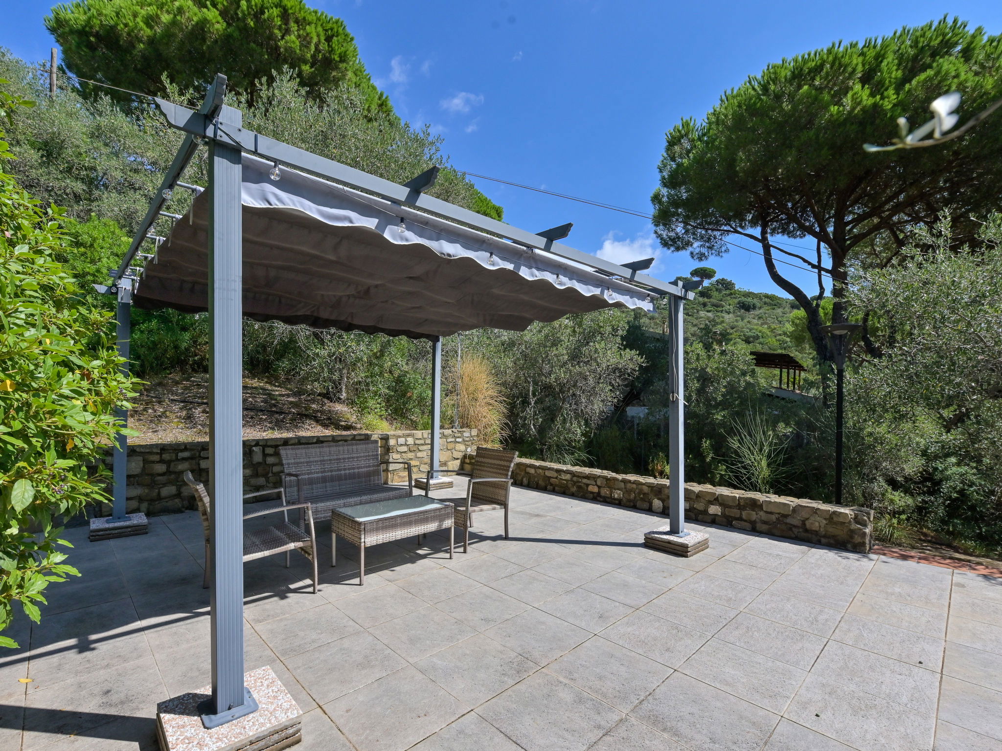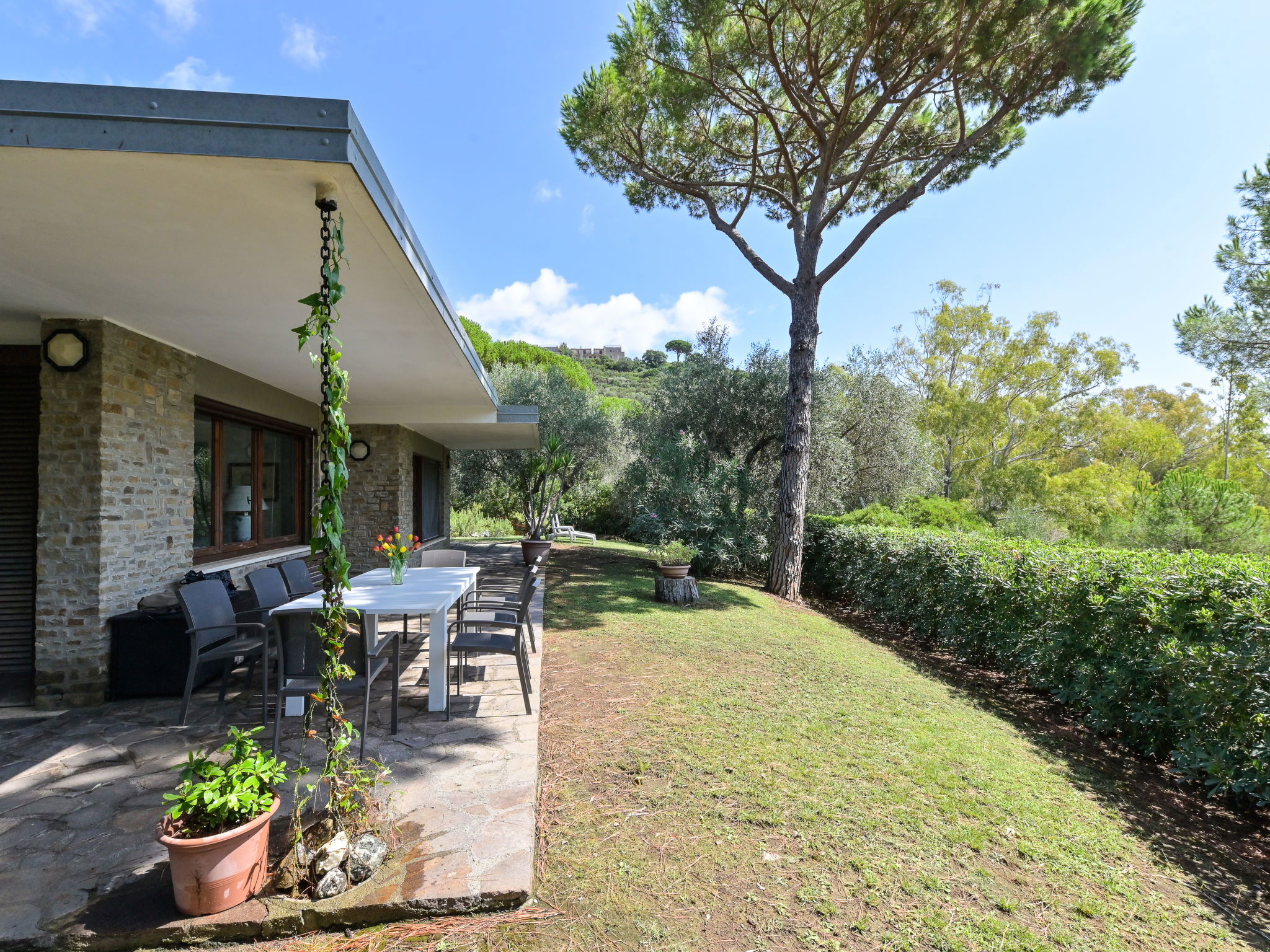 Modern, cosy house "Villa Anna", surrounded by trees and meadows. Property composed of main house and outbuilding 2.5 km from the centre of Castiglione della Pescaia, in a quiet, sunny position on top of a hill, 2.2 km from the sea, 2.2 km from the beach, in the countryside. Private: well-kept garden with lawn and wildlife garden. Arbour, terrace, garden furniture. In the house: washing machine, tumble dryer. Parking on the premises. Shop, supermarket 950 m, shopping centre 24 km, restaurant 2 km, bar 1.5 km, café 2 km, pedestrian zone 1.3 km, 20 minute walk to the centre, bus stop "Castiglione zona 167" 1.2 km, railway station "Grosseto" 23 km, sandy beach "Castiglione della Pescaia" 2.2 km, thermal baths "Calidario / Sassetta" 50 km. Golf course (18 hole) 36 km, tennis 2.7 km. Nearby attractions: Cala Violina 17 km, Punta Ala / Follonica 22 km, Grosseto 23 km. Hiking paths: Diaccia Botrona 3.2 km, Parco Naturale della Maremma 40 km. Please note: car recommended.
