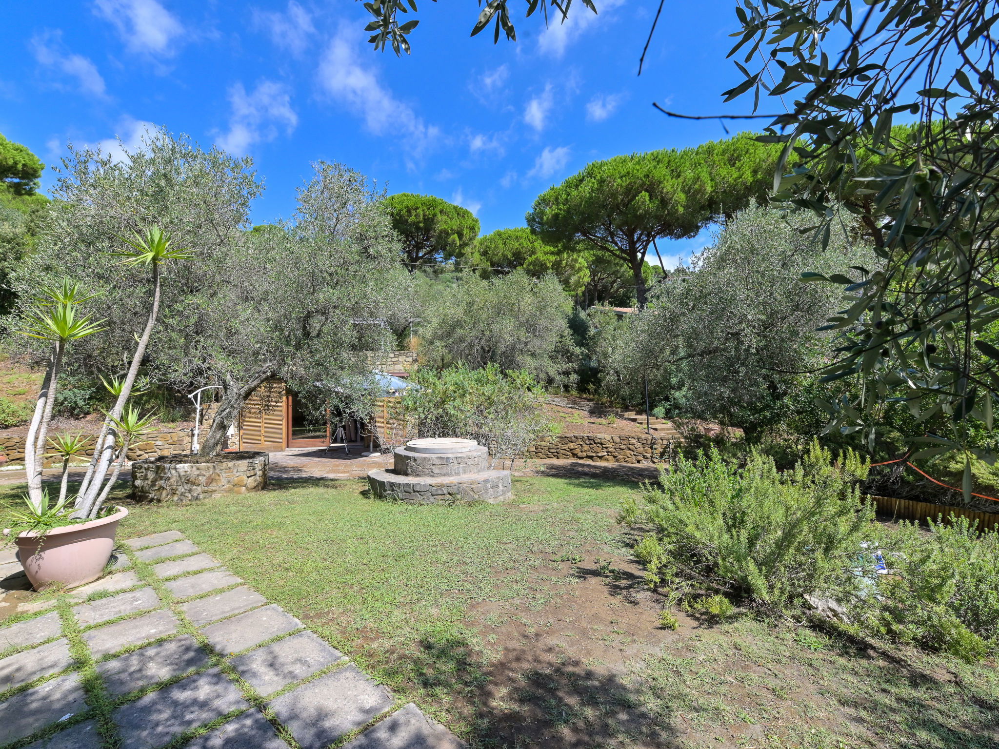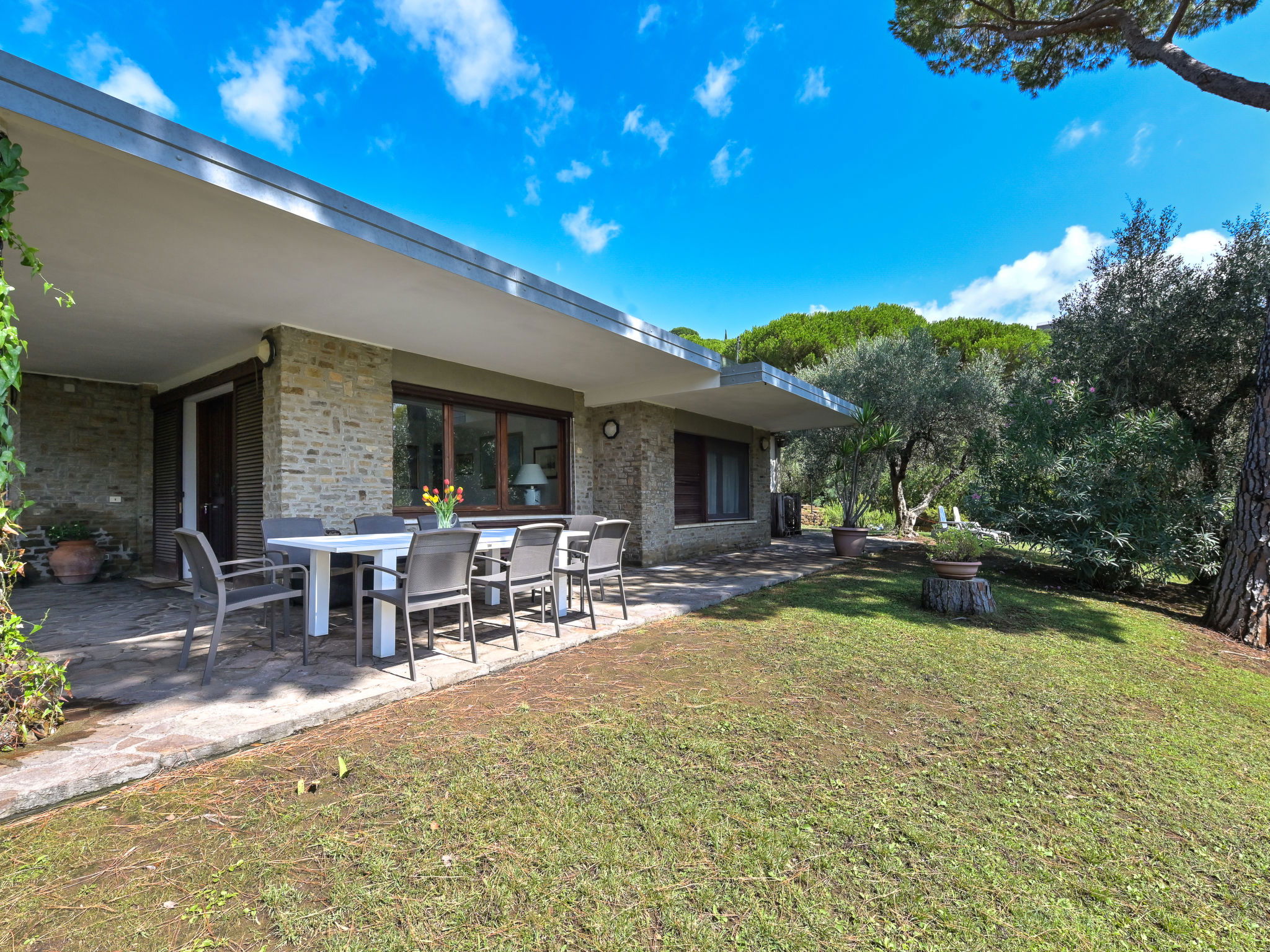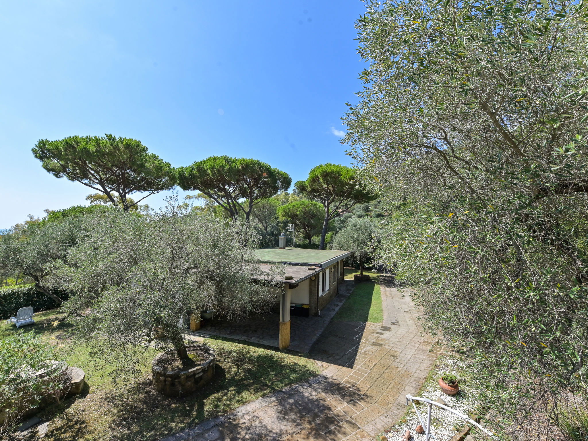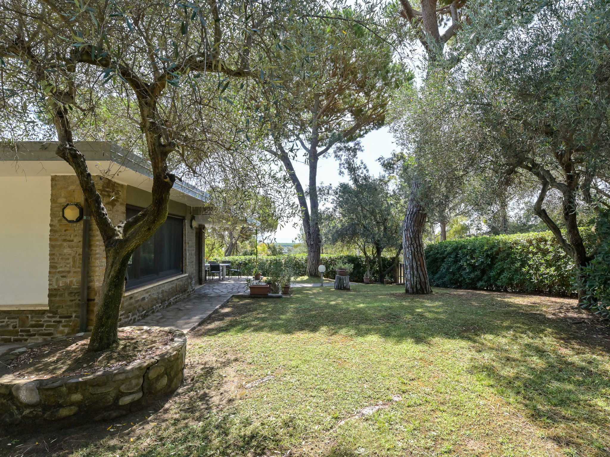 Modern, cosy house "Villa Anna", surrounded by trees and meadows. Property composed of main house and outbuilding 2.5 km from the centre of Castiglione della Pescaia, in a quiet, sunny position on top of a hill, 2.2 km from the sea, 2.2 km from the beach, in the countryside. Private: well-kept garden with lawn and wildlife garden. Arbour, terrace, garden furniture. In the house: washing machine, tumble dryer. Parking on the premises. Shop, supermarket 950 m, shopping centre 24 km, restaurant 2 km, bar 1.5 km, café 2 km, pedestrian zone 1.3 km, 20 minute walk to the centre, bus stop "Castiglione zona 167" 1.2 km, railway station "Grosseto" 23 km, sandy beach "Castiglione della Pescaia" 2.2 km, thermal baths "Calidario / Sassetta" 50 km. Golf course (18 hole) 36 km, tennis 2.7 km. Nearby attractions: Cala Violina 17 km, Punta Ala / Follonica 22 km, Grosseto 23 km. Hiking paths: Diaccia Botrona 3.2 km, Parco Naturale della Maremma 40 km. Please note: car recommended.