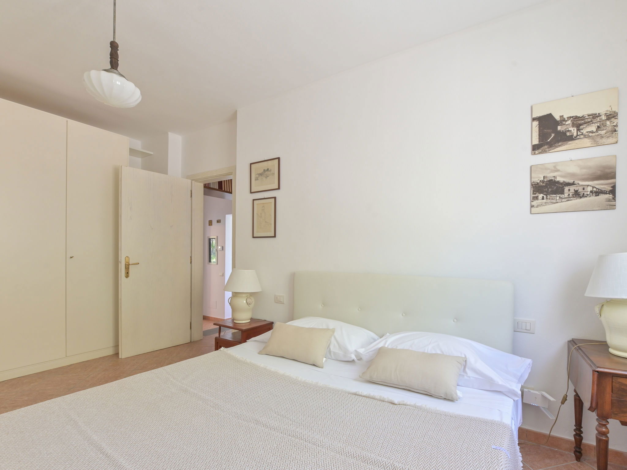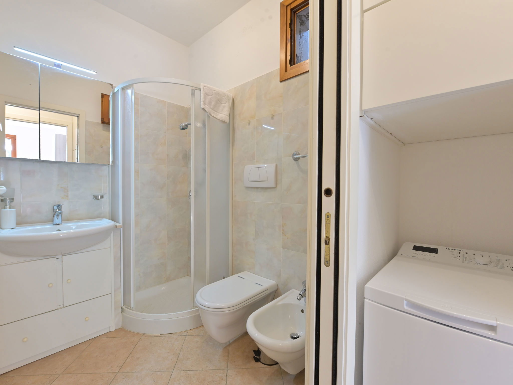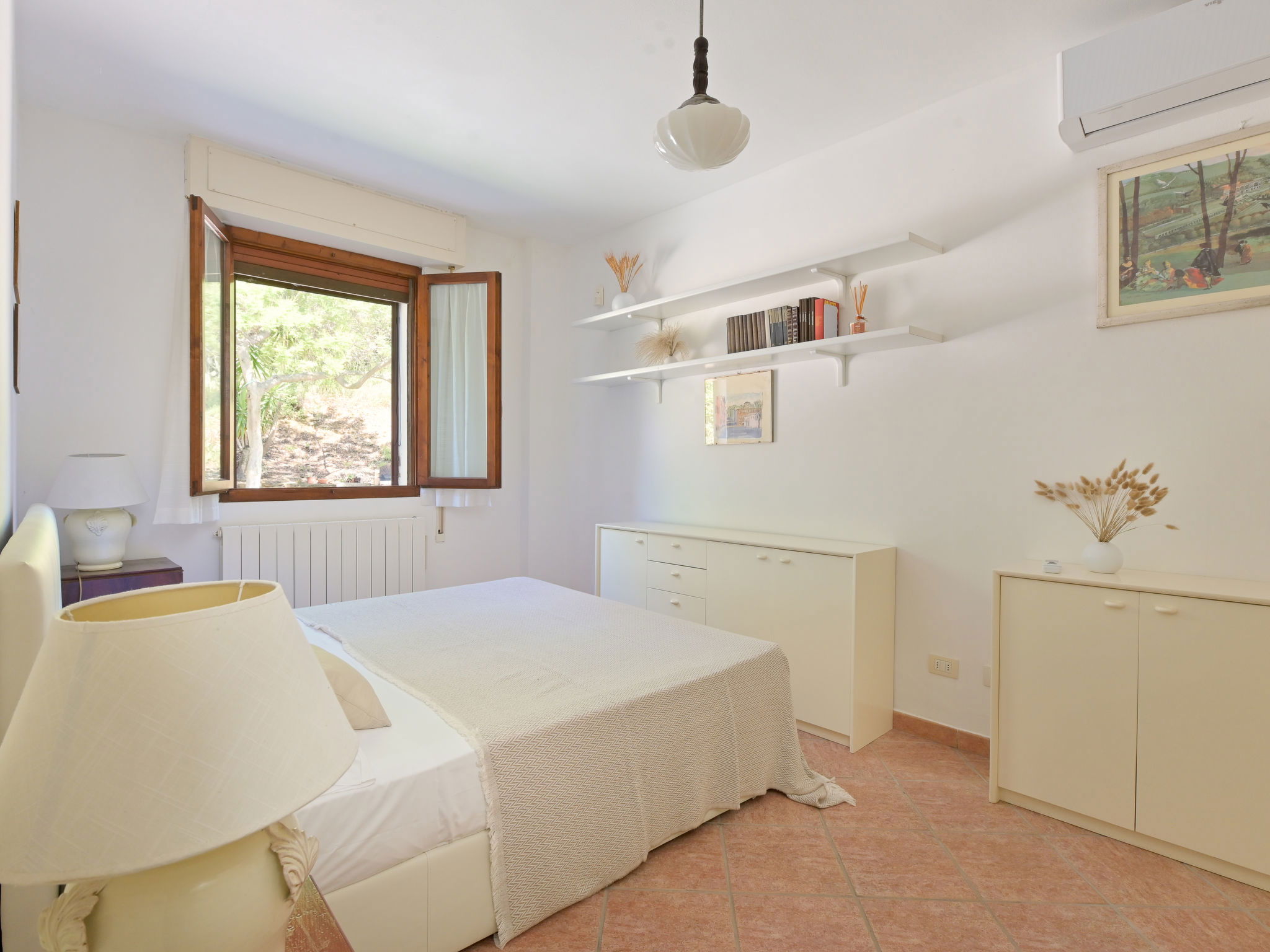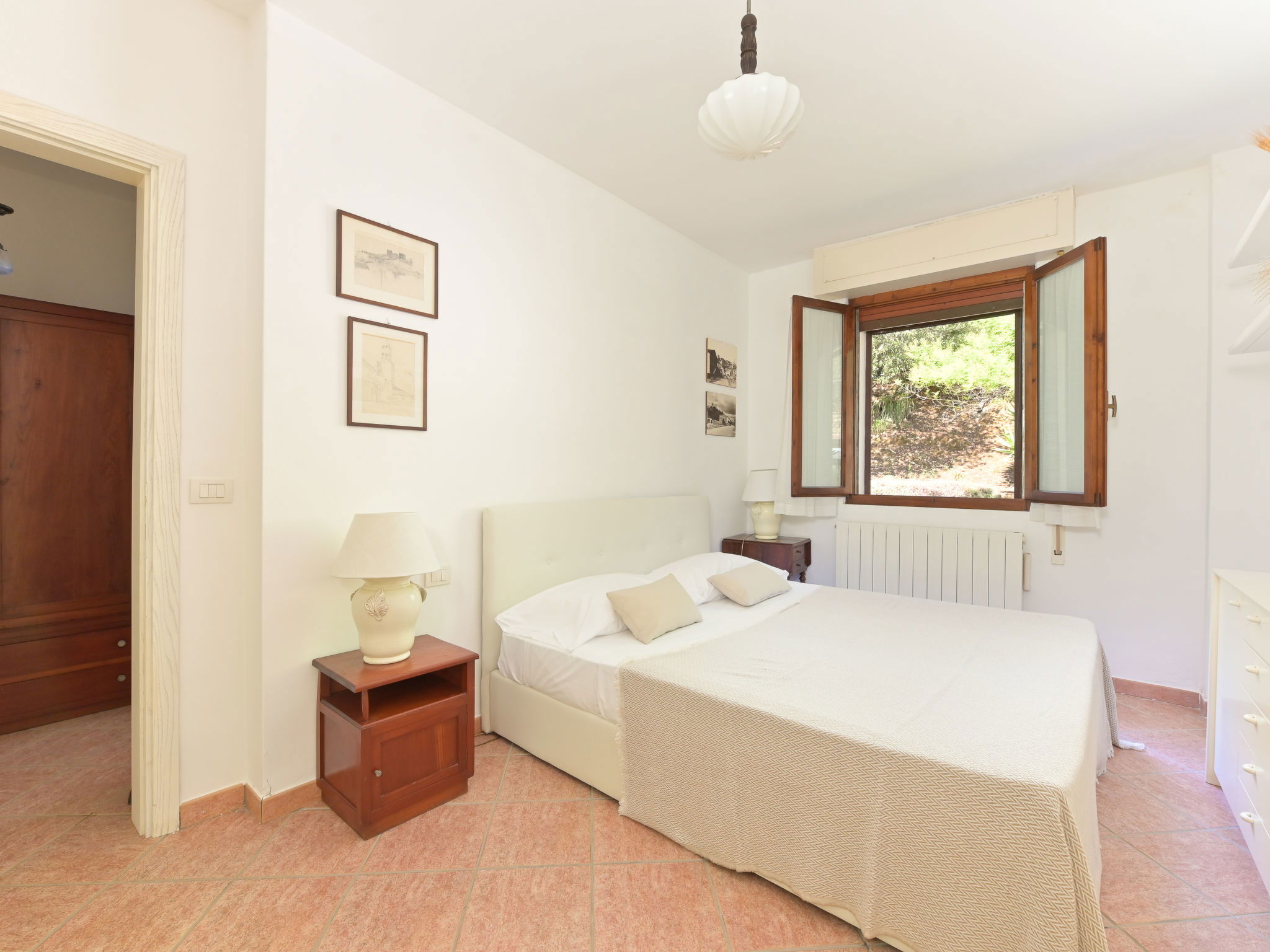5-room house 140 m2, on the ground floor. Spacious, tasteful and cosy furnishings: living room with 1 double sofabed and open-hearth fireplace (only for decoration), TV. Exit to the garden, to the terrace. 1 double bedroom with shower/WC and air conditioning. 1 double bedroom with air conditioning. Living/dining room with 1 double sofabed, TV and air conditioning. Exit to the garden. 1 double bedroom with TV. Large, open kitchen (oven, dishwasher, 5 gas rings, toaster, kettle, microwave, electric coffee machine) with dining table and TV. Bath/bidet/WC, shower/bidet/WC. Gas heating, forced-air heating. Heating available only from 01.11. to 15.04. Terrace roofed. Terrace furniture, deck chairs. Partial view of the sea. Facilities: washing machine, dryer, mosquito net, baby cot for up to 2 year olds (extra), hair dryer. Internet (WiFi, free). Please note: non-smoking house. Maximum 1 pet/ dog allowed. Private entrance, smoke alarm, fire extinguisher. No internal connecting door between the separated properties. IT053006C2O5CBXIK9