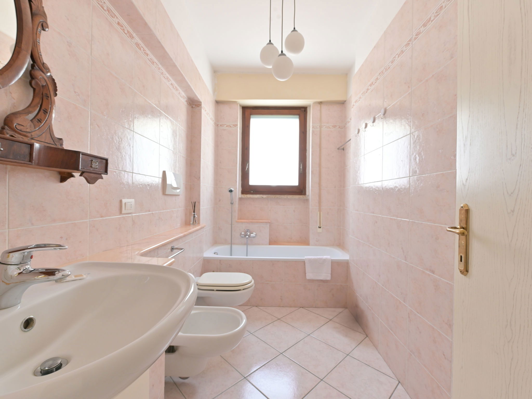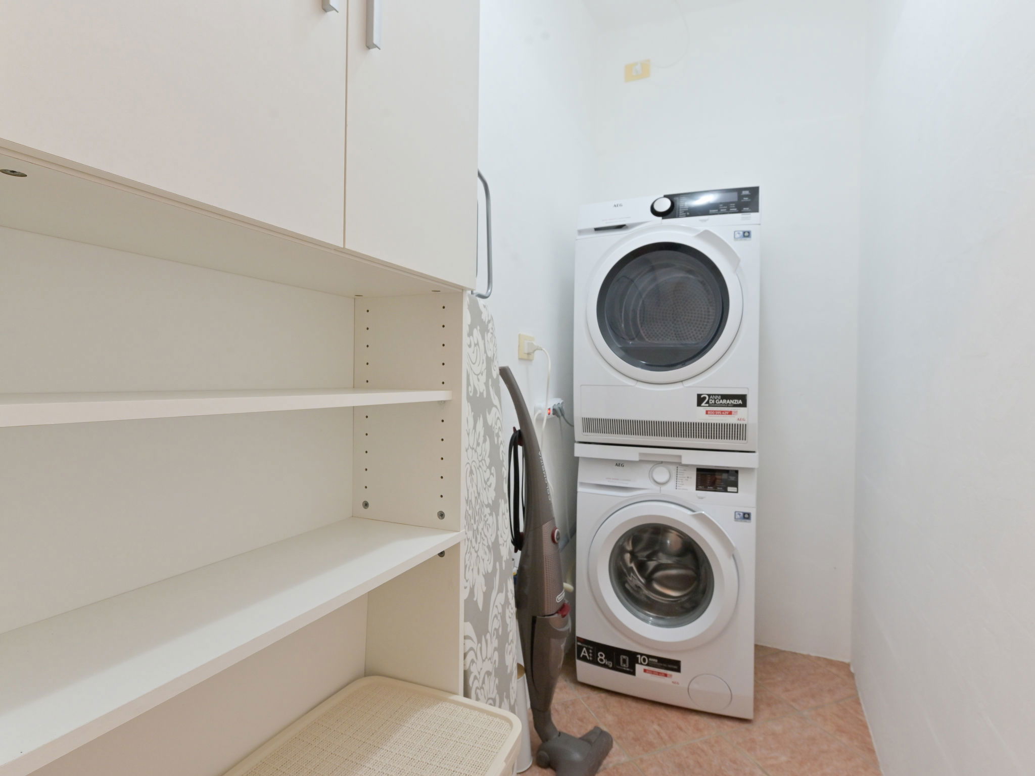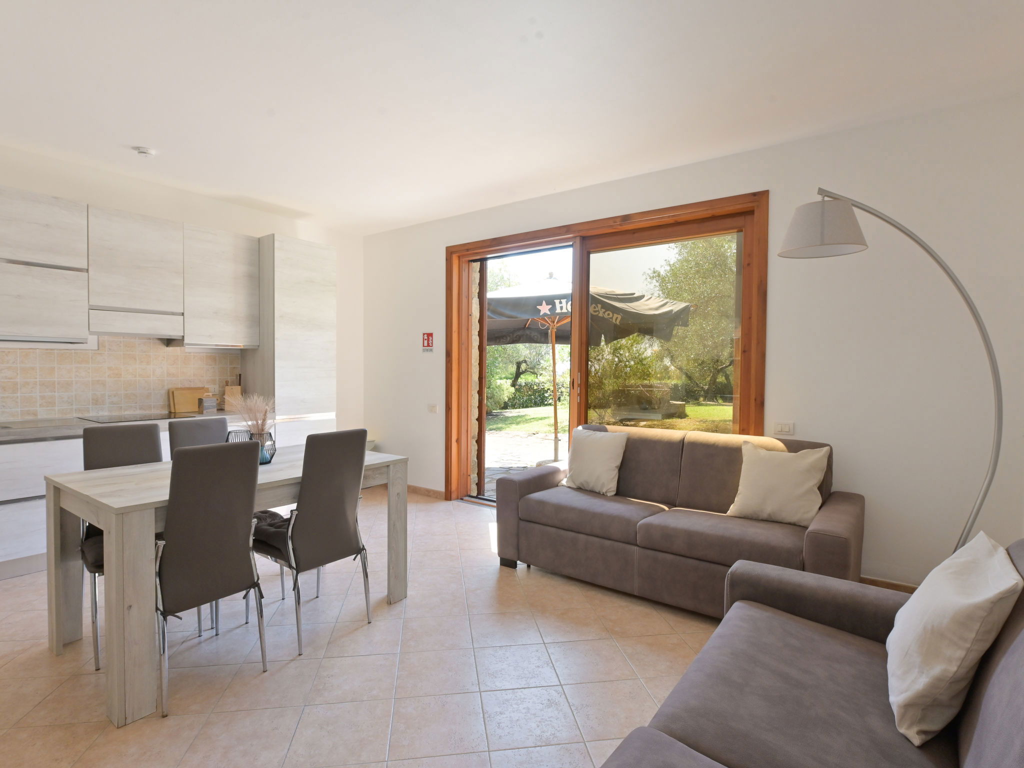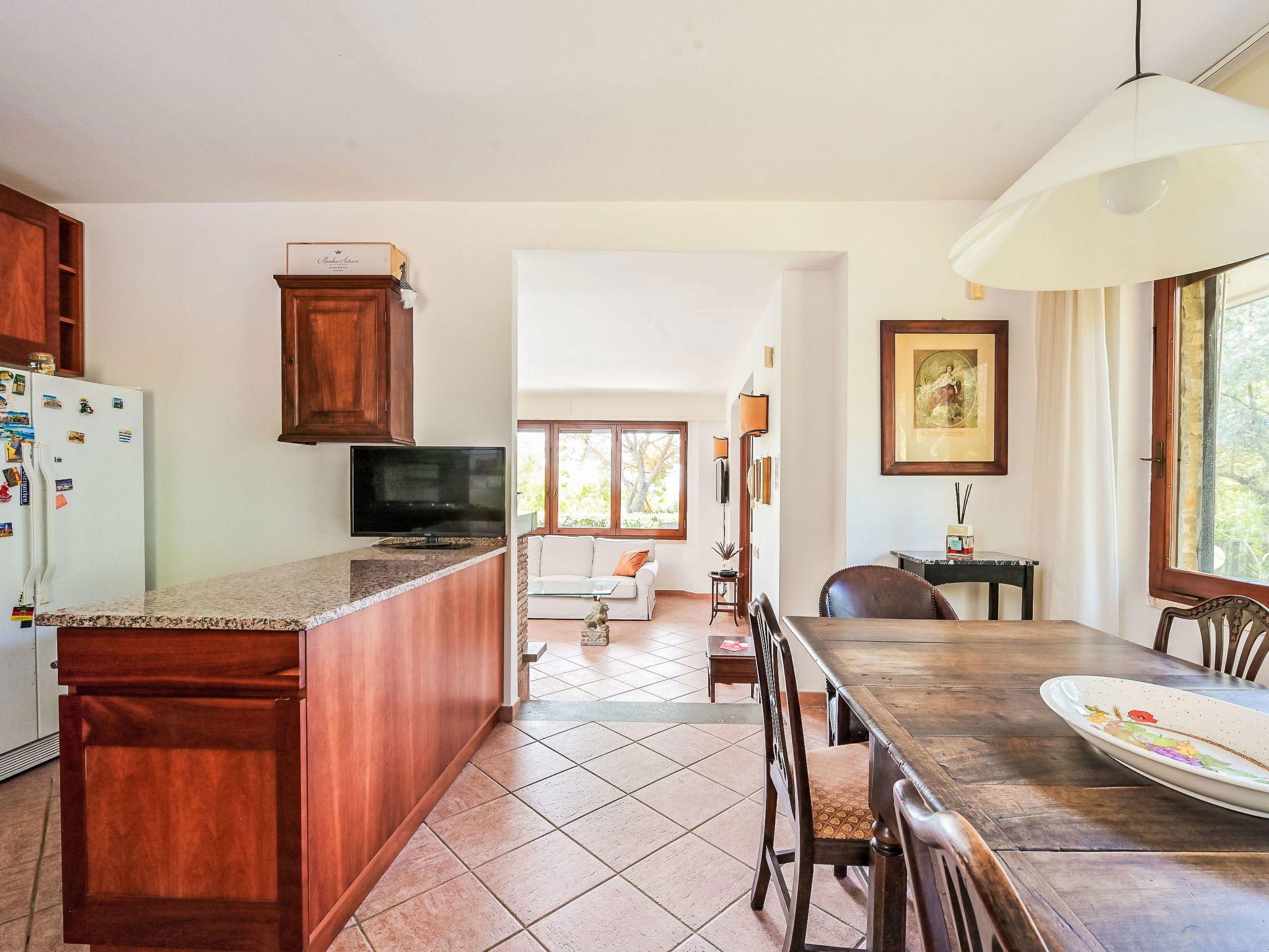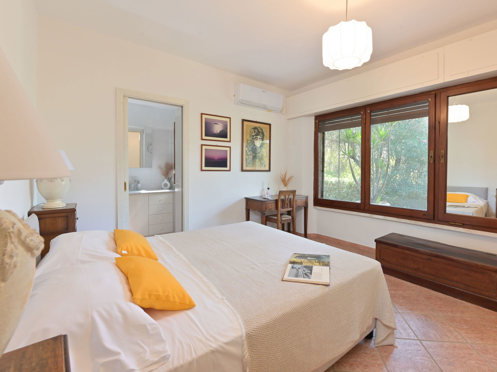 5-room house 140 m2, on the ground floor. Spacious, tasteful and cosy furnishings: living room with 1 double sofabed and open-hearth fireplace (only for decoration), TV. Exit to the garden, to the terrace. 1 double bedroom with shower/WC and air conditioning. 1 double bedroom with air conditioning. Living/dining room with 1 double sofabed, TV and air conditioning. Exit to the garden. 1 double bedroom with TV. Large, open kitchen (oven, dishwasher, 5 gas rings, toaster, kettle, microwave, electric coffee machine) with dining table and TV. Bath/bidet/WC, shower/bidet/WC. Gas heating, forced-air heating. Heating available only from 01.11. to 15.04. Terrace roofed. Terrace furniture, deck chairs. Partial view of the sea. Facilities: washing machine, dryer, mosquito net, baby cot for up to 2 year olds (extra), hair dryer. Internet (WiFi, free). Please note: non-smoking house. Maximum 1 pet/ dog allowed. Private entrance, smoke alarm, fire extinguisher. No internal connecting door between the separated properties. IT053006C2O5CBXIK9