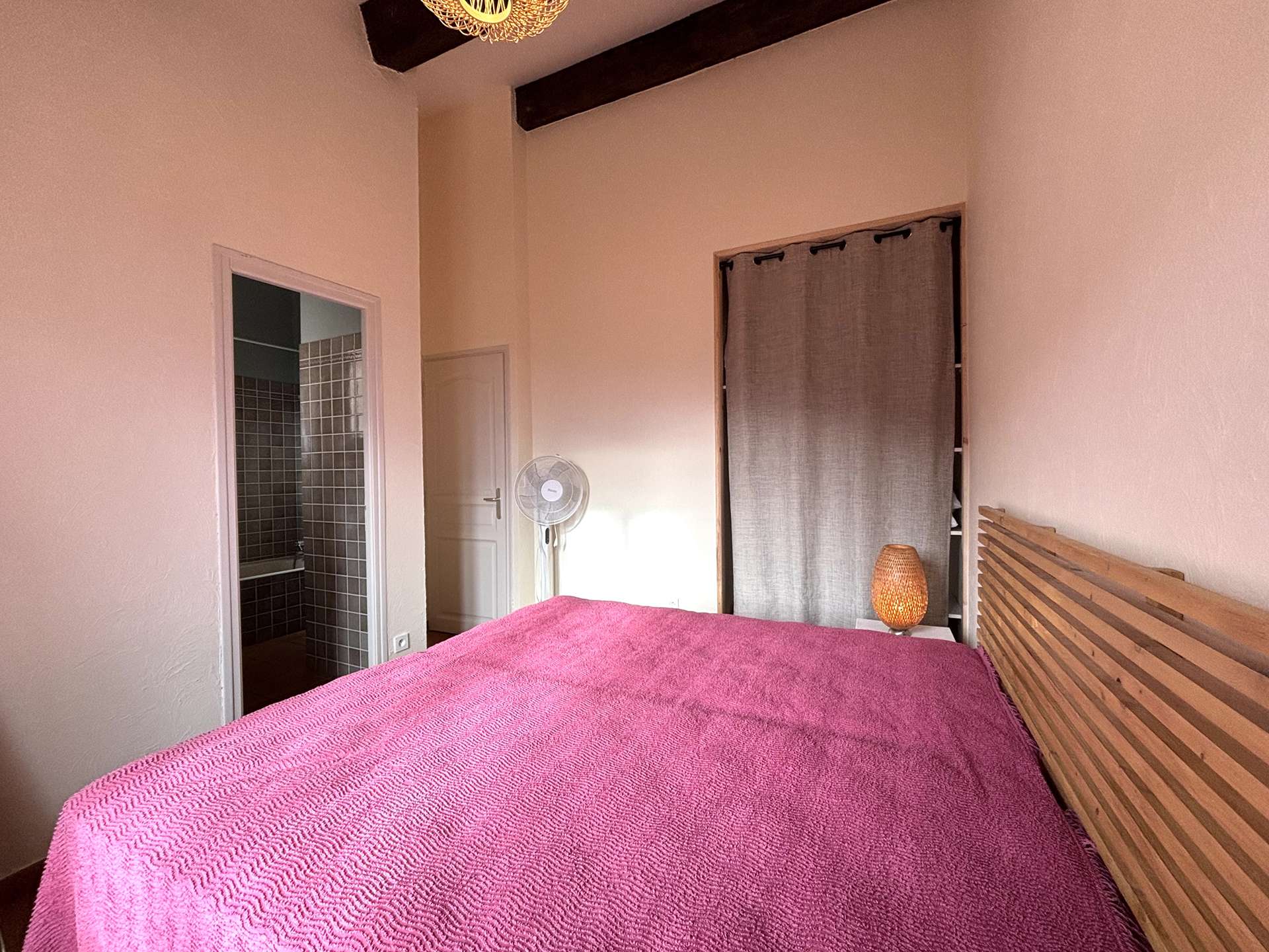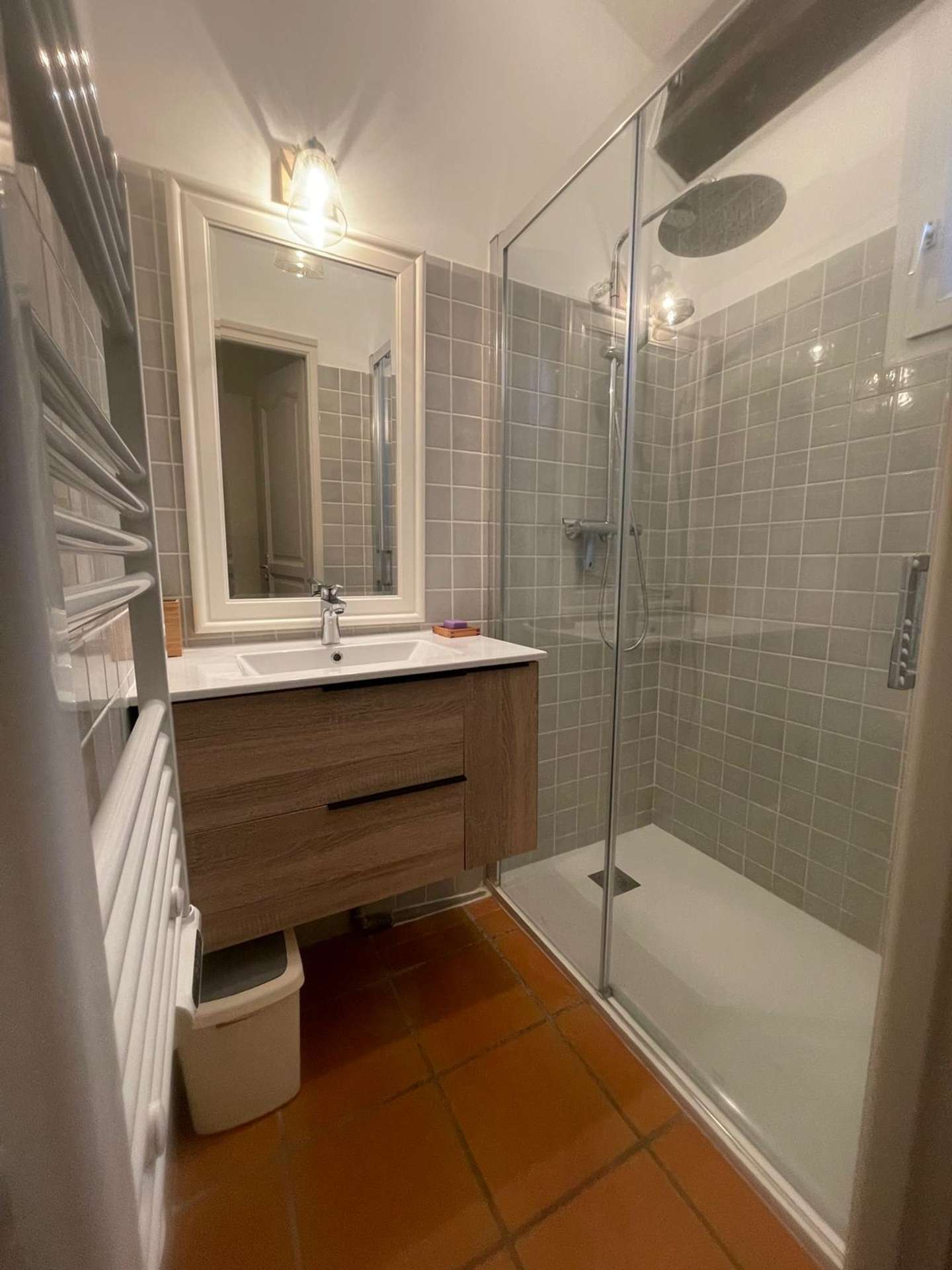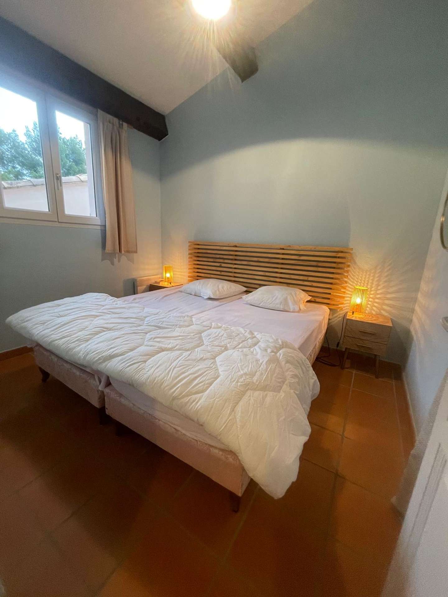 Upstairs, you will find two bedrooms, including a master suite with two single beds (90 × 190 cm), a bathroom, and a private Tropezian-style terrace with sea views. The second bedroom has two single beds (90 × 190 cm), with a shower room nearby and separate WC.