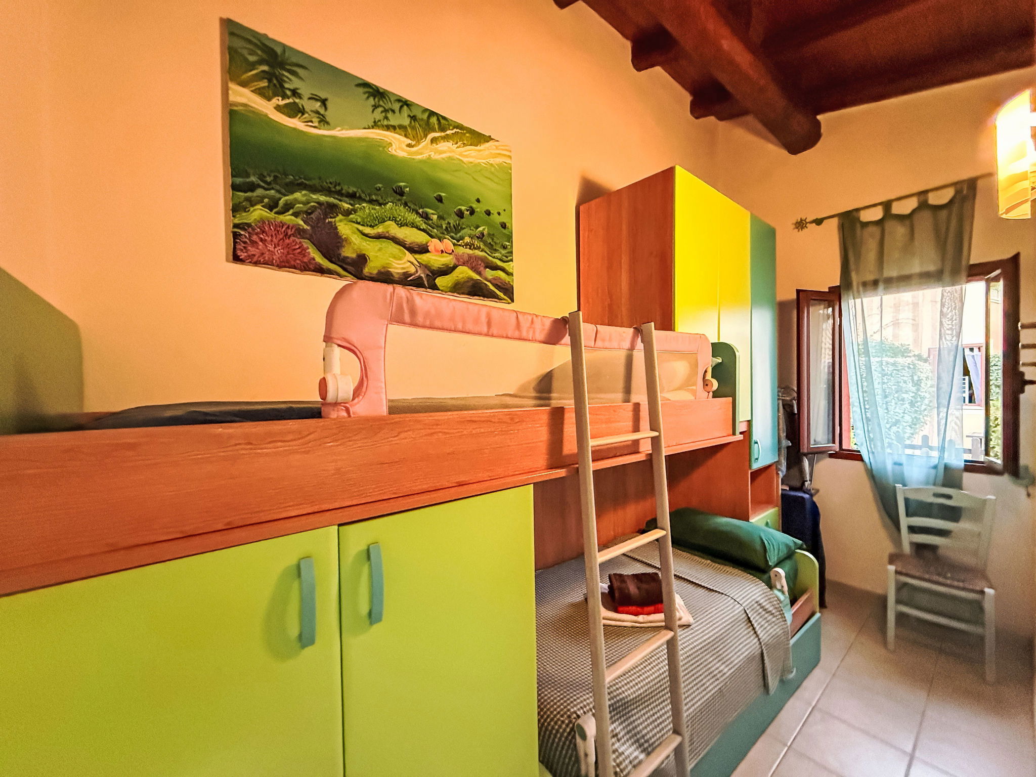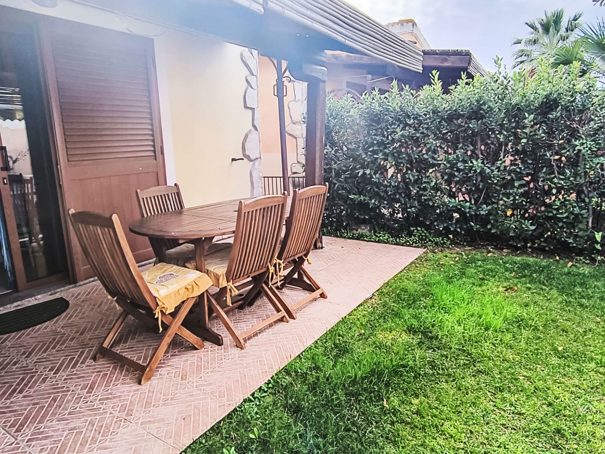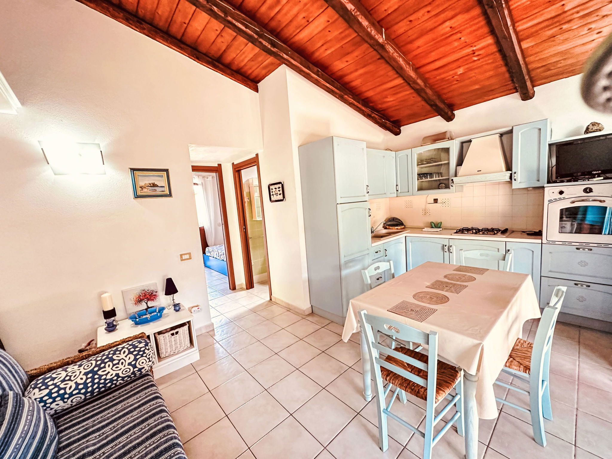 "Azzurra", 3-room terraced house 50 m2, on the ground floor. Beautiful and cosy furnishings: living/dining room with TV (flat screen), air conditioning. Exit to the garden. 1 room with 1 double bed and air conditioning. Exit to the garden. 1 room, 1 bunk beds. Kitchenette (oven, 4 gas rings, toaster, kettle). Shower/bidet/WC. Small garden. Terrace furniture, barbecue, conservatory. Facilities: washing machine, iron, hair dryer. Maximum 1 small pet/ dog allowed. IT000000C0000T0000