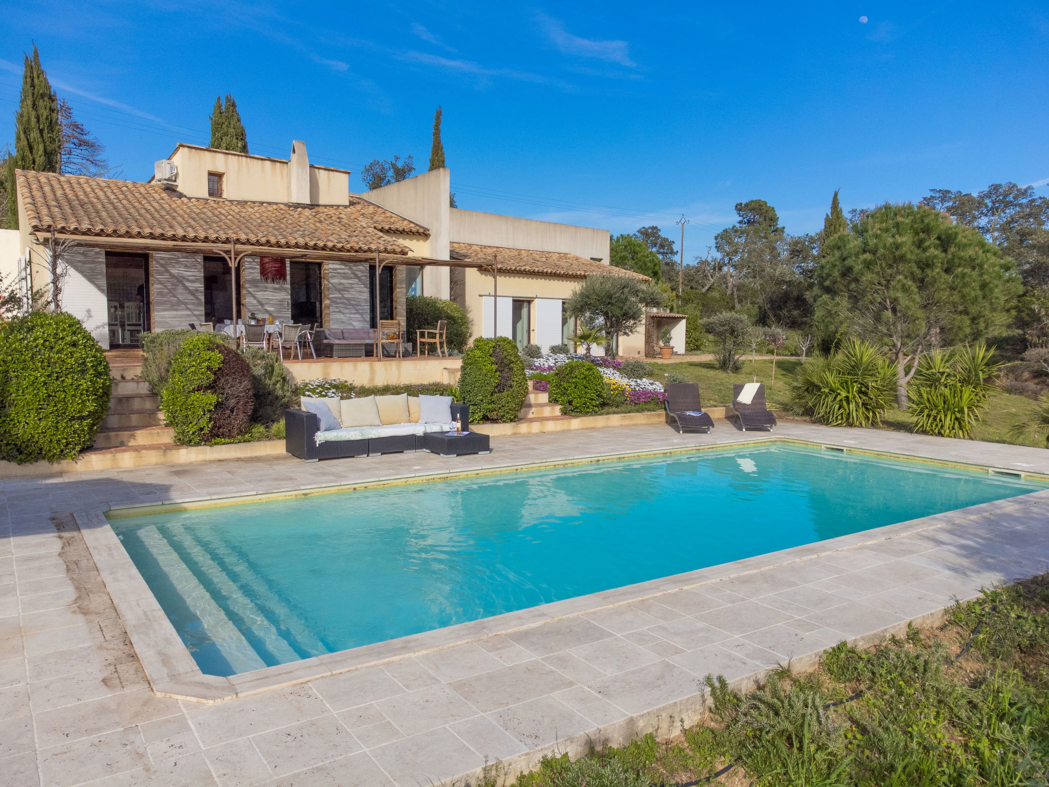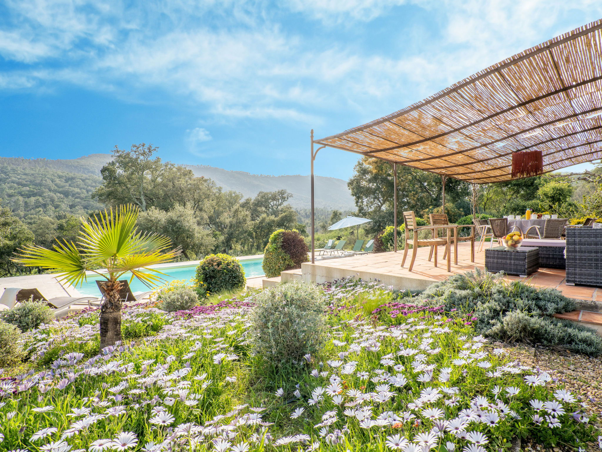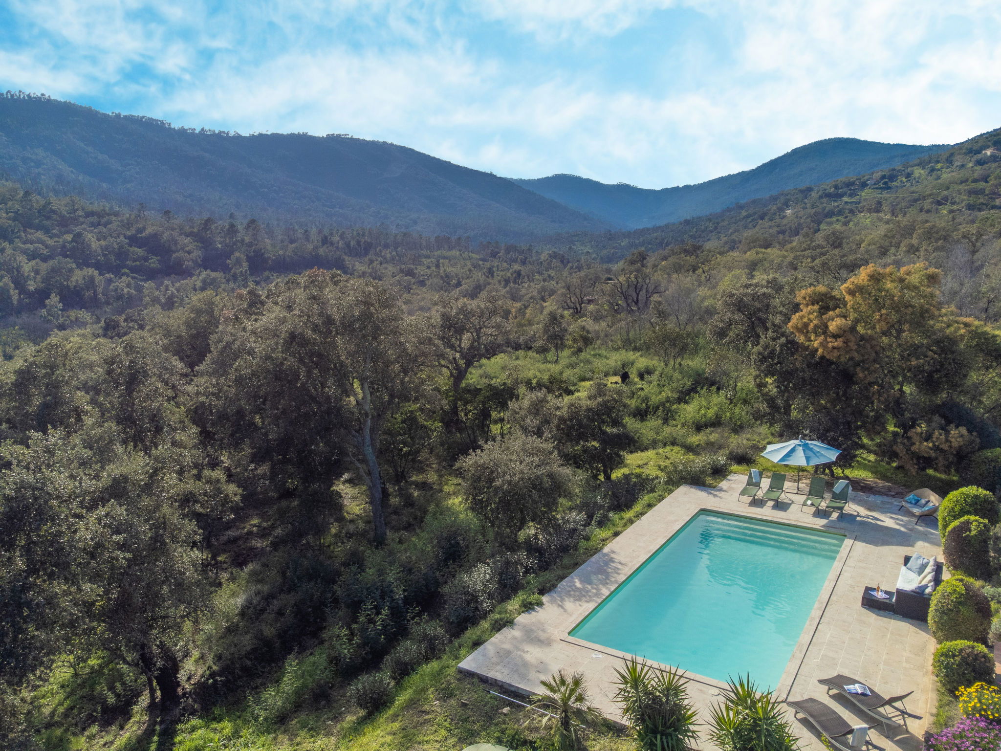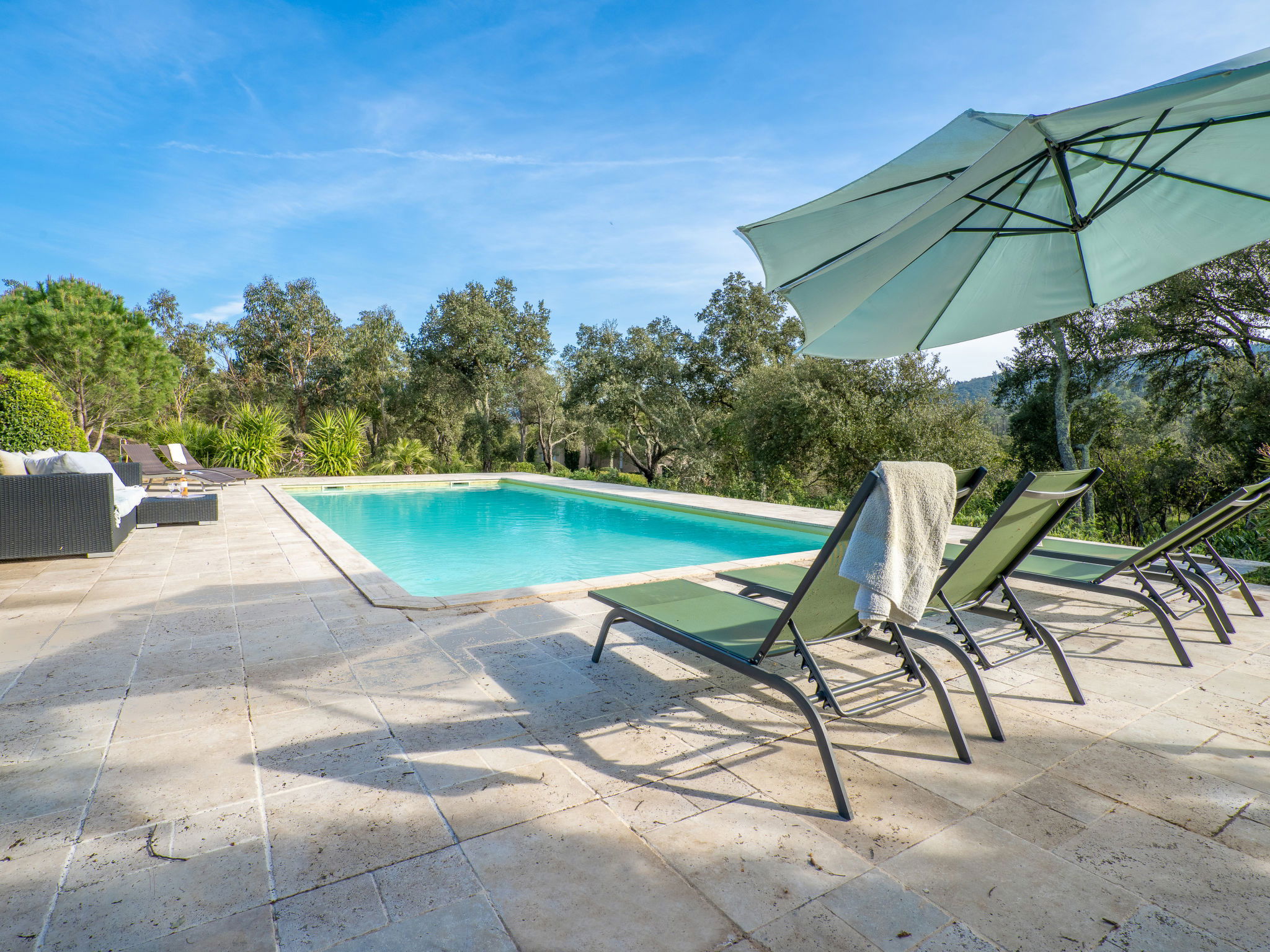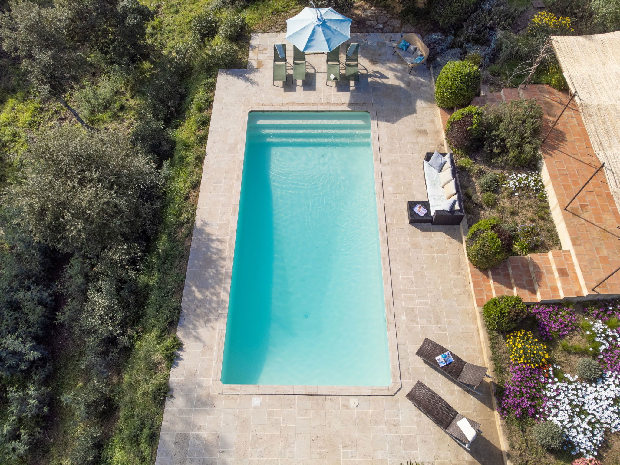 Beautiful house "Serapias", detached. 7 km from the centre of Cogolin, 16 km from the centre of Saint Tropez, 9 km from the centre of Grimaud, 10 km from the sea. Private: natural state property 10'000 m2, terraced garden (not fenced), swimming pool (11 x 5 m, seasonal availability: 01.Jan. - 31.Dec.) with alarm system. Motor access (300 m via unmade road). Parking (for 2 cars) on the premises. Carport. Shop 7 km, bus stop 6.5 km, sandy beach 10 km. The owner does not accept any youth groups.