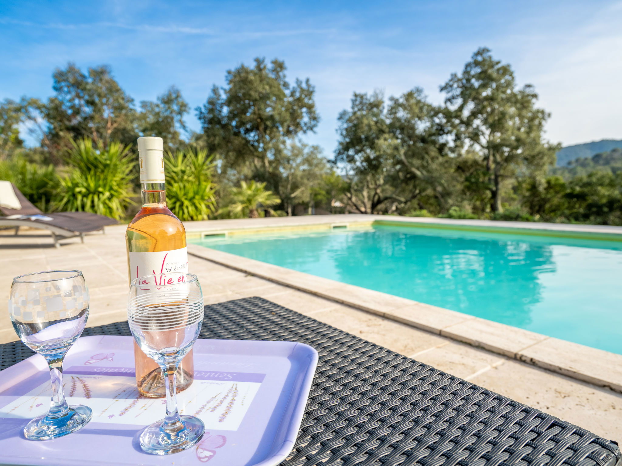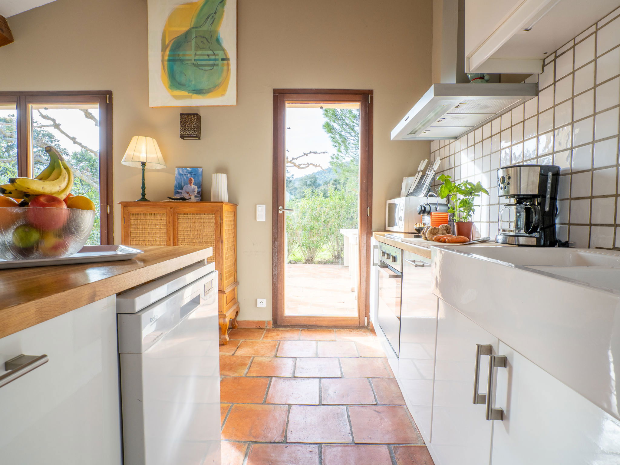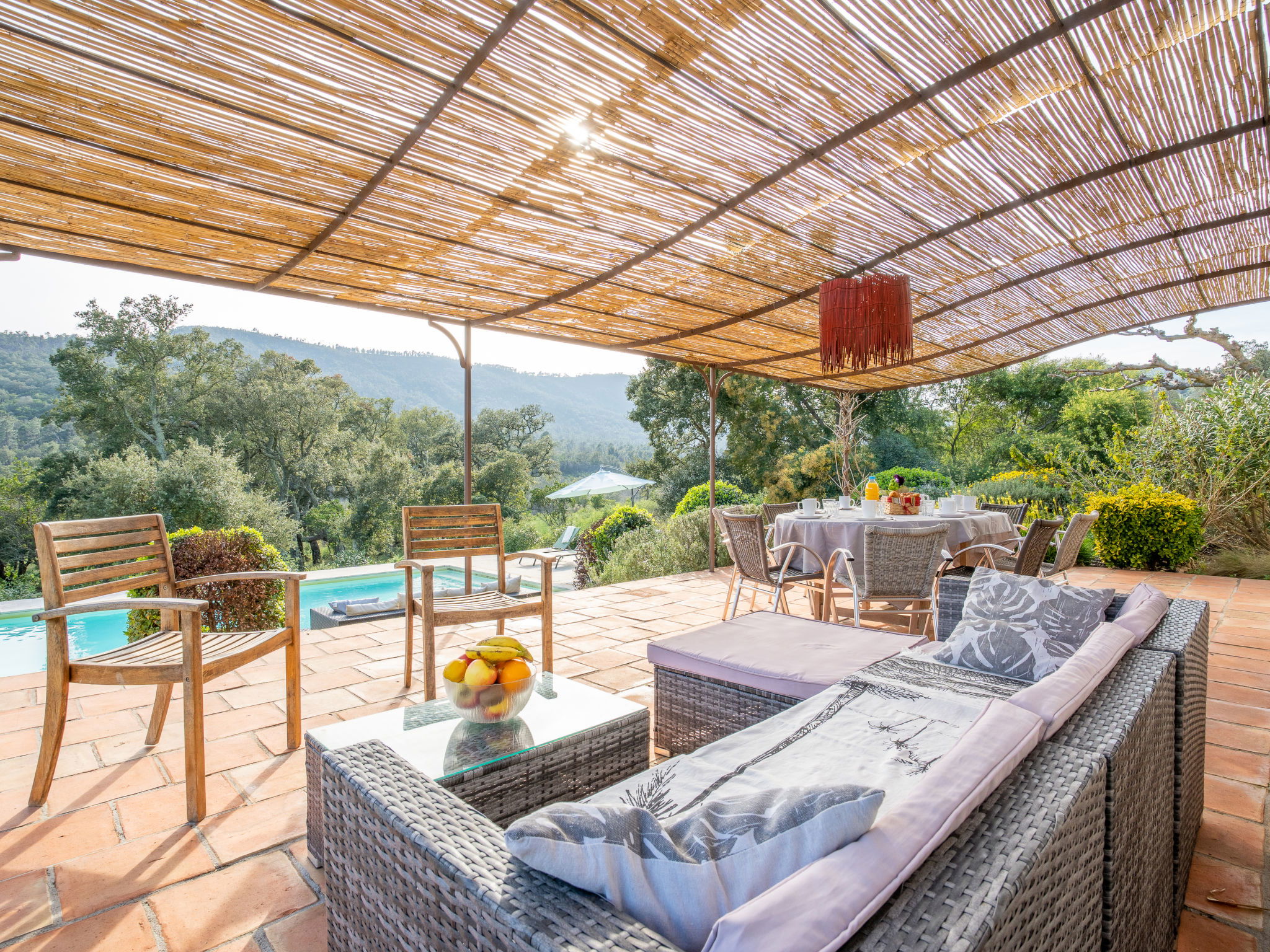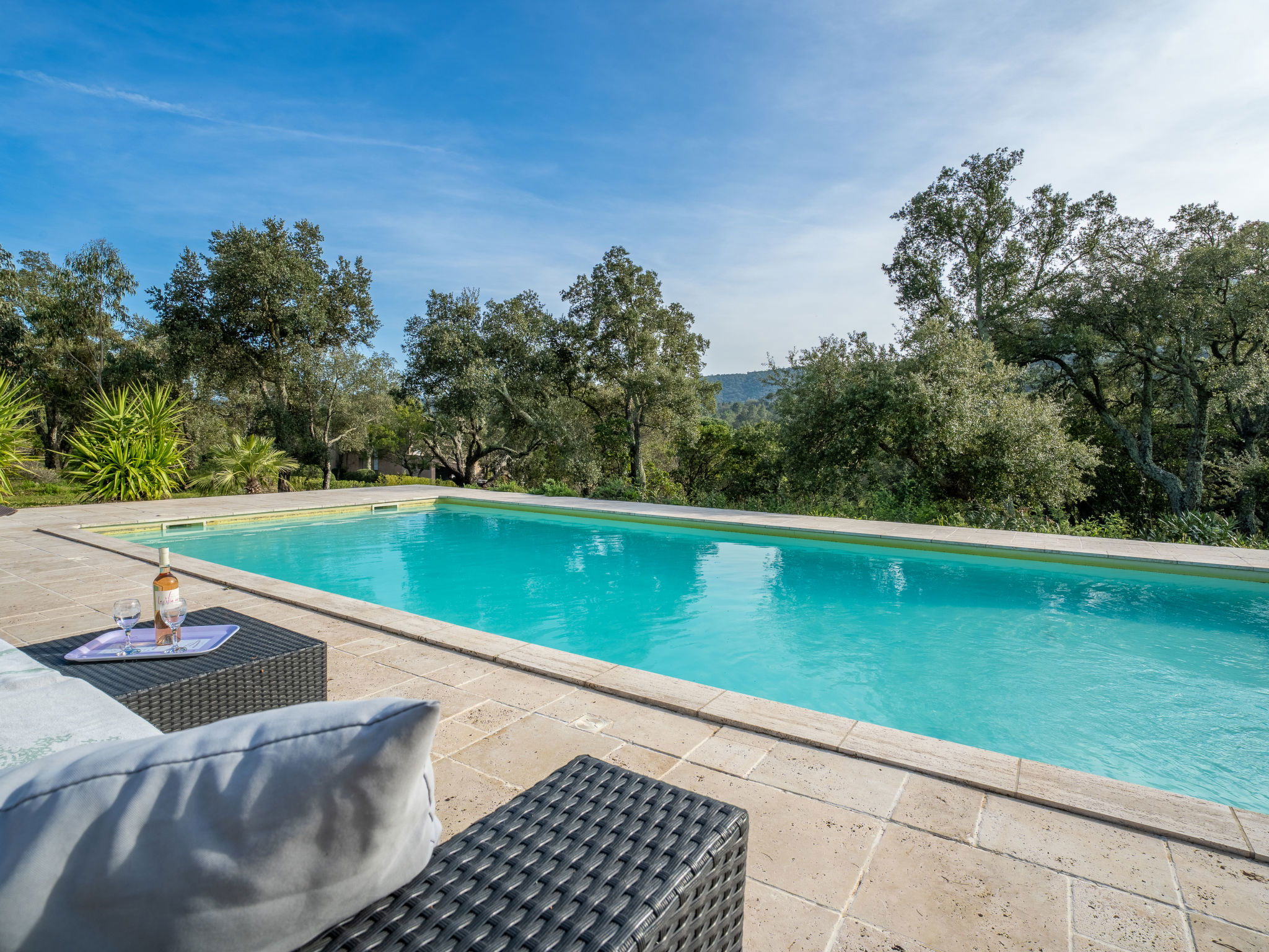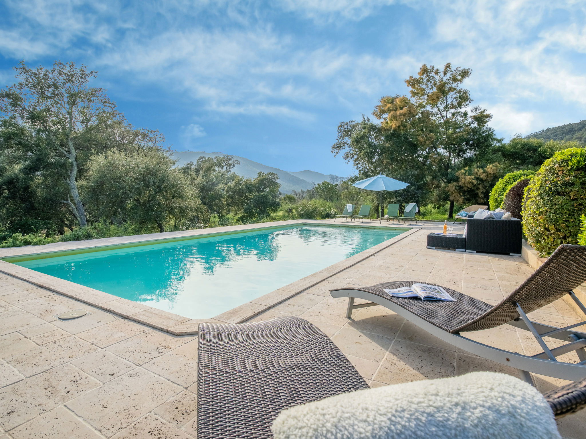 Beautiful house "Serapias", detached. 7 km from the centre of Cogolin, 16 km from the centre of Saint Tropez, 9 km from the centre of Grimaud, 10 km from the sea. Private: natural state property 10'000 m2, terraced garden (not fenced), swimming pool (11 x 5 m, seasonal availability: 01.Jan. - 31.Dec.) with alarm system. Motor access (300 m via unmade road). Parking (for 2 cars) on the premises. Carport. Shop 7 km, bus stop 6.5 km, sandy beach 10 km. The owner does not accept any youth groups.