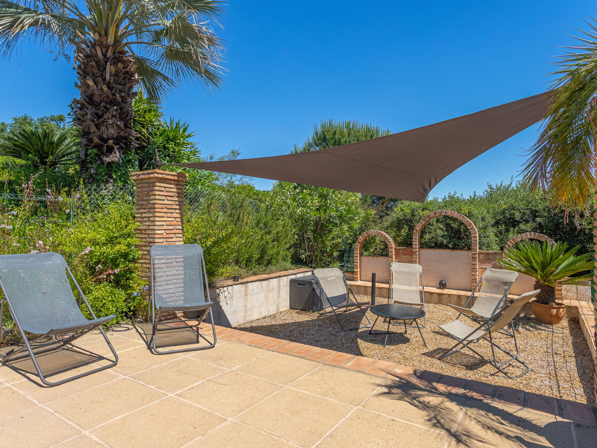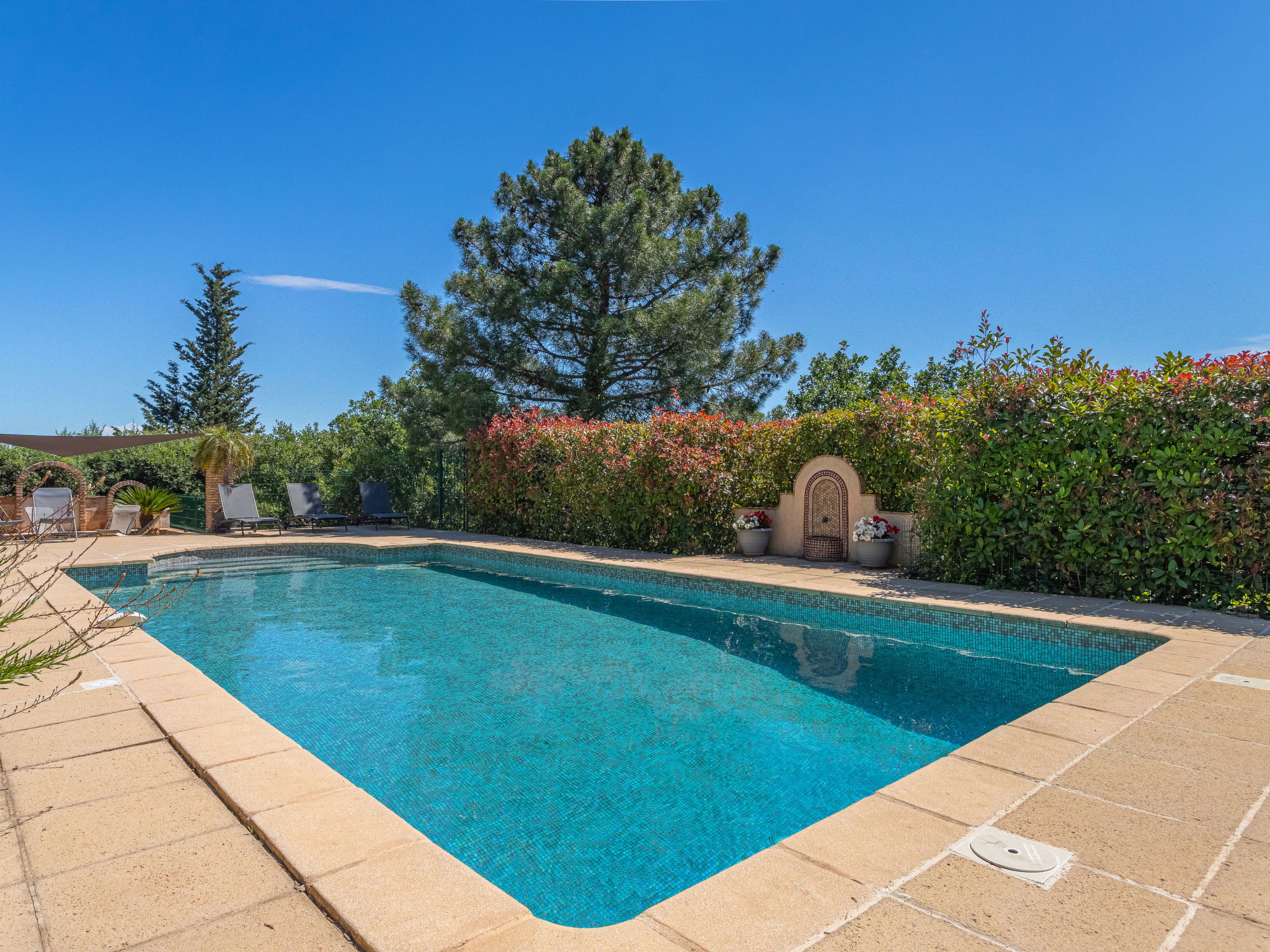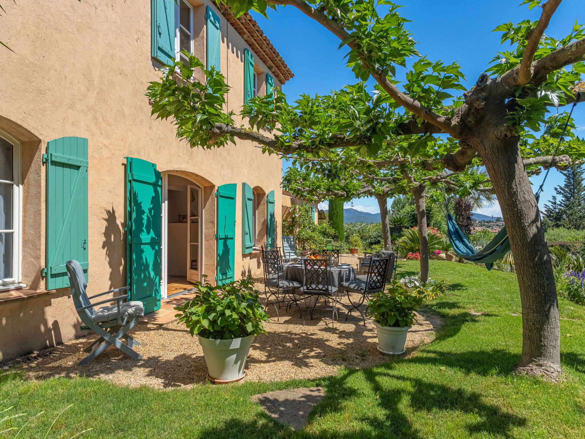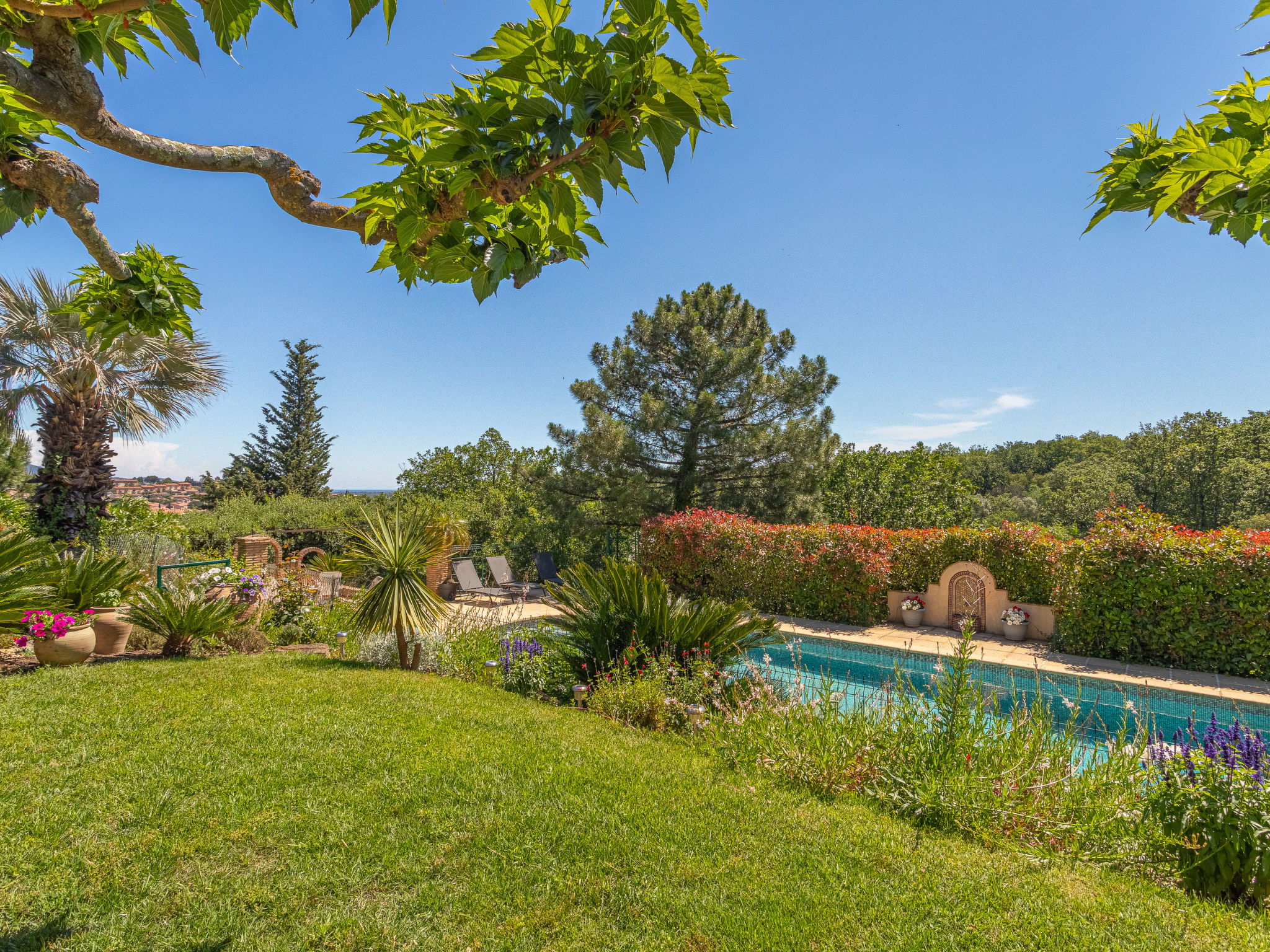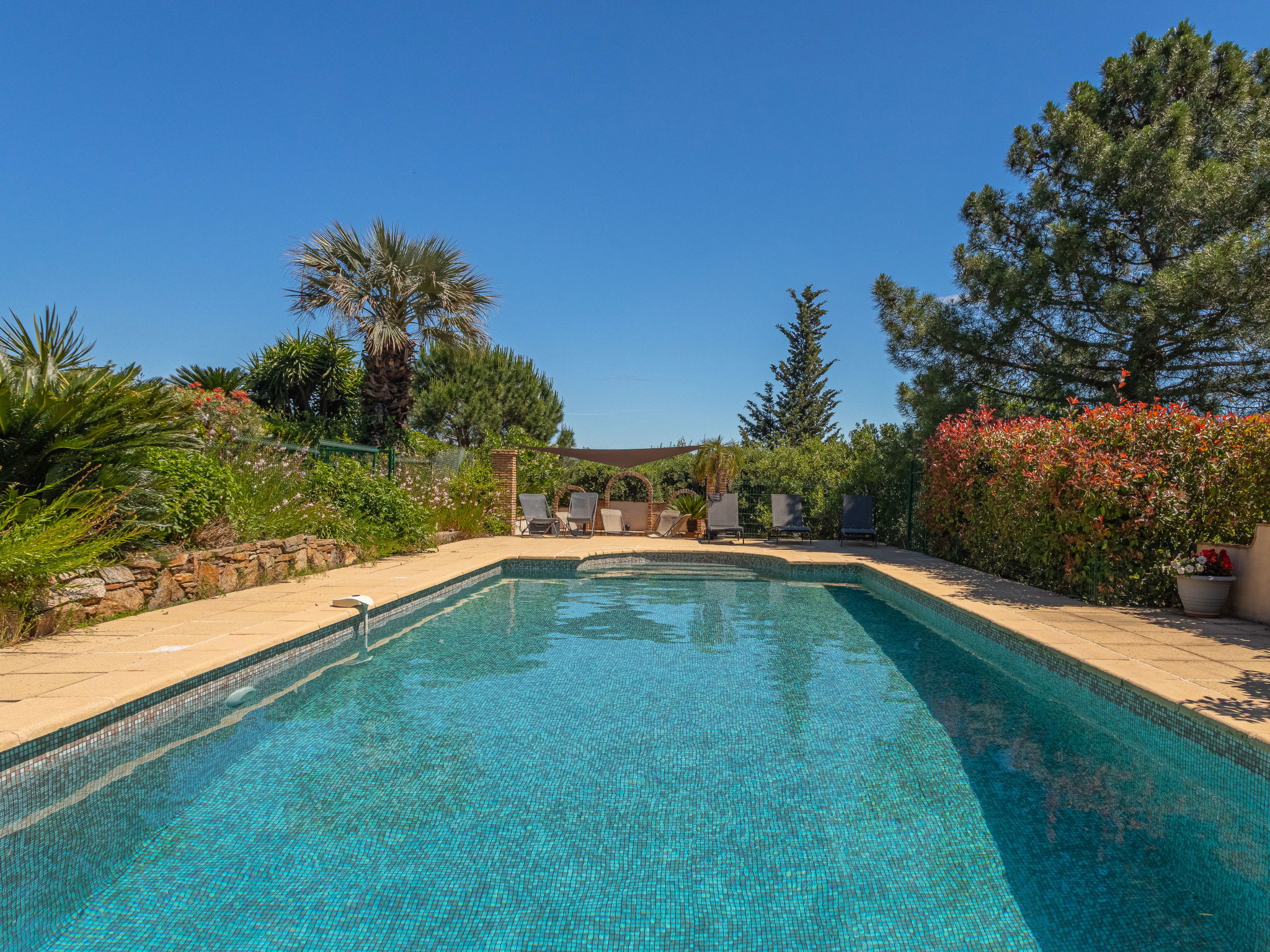 Villa "Les Mûriers". In the resort 1.3 km from the centre of Cogolin, in a quiet position in the residential district, 7 km from the sea, 7 km from the beach. Private: well-kept terraced garden, 700 m2 (fenced), swimming pool angular (10 x 5 m, depth 120 - 220 cm, seasonal availability: 01.Apr. - 30.Oct.) with alarm system. Shop 1.3 km, grocery 1.3 km, supermarket 1.4 km, restaurant 1.3 km, bus stop "Rond point de Kock" 1.3 km, sandy beach "Port Grimaud" 6.8 km. Sports harbour 6.8 km, golf course (18 hole) 11 km, sailing school 8 km, minigolf 7 km. Nearby attractions: Port Grimaud 7 km, Parc d'attractions Azur Park 7 km, Saint Tropez 13 km, Pampelonne 18 km, Cannes 84 km, Nice 110 km. Well-known lakes can easily be reached: Lac de Sainte Croix 92 km. Hiking paths: Massif de l'Esterel 50 km. Please note: car recommended. Animals in the neighbourhood.