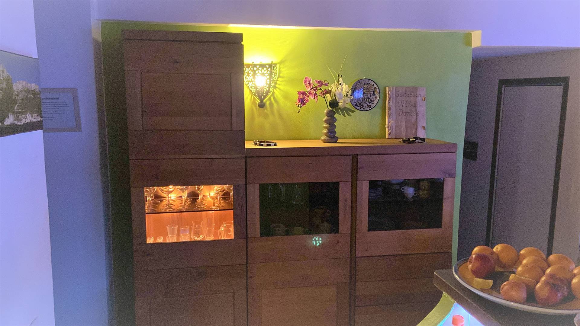 Living / kitchen (American), dishwasher, fridge freezer, oven, stove (4 gas), microwave, toaster, coffee maker, TV (German + 5 French channels)