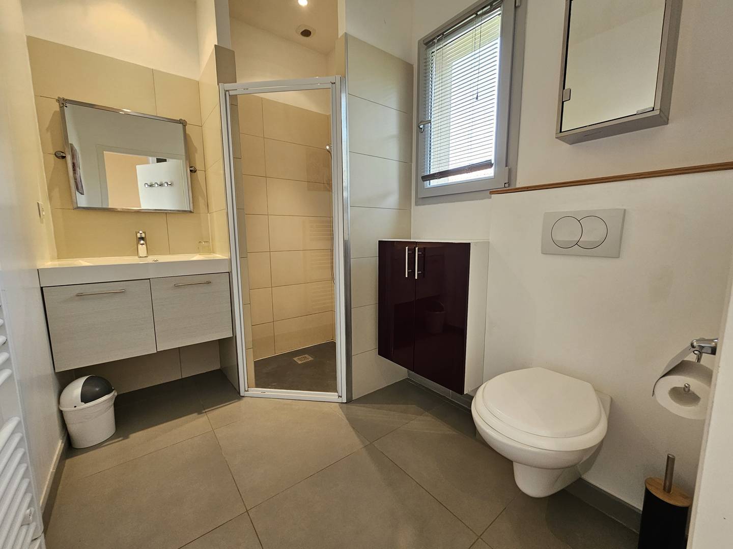 Living room / kitchen - (bay) - electric blind -: hob (induction), oven (electric), extractor hood, fridge freezer, microwave, coffee machine (Nespresso), dishwasher, fitted wardrobe, TV (French, TNT)