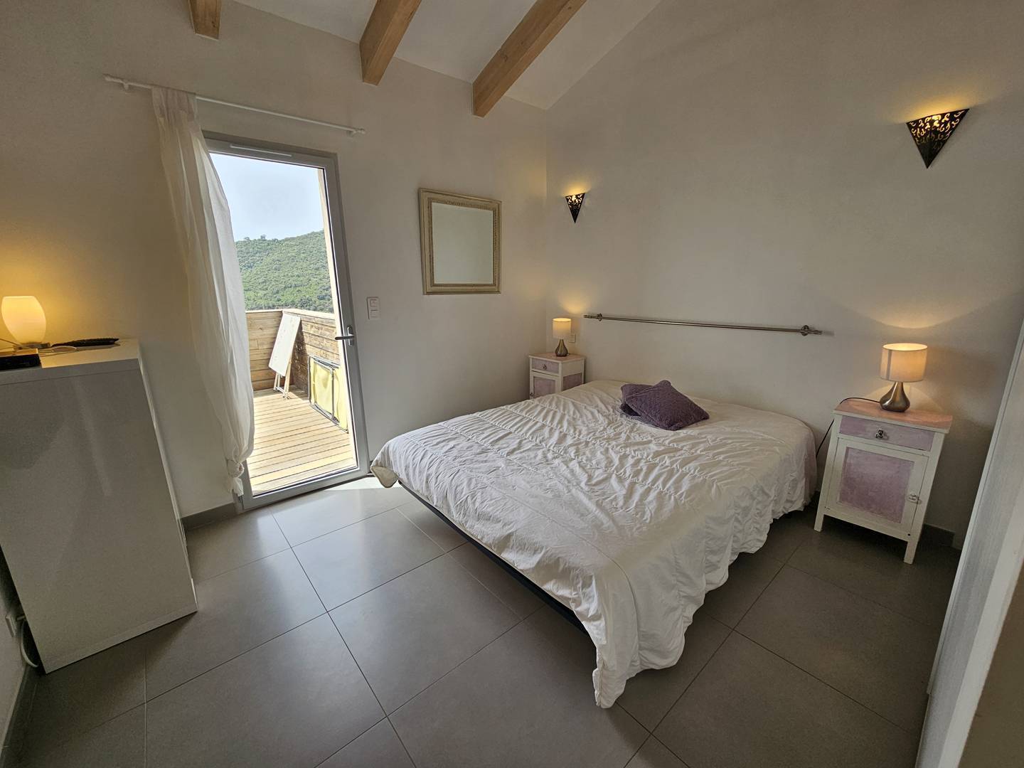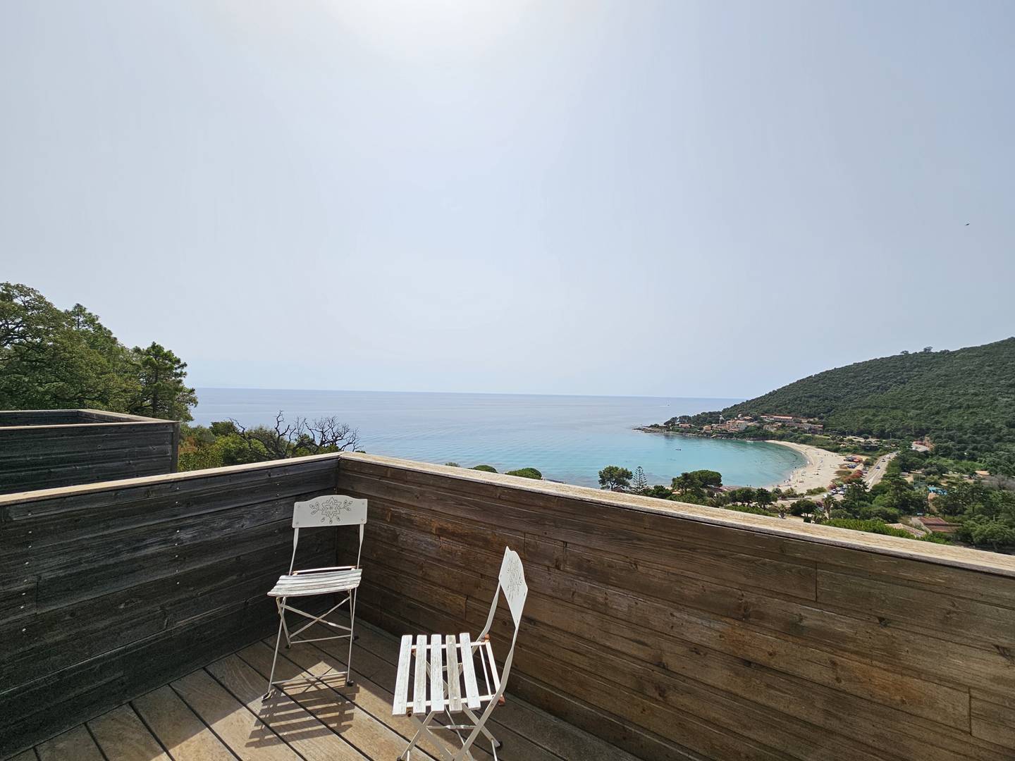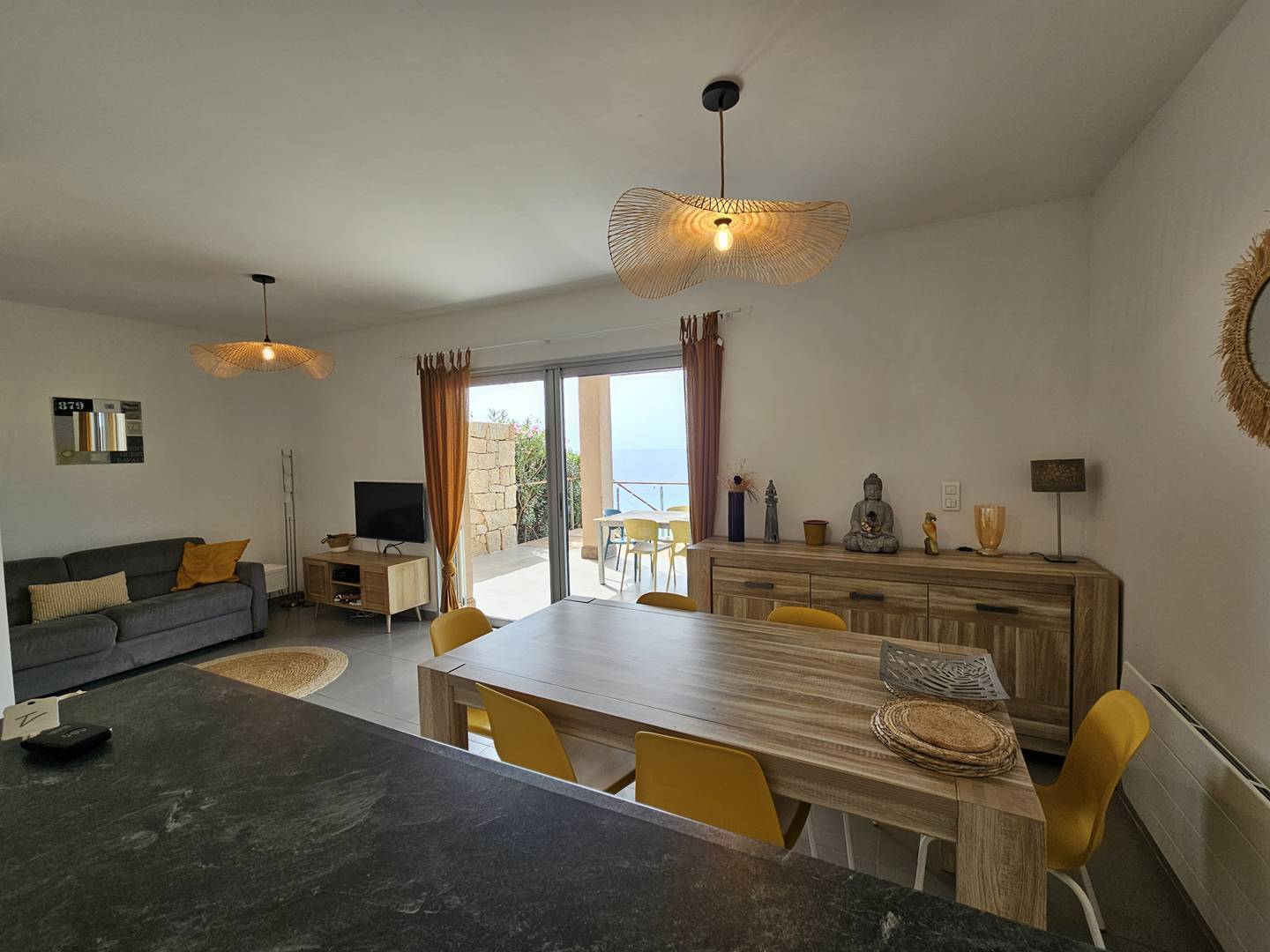 It has over a covered terrace and a balcony with sea view 180 ° and on the mountains of Bavella.