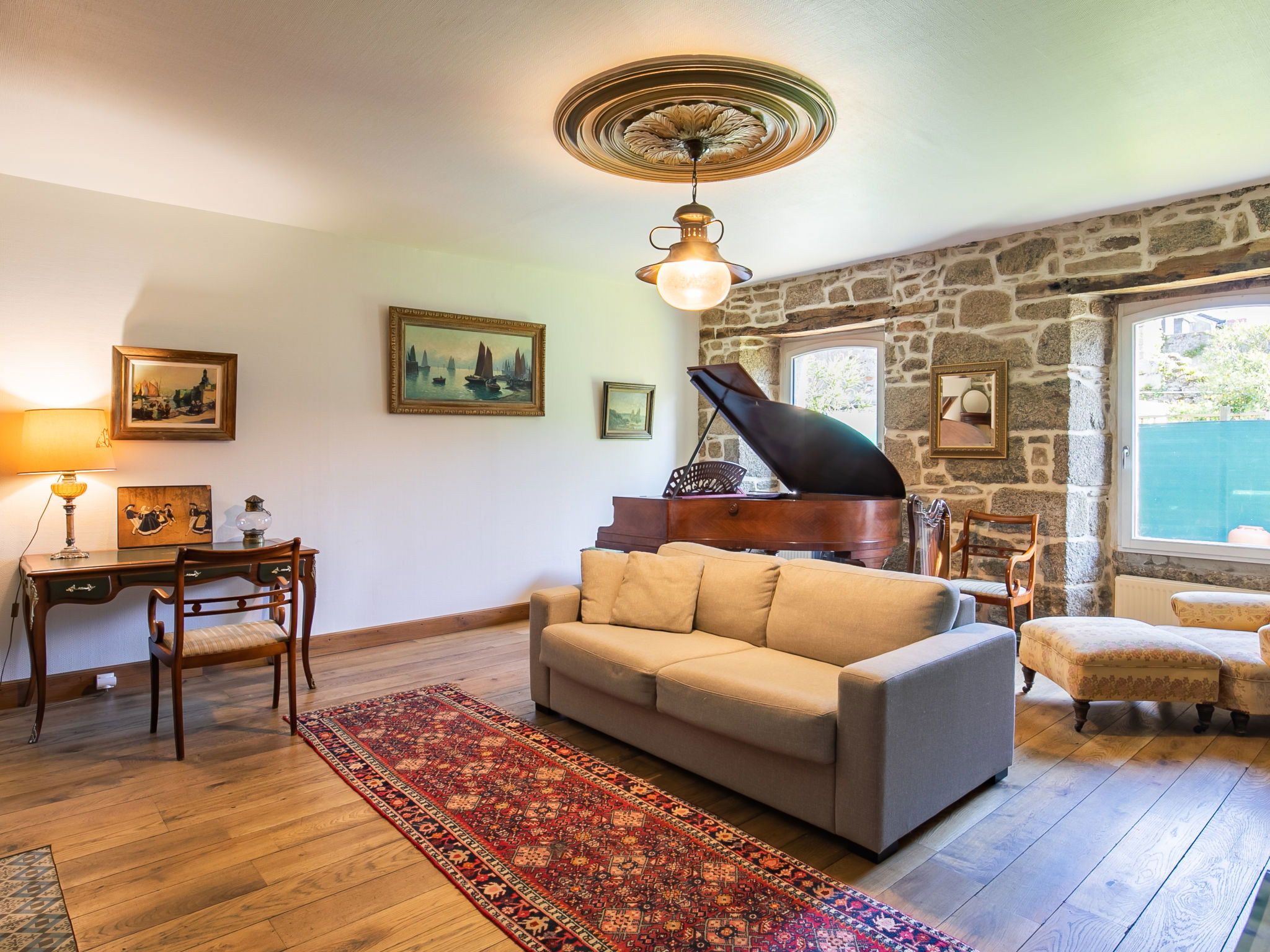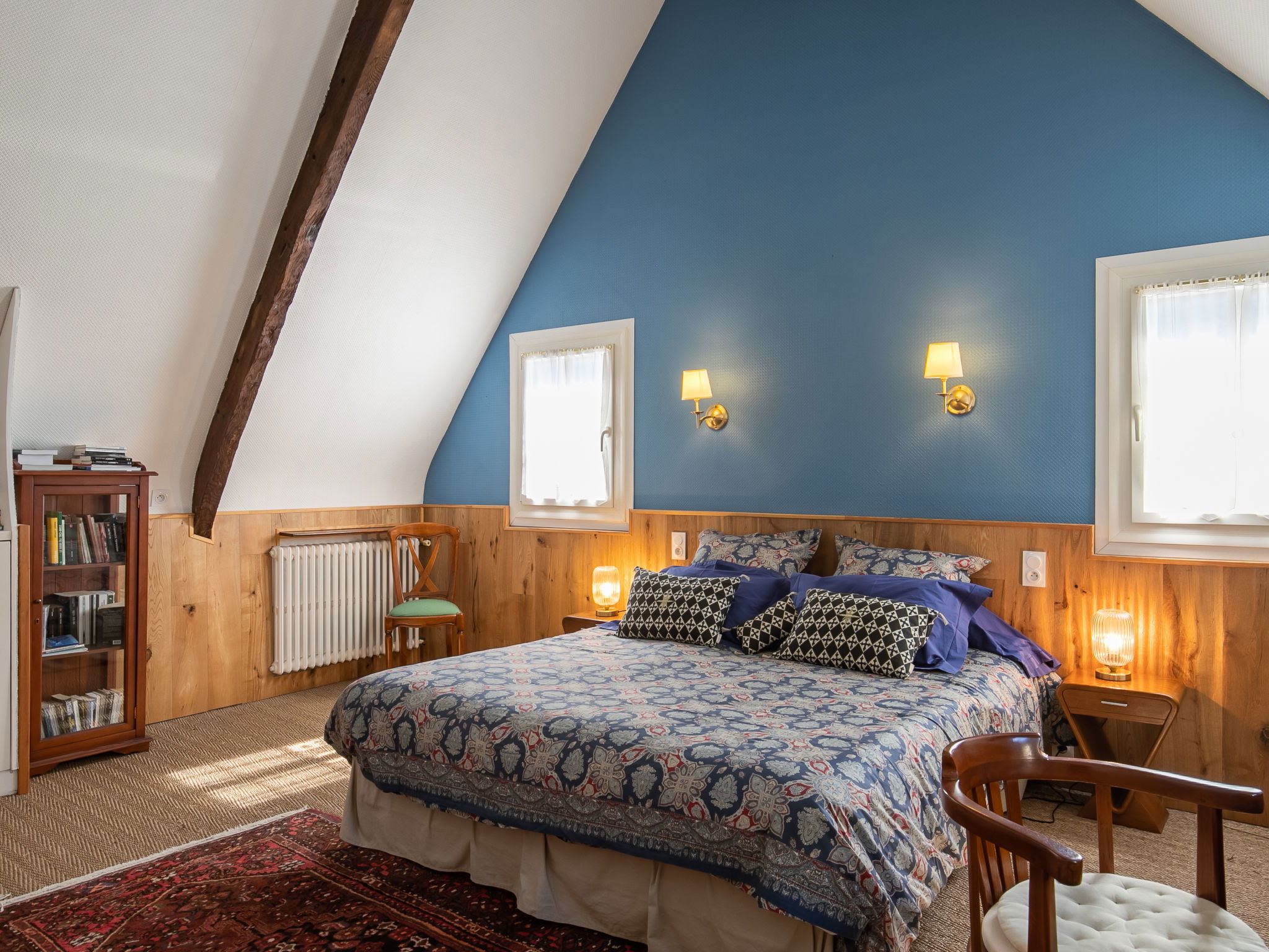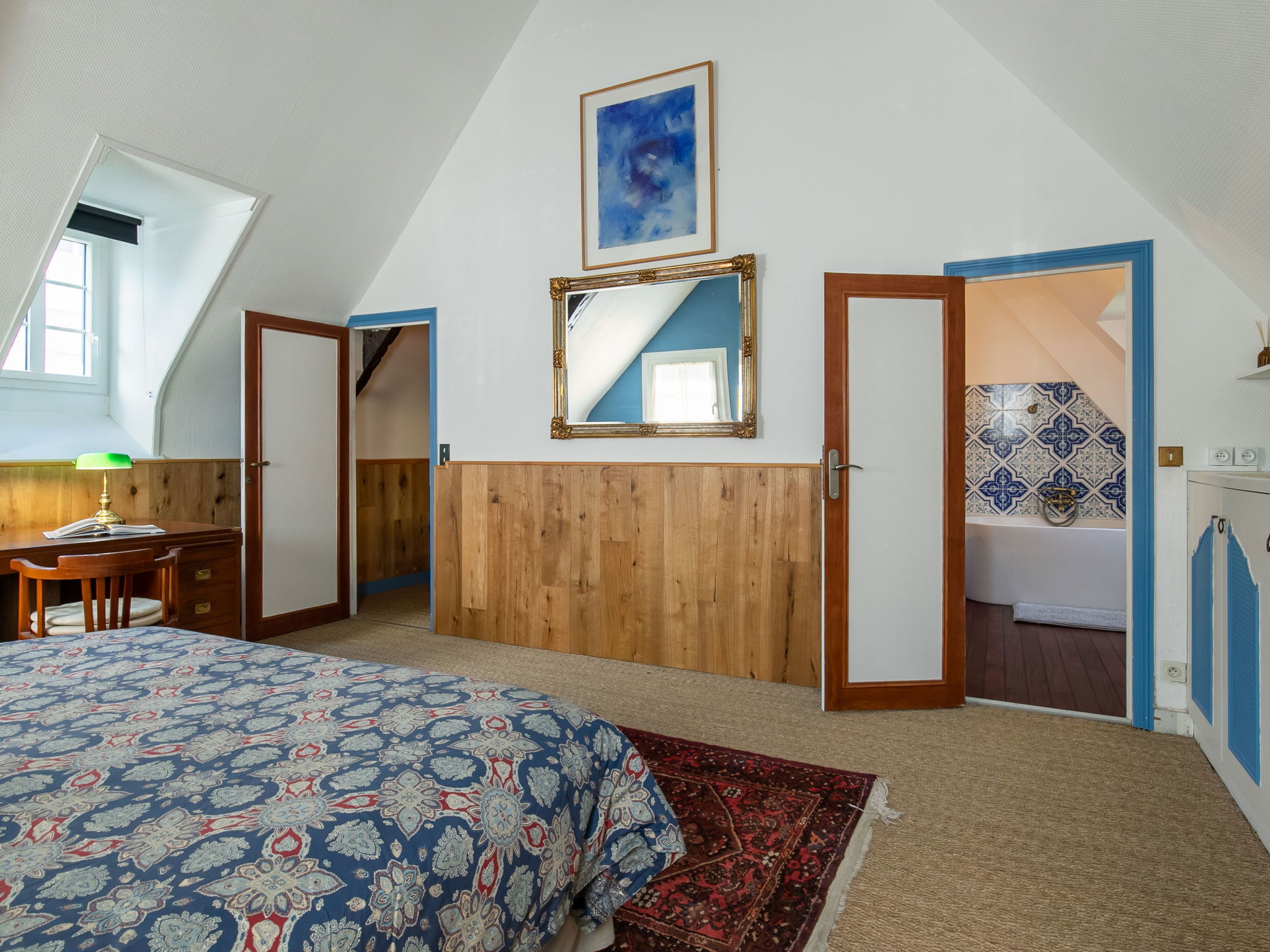 "Maison Duquesne", 6-room house 160 m2 on 2 levels. Spacious, beautiful and stylish furnishings: open living/dining room 30 m2 with Scandinavian wood stove. Exit to the garden, to the patio. Living room 30 m2 with open-hearth fireplace and library. Open kitchen (oven, dishwasher, 3 induction hot plates, toaster, kettle, microwave, freezer, electric coffee machine). Sep. WC. Upper floor: 25 m2, 1 room with 1 french bed (180 cm, length 200 cm). 2 rooms 10 m2, with sloping ceilings, each room with 1 french bed (160 cm, length 200 cm). With sloping ceilings, 1 room 8 m2 with 1 x 2 bunk beds (90 cm, length 200 cm). With Dressing room. Bath/WC, shower/WC. Gas heating. Terrace furniture, electric barbecue (portable), deck chairs (2). Facilities: washing machine, dryer, baby cot for up to 2 year olds, hair dryer. Internet (WiFi, free). Parking (2 cars) at the house. Please note: non-smoking house. Maximum 1 pet/ dog allowed. Smoke alarm. Living room with century-old Pleyel grand piano (fully restored) and a Celtic harp. Offer by a private individual according to Art. 155, IV of CGI.