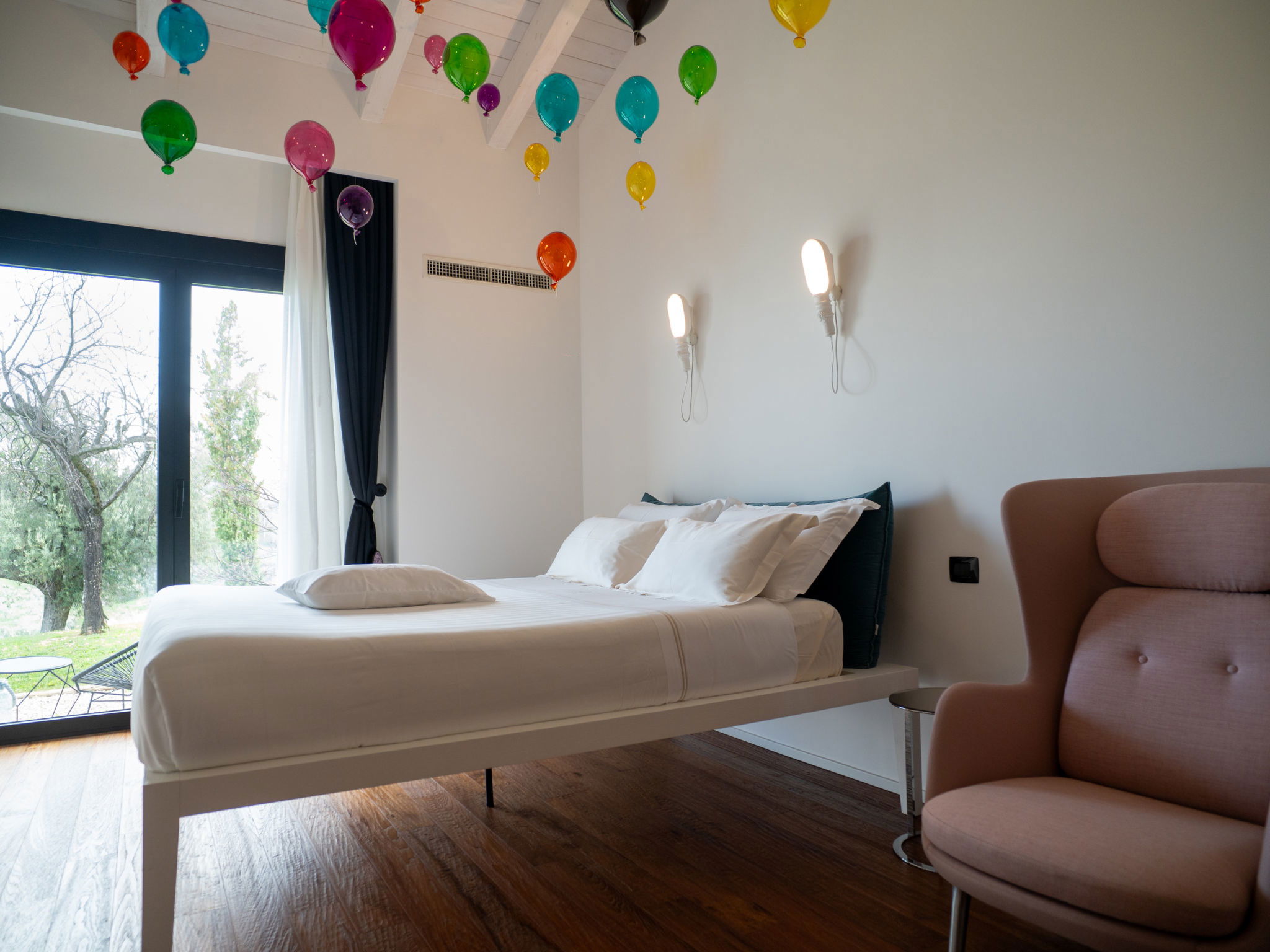 Modern, luxurious villa "Idea 18", 2 storeys, detached, surrounded by meadows, fields and vineyards. In the district of Controguerra 17 km from the centre of San Benedetto, 11 km from the centre of Martinsicuro, on a slope, excellent location: right in the centre but still quiet, 11 km from the sea, 11 km from the beach. Private: park, beautiful garden to relax, swimming pool with privacy (18 x 4 m, depth 140 - 140 cm, seasonal availability: 01.May. - 30.Oct.). Outdoor shower, garden furniture, barbecue, pool maintenance by the owner/gardener. In the house: air conditioning, laundry. Linen change weekly. Towel change weekly. Room cleaning on request (extra). House maid daily on request. Cook on request (extra). Pre-arrival grocery service. Parking (for 5 cars) at the house. Supermarket 1 km, restaurant 1 km, bar, bus stop 300 m, railway station "Porto d'Ascoli" 15 km, sandy beach 11 km. Sports harbour 15 km. Nearby attractions: Riserva Naturale Regionale Sentina 14 km, Fortezza Medievale Acquaviva Picena 16 km, Mummie di Monsampolo 10 km. Please note: car recommended. Groups of teenagers on request only. Cooking courses bookable on request.