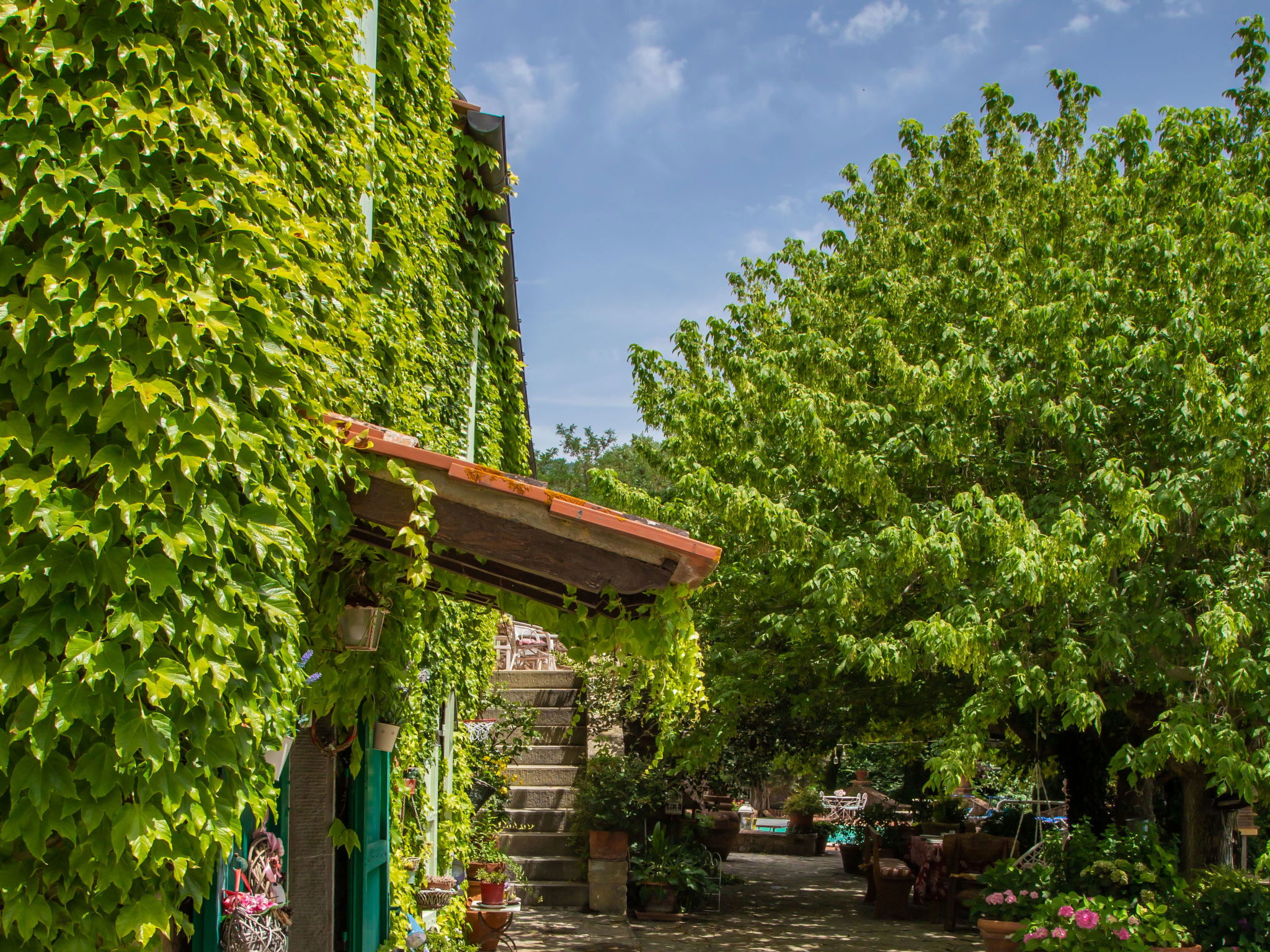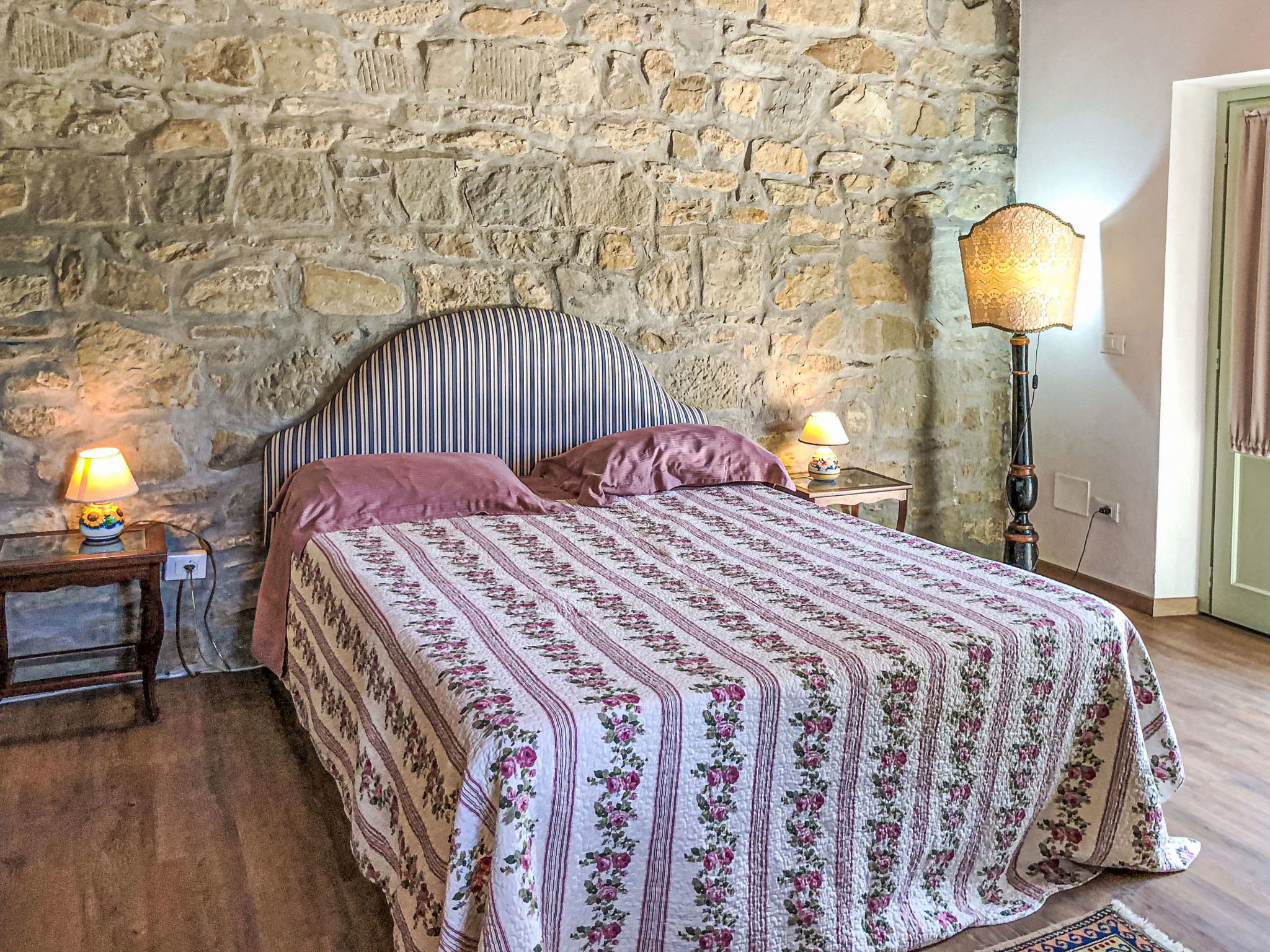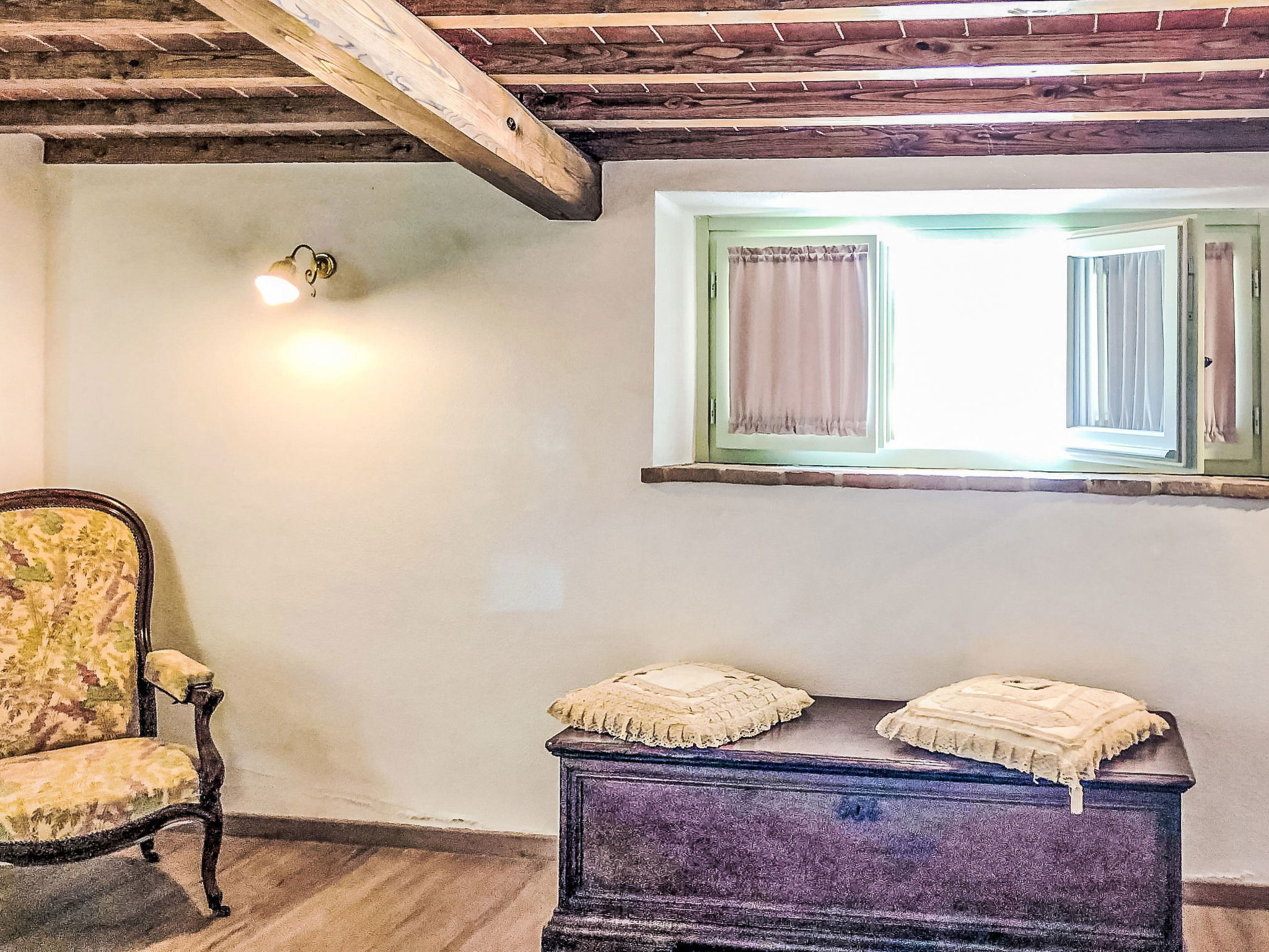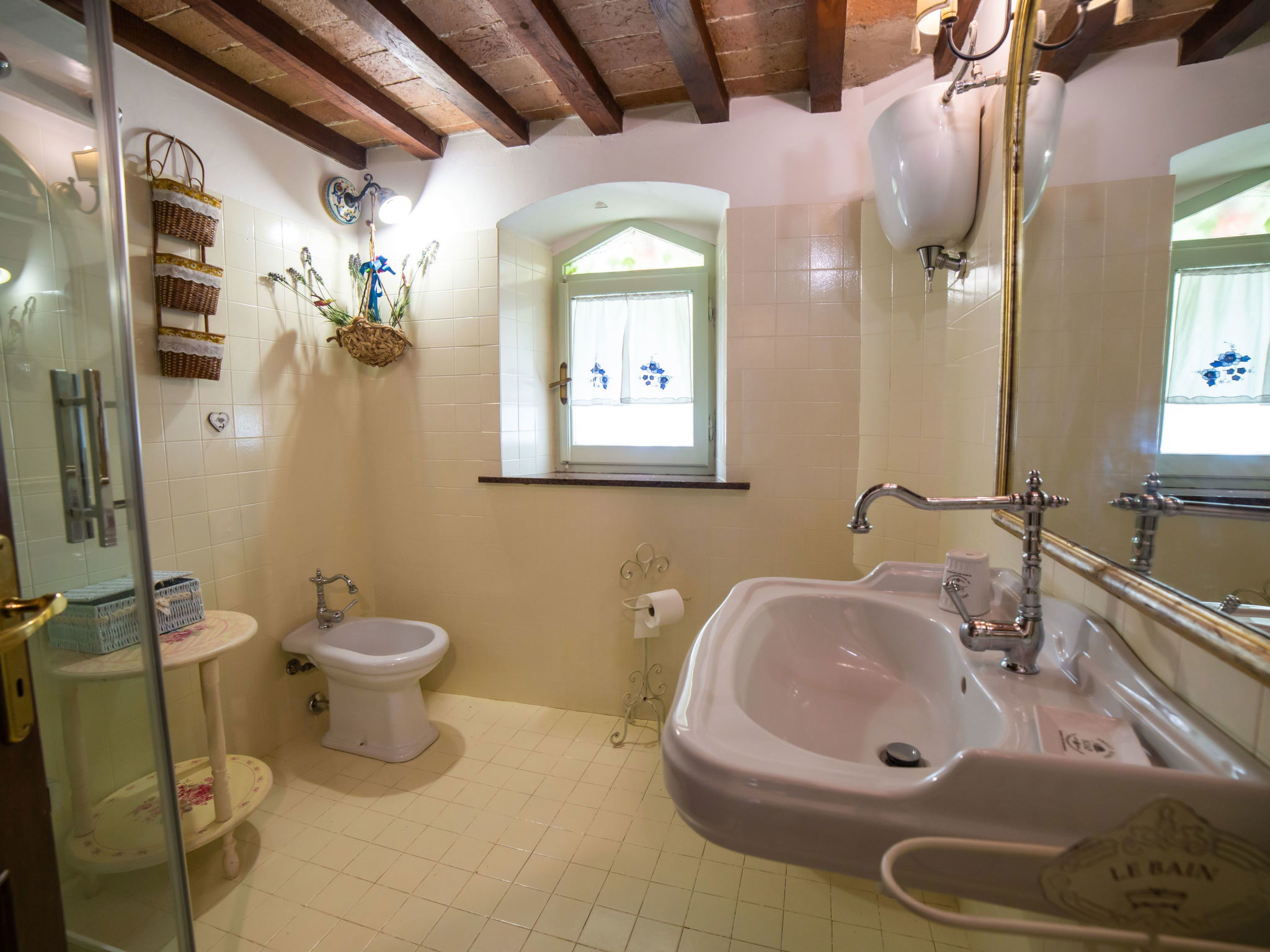 9-room house 328 m2 on 3 levels. Antique and stylish furnishings: open large living/dining room with open-hearth fireplace and TV (flat screen). 1 room with 1 bed. Walk-through room with 1 double bed, shower/bidet/WC and TV (flat screen), air conditioning. Exit to the garden. 1 double bedroom with shower/bidet/WC and TV (flat screen), air conditioning. Exit to the garden. 1 double bedroom with shower/bidet/WC and air conditioning. Large kitchenette (oven, dishwasher, toaster, microwave). Shower/bidet/WC. Upper floor: (spiral staircase), 1 double bedroom with shower/bidet/WC. (exterior staircase) living room with TV (flat screen). 1 double bedroom with TV (flat screen), air conditioning. 1 double bedroom with shower/bidet/WC and TV (flat screen), air conditioning. Kitchen (4 hot plates, mini-oven, oven) with dining table. Bath/bidet/WC. 2nd upper floor: (spiral staircase), 1 room with sloping ceilings with 2 beds and TV (flat screen), air conditioning. View of the countryside. Facilities: washing machine, hair dryer. Internet (WiFi). Maximum 1 pet/ dog allowed. IT051017C2N4ARYSWE