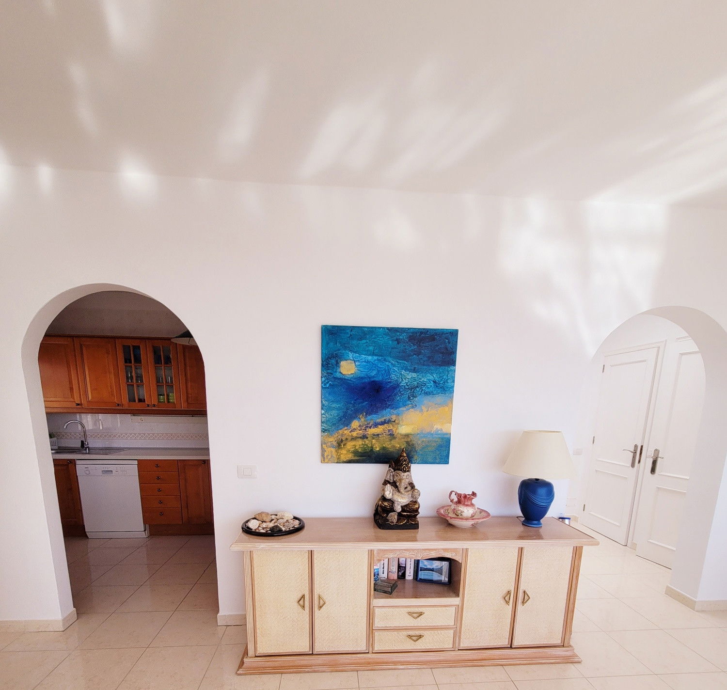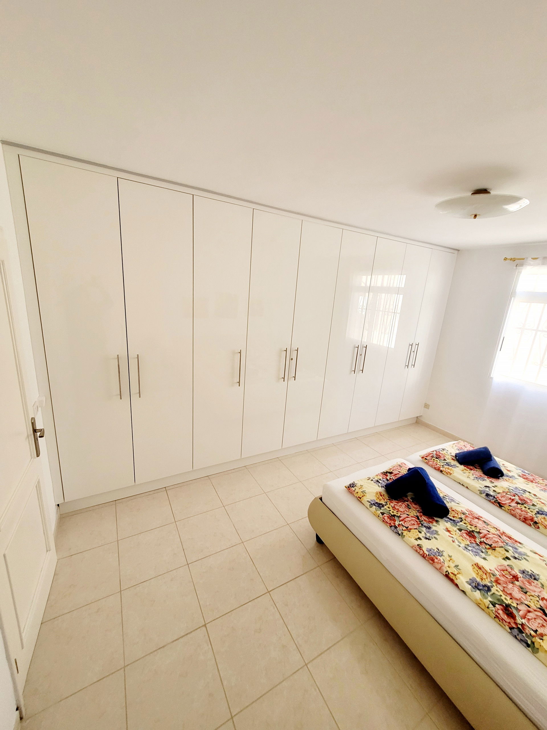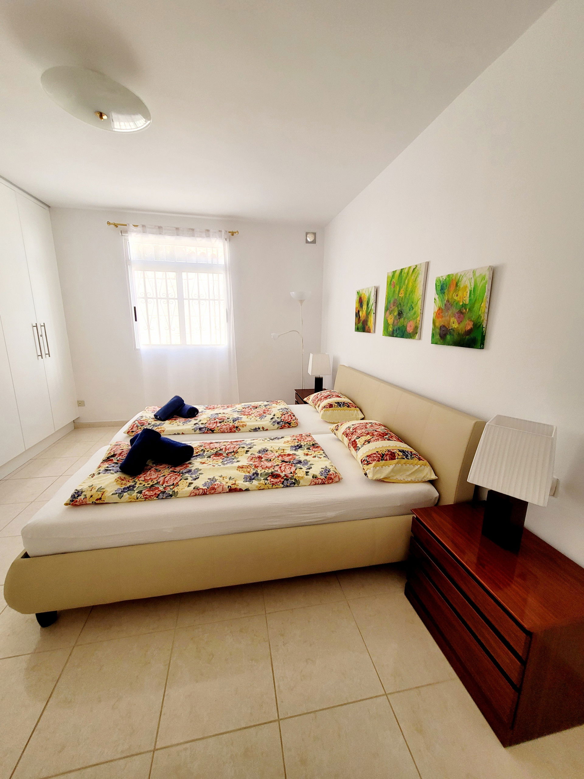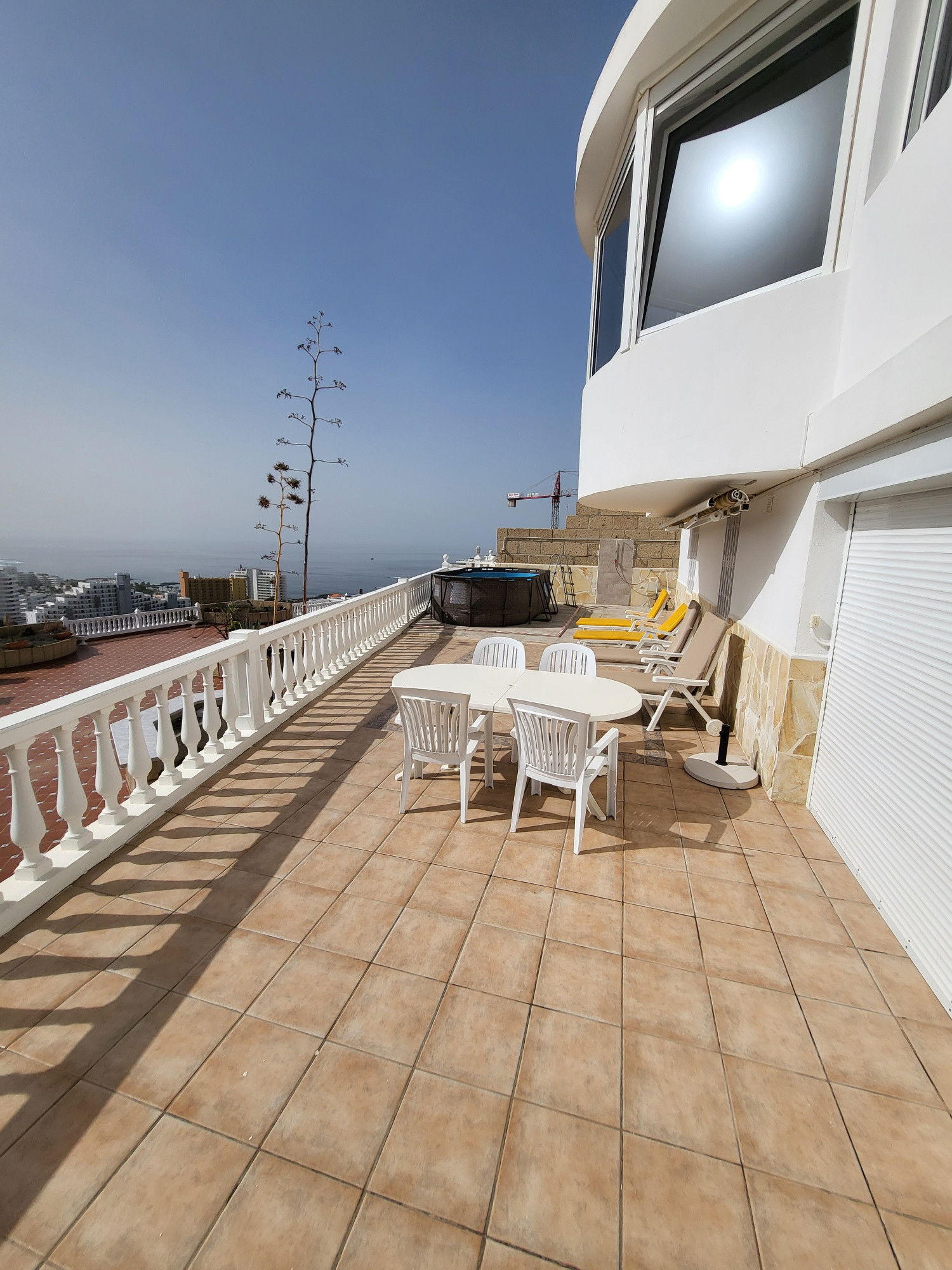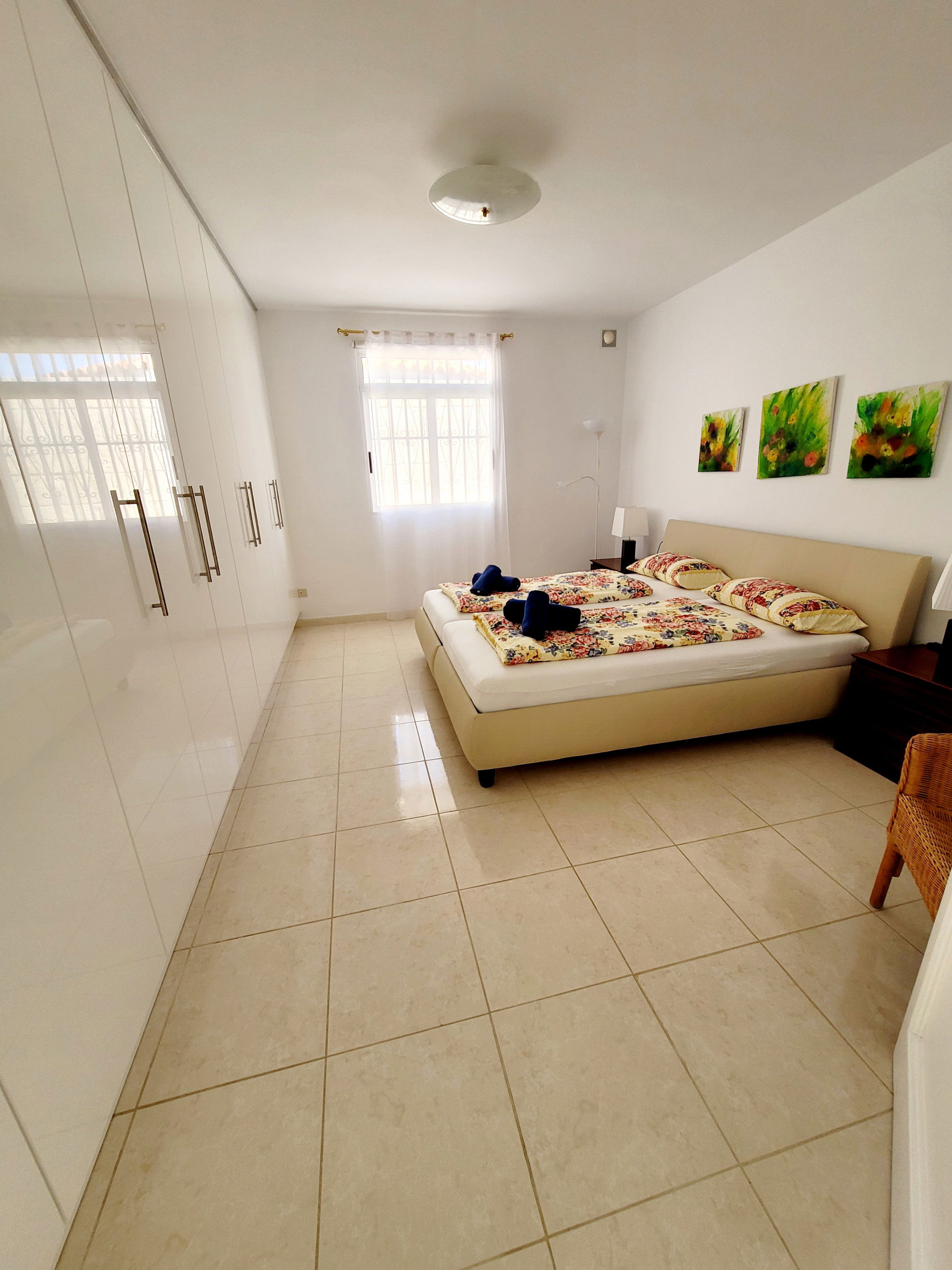 We present a haven of peace in a central location in Costa Adeje, in the south of Tenerife. This elegant and immaculately maintained villa stands out for its exclusive location in the hills of San Eugenio, within the prestigious Residencial El Musgo development. The holiday home has a total of three bedrooms, each with a double bed. Two of these are in the main house, whilst the third bedroom is situated in a separate apartment. This offers greater privacy and features its own outdoor kitchen and bathroom, ideal for guests or family members. The main house also offers two bathrooms, a spacious, fully equipped kitchen and a spacious living area with stunning sea views. The outdoor area is a real gem. Several terraces, a large swimming pool and stunning, unobstructed panoramic views of the Atlantic, the neighbouring islands of La Gomera and El Hierro, as well as the surrounding mountainous landscape, make this villa a special retreat. Despite its peaceful location, you’ll enjoy excellent transport links: just a few minutes’ walk from Siam Park, around 10 minutes from Siam Mall and less than 15 minutes from Tenerife’s most beautiful sandy beaches. This villa combines privacy, comfort and location at the very highest level.