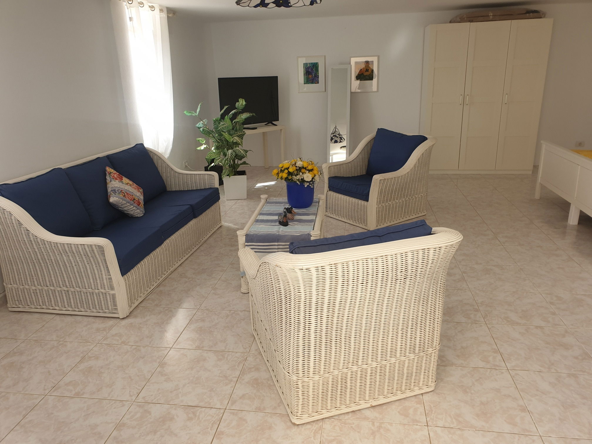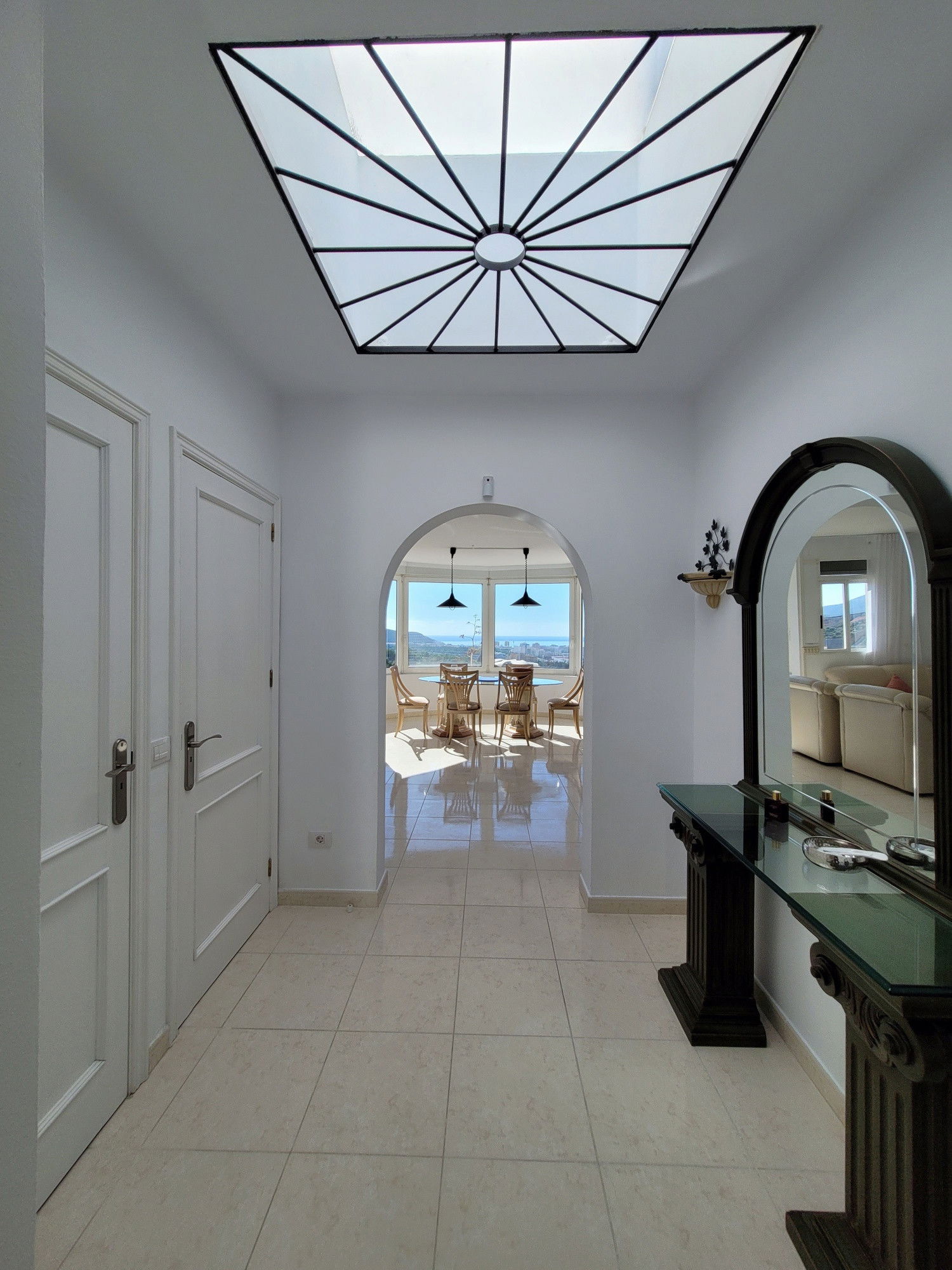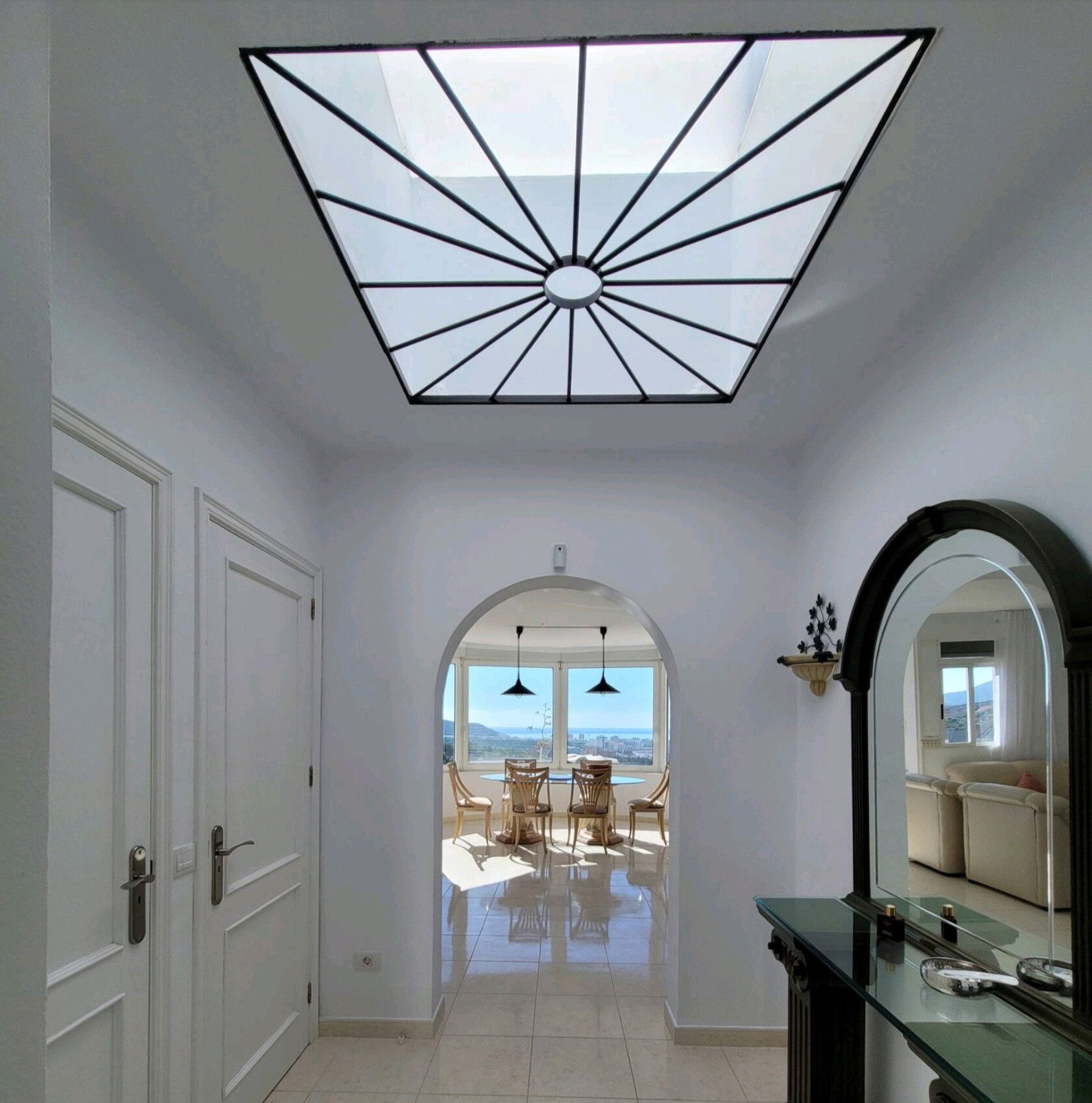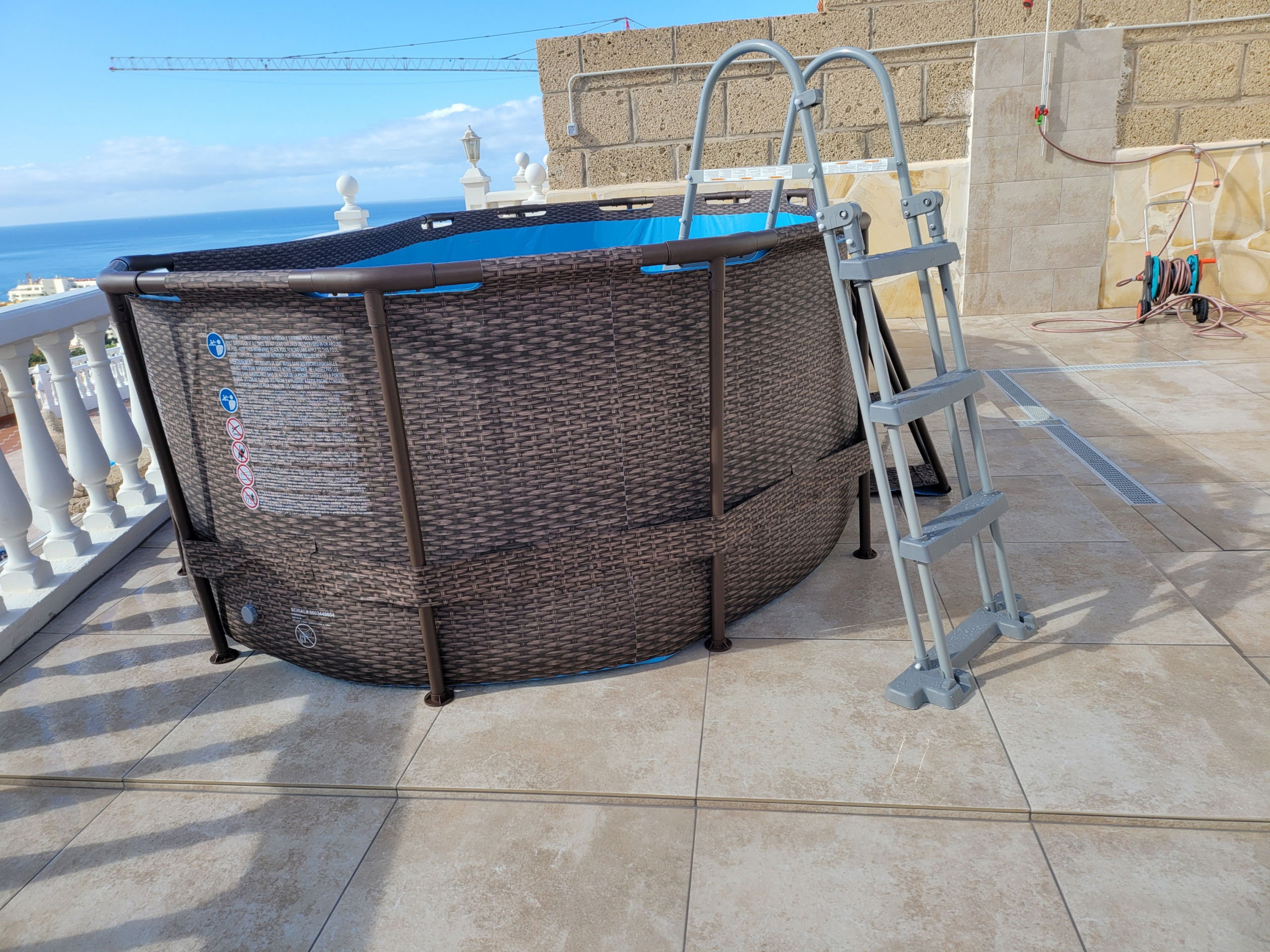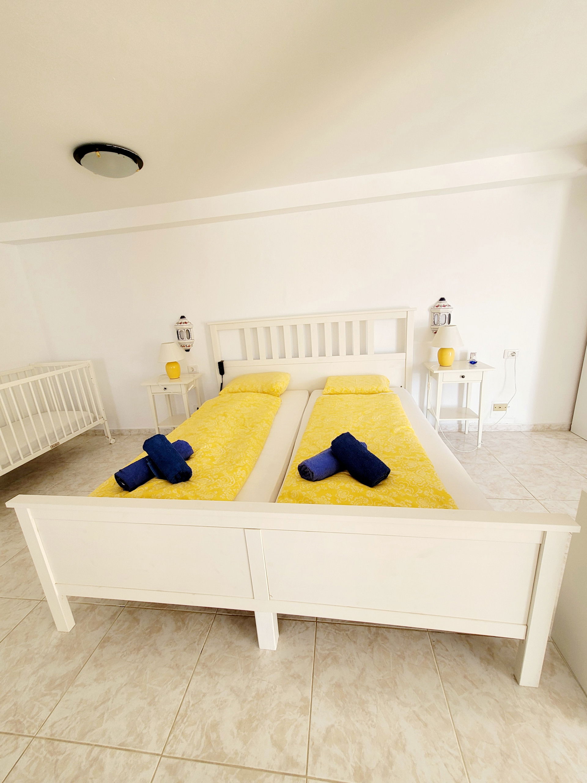 We present a haven of peace in a central location in Costa Adeje, in the south of Tenerife. This elegant and immaculately maintained villa stands out for its exclusive location in the hills of San Eugenio, within the prestigious Residencial El Musgo development. The holiday home has a total of three bedrooms, each with a double bed. Two of these are in the main house, whilst the third bedroom is situated in a separate apartment. This offers greater privacy and features its own outdoor kitchen and bathroom, ideal for guests or family members. The main house also offers two bathrooms, a spacious, fully equipped kitchen and a spacious living area with stunning sea views. The outdoor area is a real gem. Several terraces, a large swimming pool and stunning, unobstructed panoramic views of the Atlantic, the neighbouring islands of La Gomera and El Hierro, as well as the surrounding mountainous landscape, make this villa a special retreat. Despite its peaceful location, you’ll enjoy excellent transport links: just a few minutes’ walk from Siam Park, around 10 minutes from Siam Mall and less than 15 minutes from Tenerife’s most beautiful sandy beaches. This villa combines privacy, comfort and location at the very highest level.