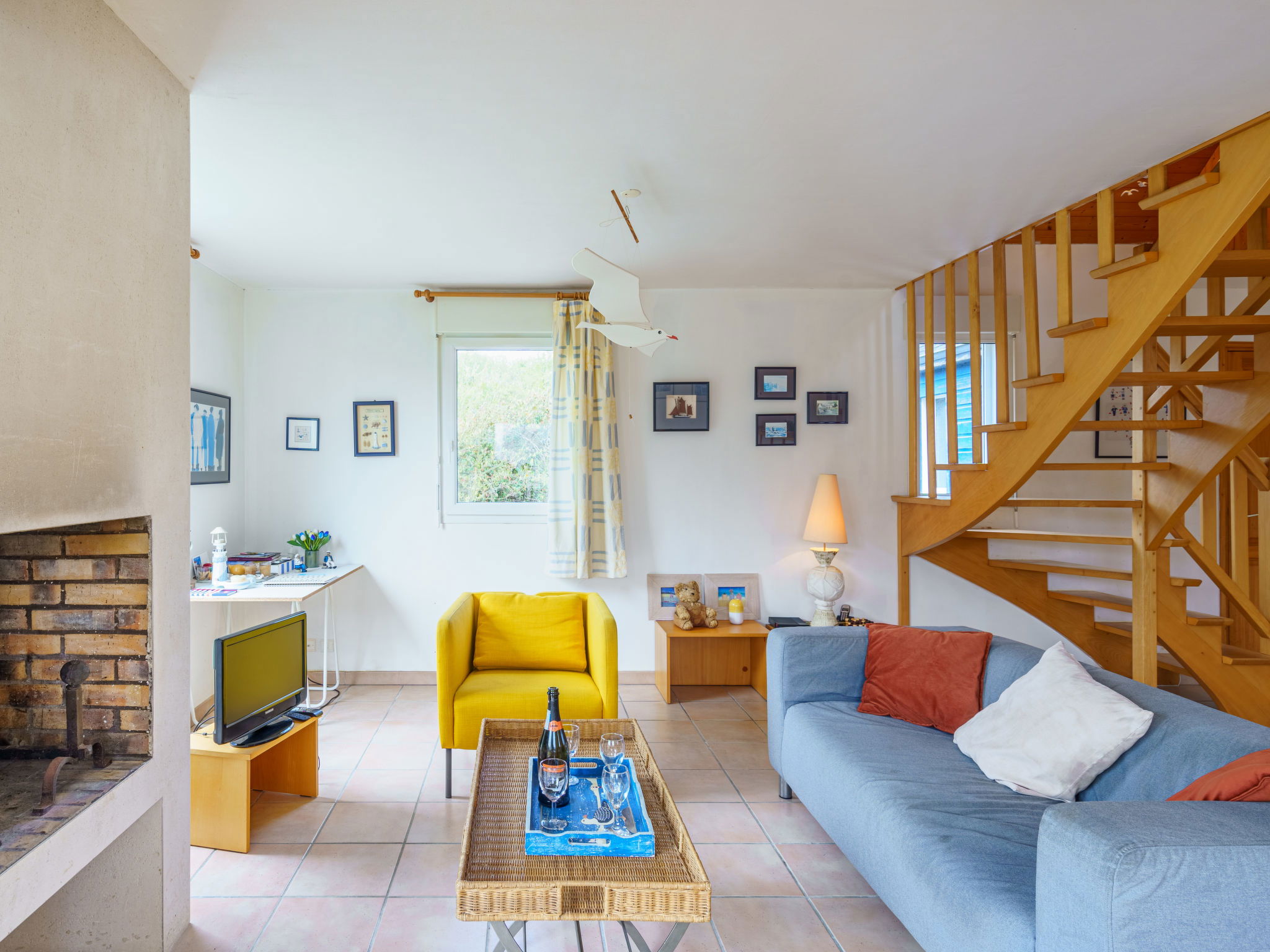 "maison bleue", 3-room house 110 m2 on 2 levels. Beautiful furnishings: living/dining room with open-hearth fireplace (only for decoration), dining table and TV (flat screen). Exit to the terrace. 1 room with 1 french bed (140 cm, length 190 cm). Open kitchen (oven, 4 gas rings, toaster, kettle, microwave, freezer, electric coffee machine, Capsules for coffee machine (Nespresso) extra). Bath/WC. Upper floor: 1 room with 1 bed (90 cm, length 190 cm), 1 french bed (140 cm, length 190 cm). Shower, sep. WC. Electric heating. Terrace 12 m2. Terrace furniture, barbecue, deck chairs (3). Facilities: washing machine, children's high chair, baby cot for up to 2 year olds, hair dryer. Internet (WiFi, free). Please note: suitable for families. Non-smoking house. Maximum 1 pet/ dog allowed. Smoke alarm.