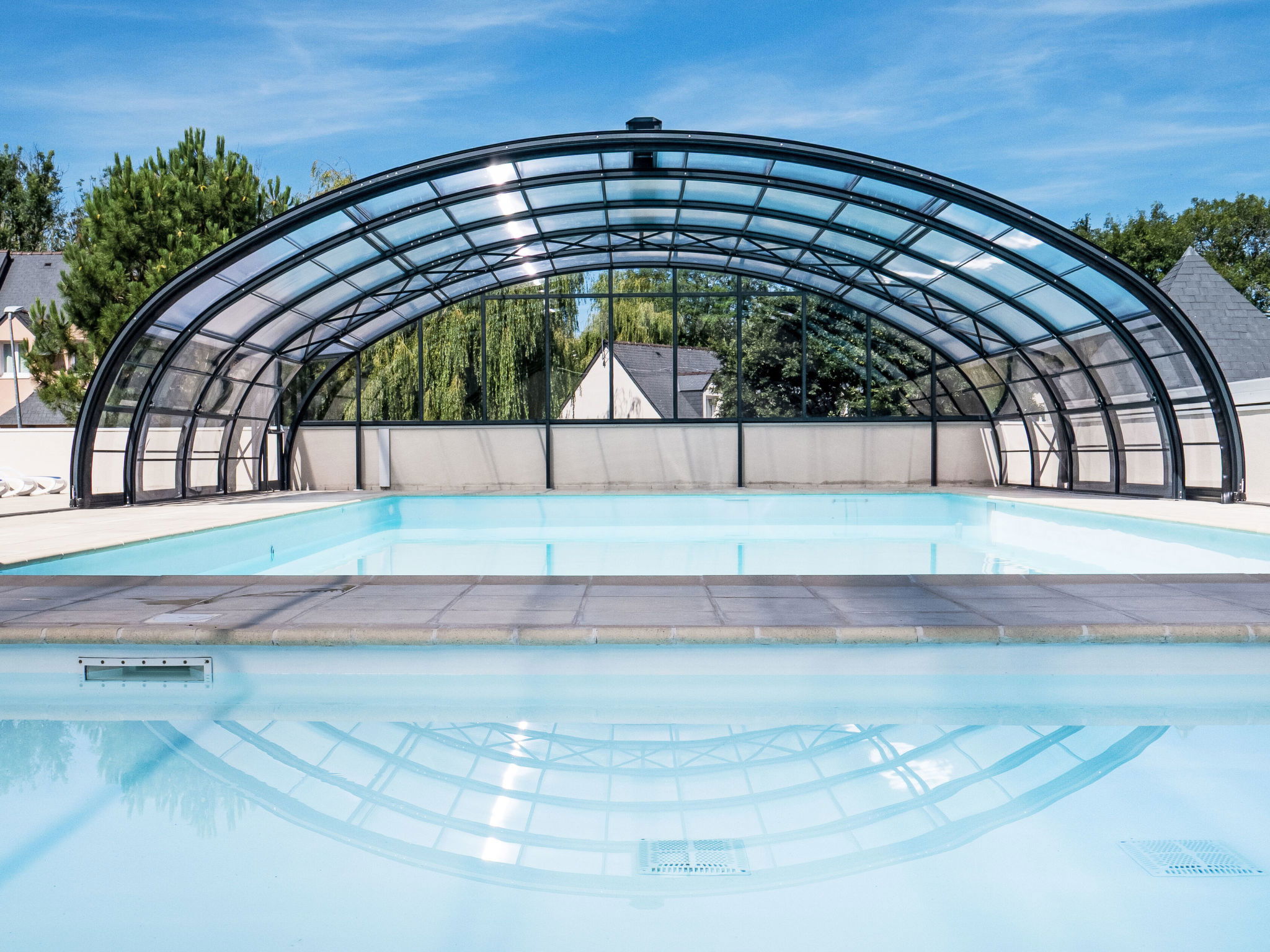 Beautiful resort "Horizon Morgat". 95 houses in the resort. 800 m from the centre of Morgat, 3.8 km from the centre of Crozon, 800 m from the sea. For shared use: property 25'000 m2 (fenced) with trees, swimming pool heated (8 x 14 m, seasonal availability: 01.Jan. - 31.Dec.). Children's pool, table tennis, boccia, terrace, children's playground. In the complex: reception, fitness room, billiard table, table football, washing machine, tumble dryer (for shared use, extra). Footpath to the house. Parking on the premises. Shop 500 m, sandy beach 800 m. Please note: car-free holiday complex. The photograph shows a typical example. The holiday properties may differ in living space, floorplan, equipment and furnishing.