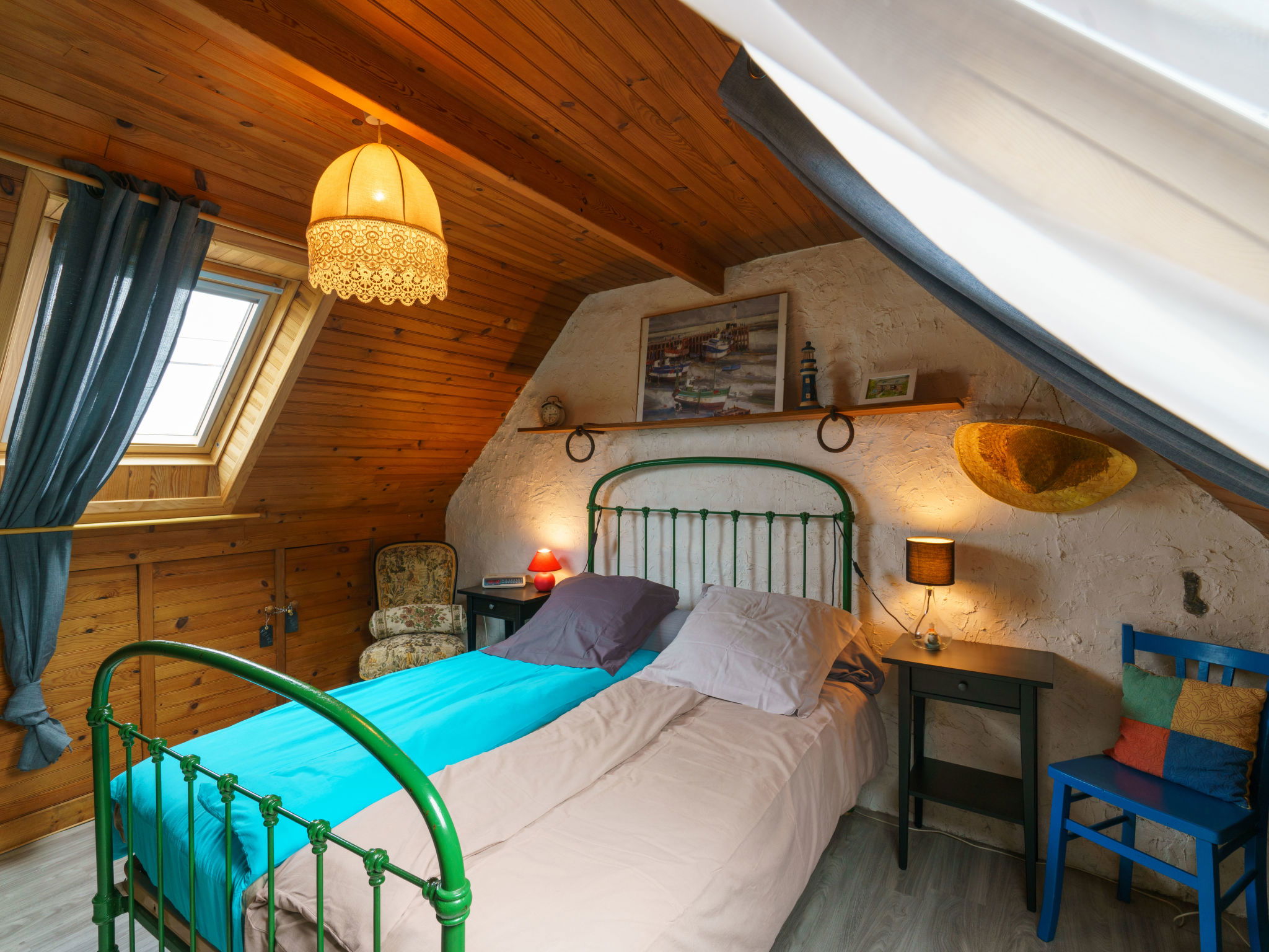 Single-family house "Ti Maen". In the hamlet Kerabars, outside the resort, 5 km from the centre of Crozon, in a quiet position, 400 m from the sea, 700 m from the beach, in the countryside. Private: garden 200 m2 (fenced) with lawn and flowers, public parking 50 m. Shop 5 km, grocery 5 km, supermarket 5 km, restaurant 5 km, bus stop 5 km, sandy beach 700 m, outdoor swimming pool 7 km. Sports harbour 5 km, surf school 2.3 km. Nearby attractions: Quimper 70 km, plage naturistes Lostmarc'h 1.5 km, le palue 2 km. Please note: car recommended.