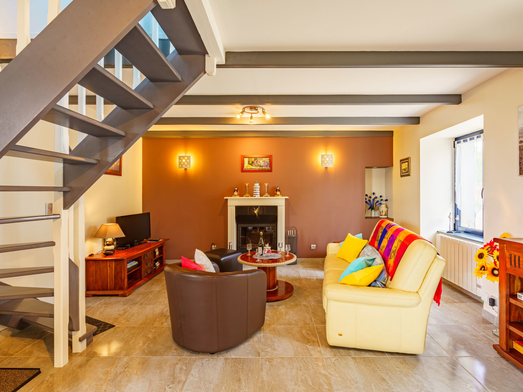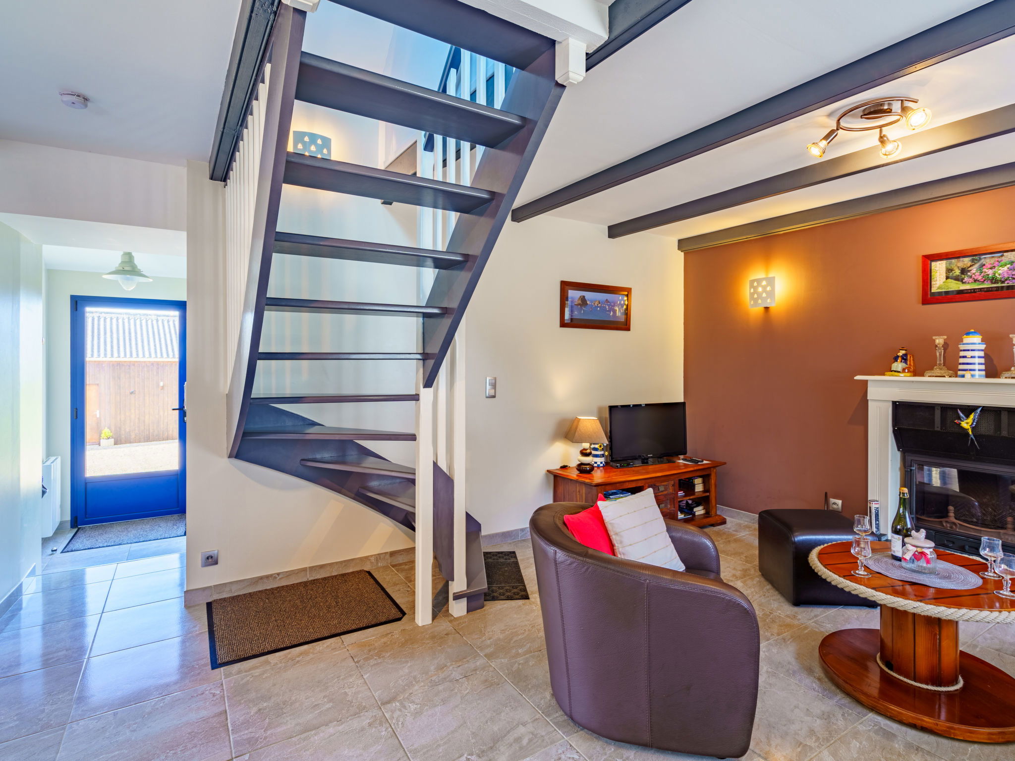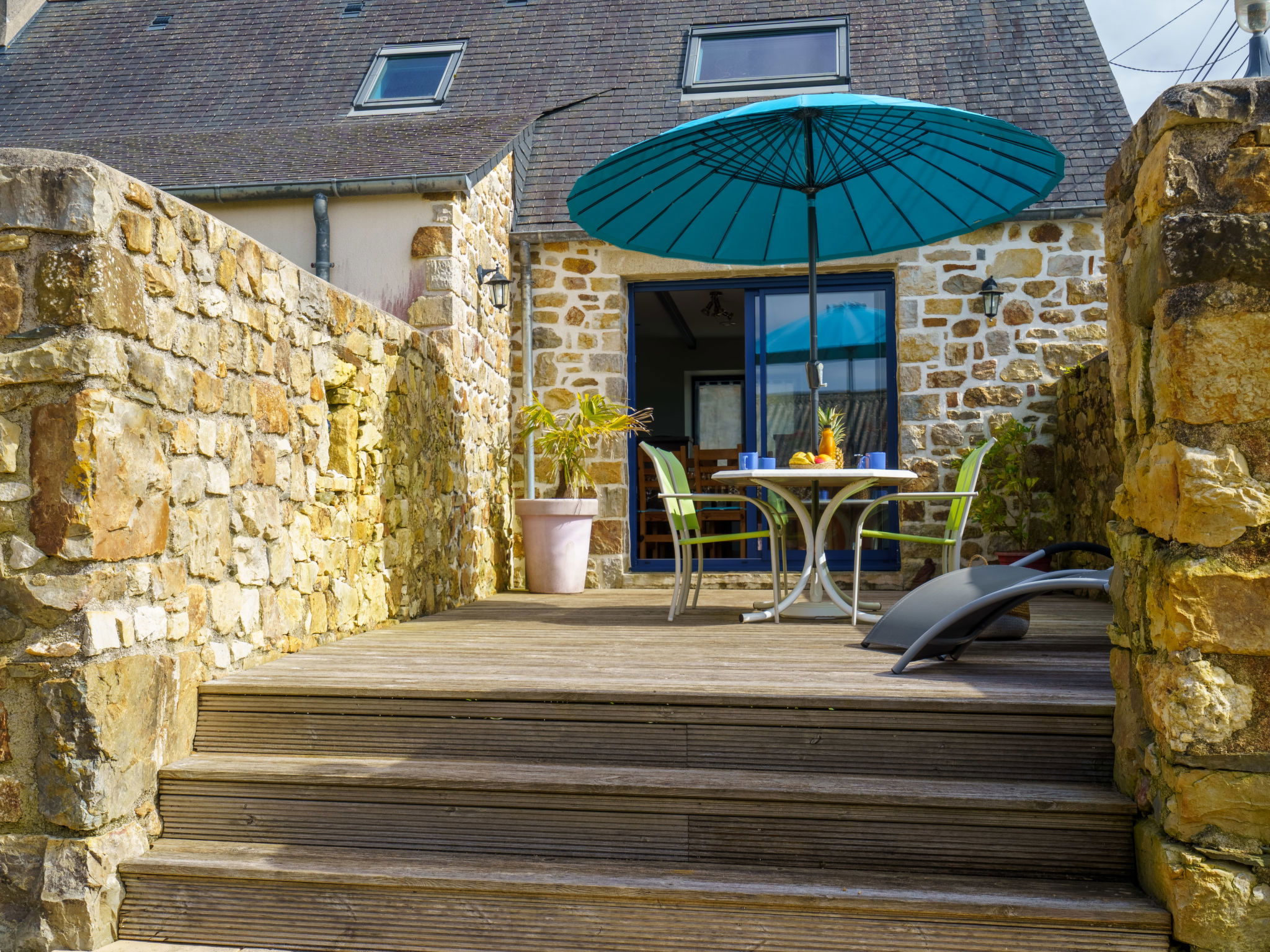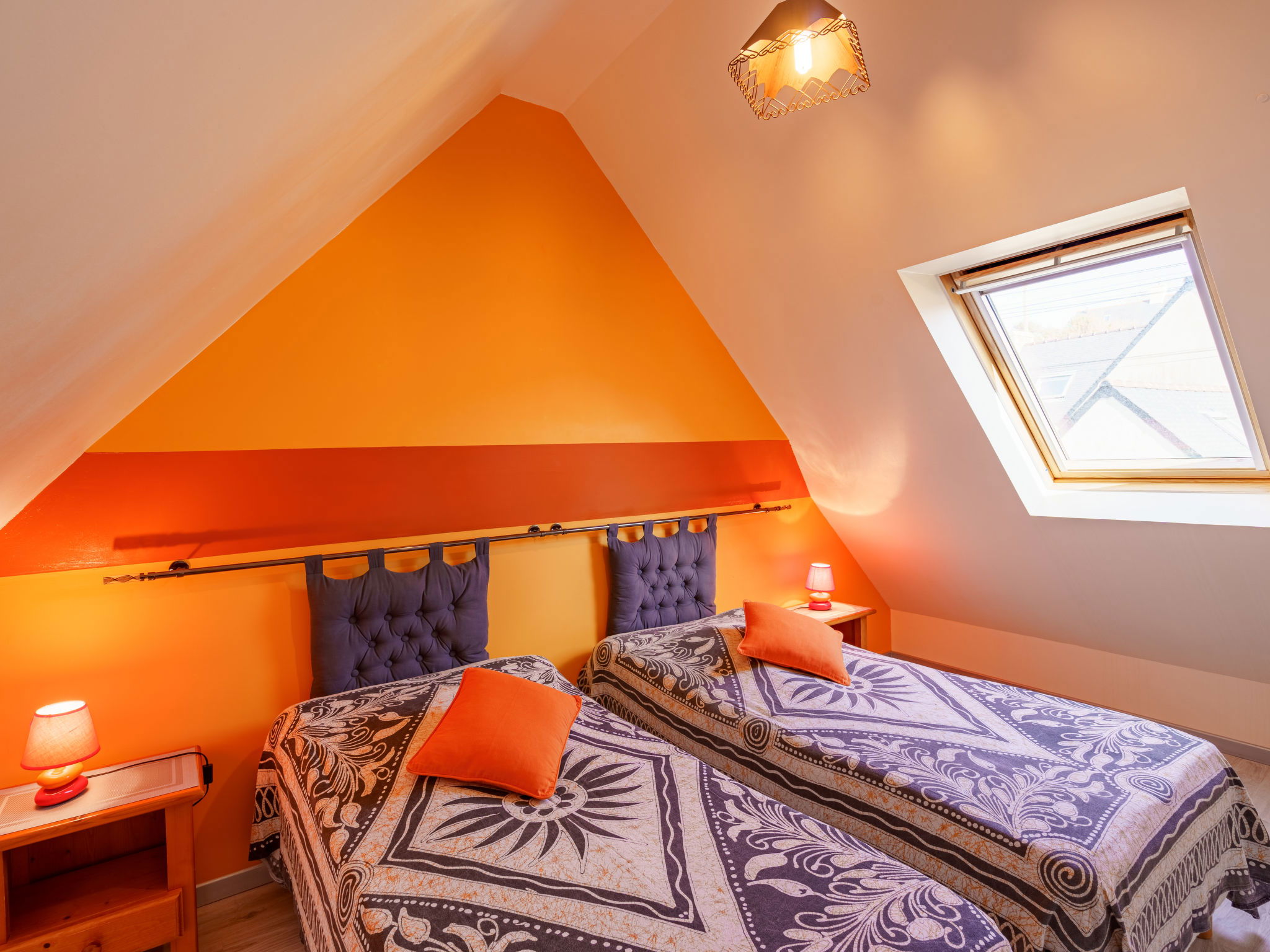 "Du Bout du Monde", 3-room house 80 m2 on 2 levels. Beautiful and tasteful furnishings: living/dining room with open-hearth fireplace, dining table, satellite TV and hi-fi system. Exit to the terrace. Open kitchen (oven, dishwasher, 4 ceramic glass hob hotplates, toaster, kettle, microwave, electric coffee machine). Shower, sep. WC, double hand-basin. Upper floor: 1 room with sloping ceilings with 1 french bed (140 cm, length 190 cm). 1 room with sloping ceilings with 2 beds (90 cm, length 190 cm). Sep. WC. Electric heating. Parquet floors. Terrace. Terrace furniture, barbecue (portable), deck chairs (4). Facilities: washing machine, iron, children's high chair, baby cot. Internet (WiFi, free). Please note: non-smoking house. Maximum 1 pet/ dog allowed. Smoke alarm.