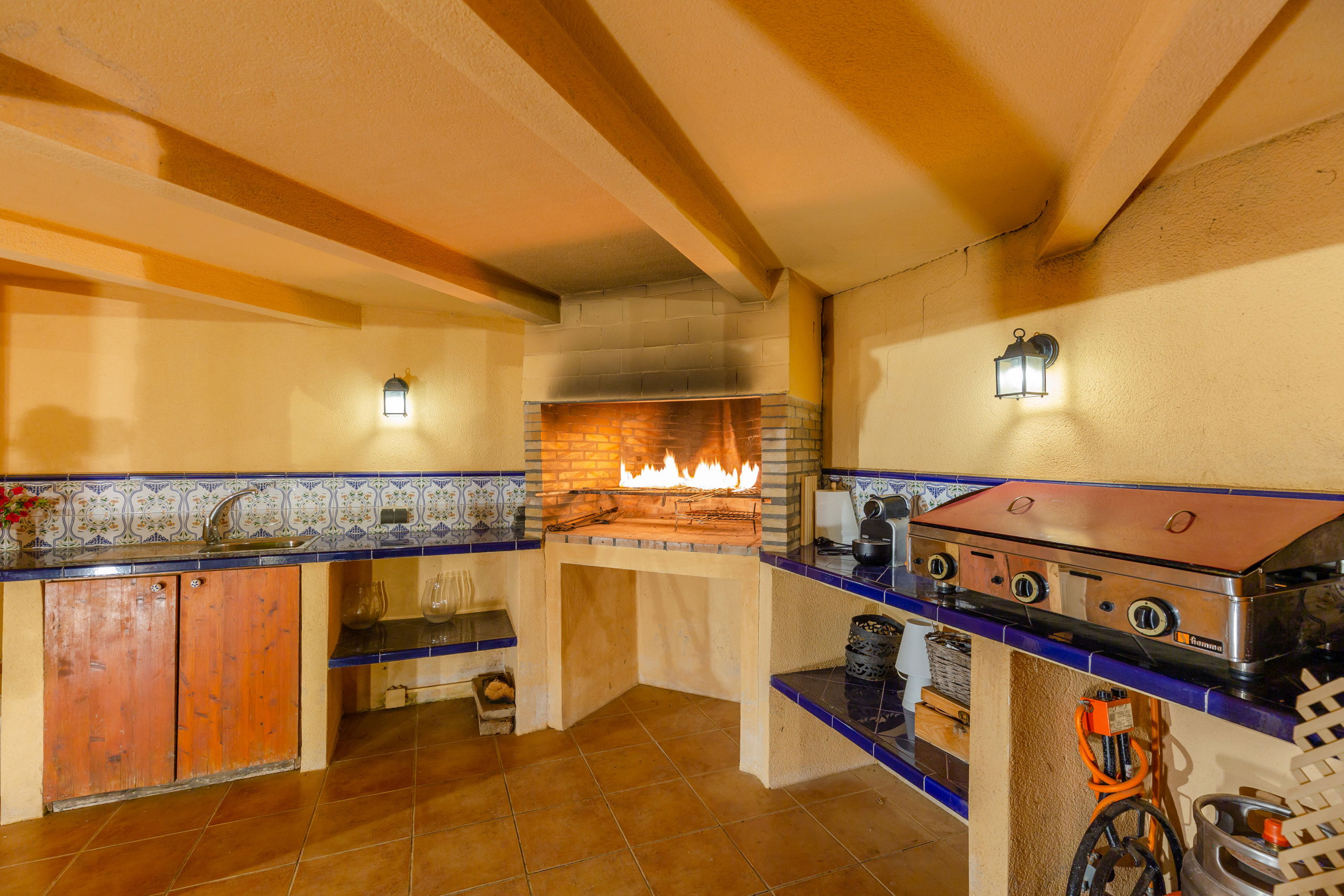 Accommodation of 150 m². Spacious areas throughout the villa for large groups, large kitchen-diner for 6 people, barbecue, with fireplace and wood-fired oven, and table for 6 people at the barbecue ideal for large groups, living room with wood-burning fireplace.