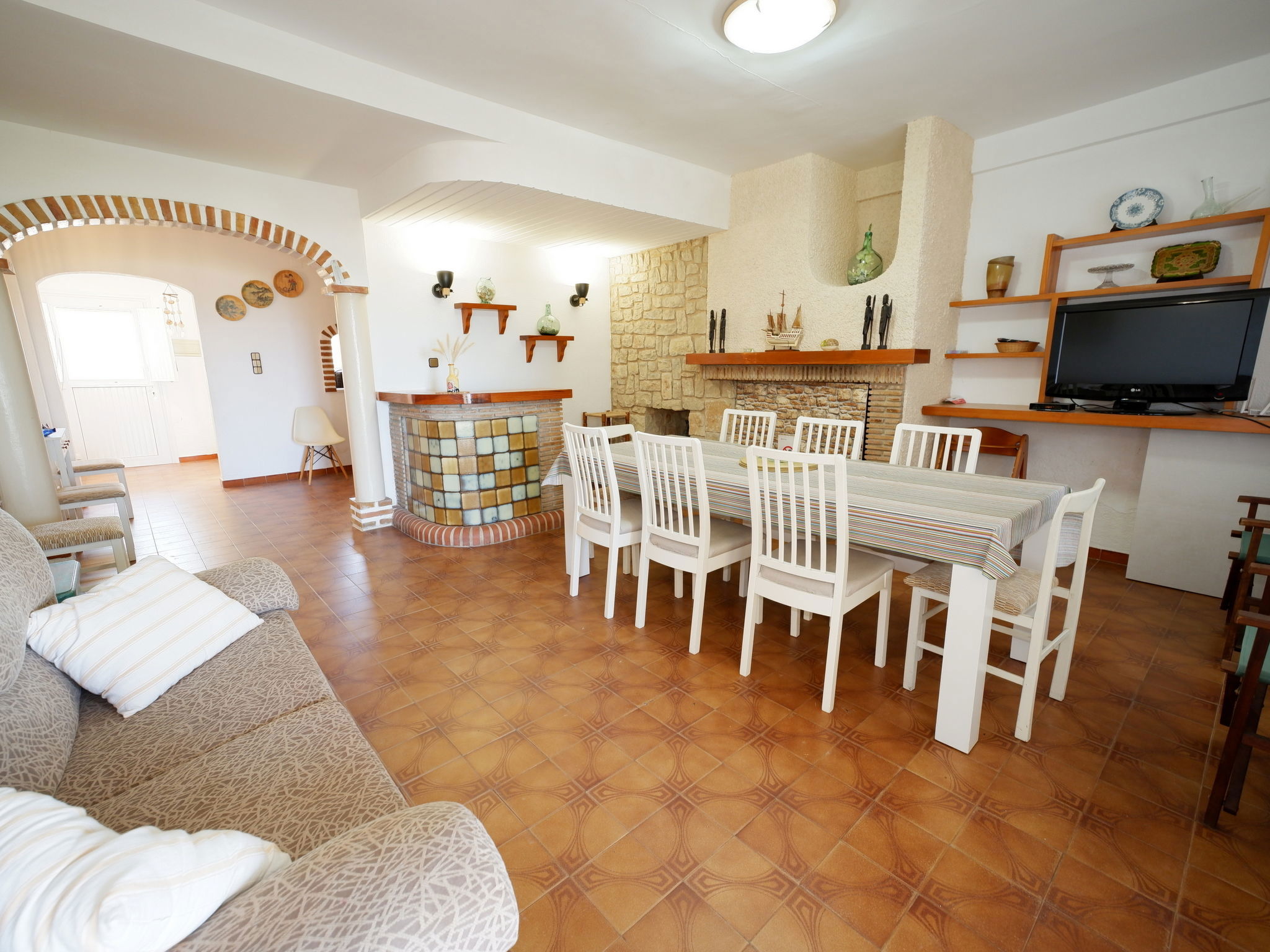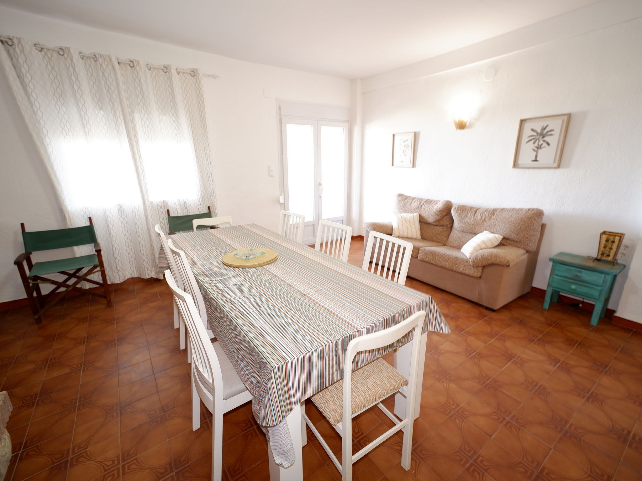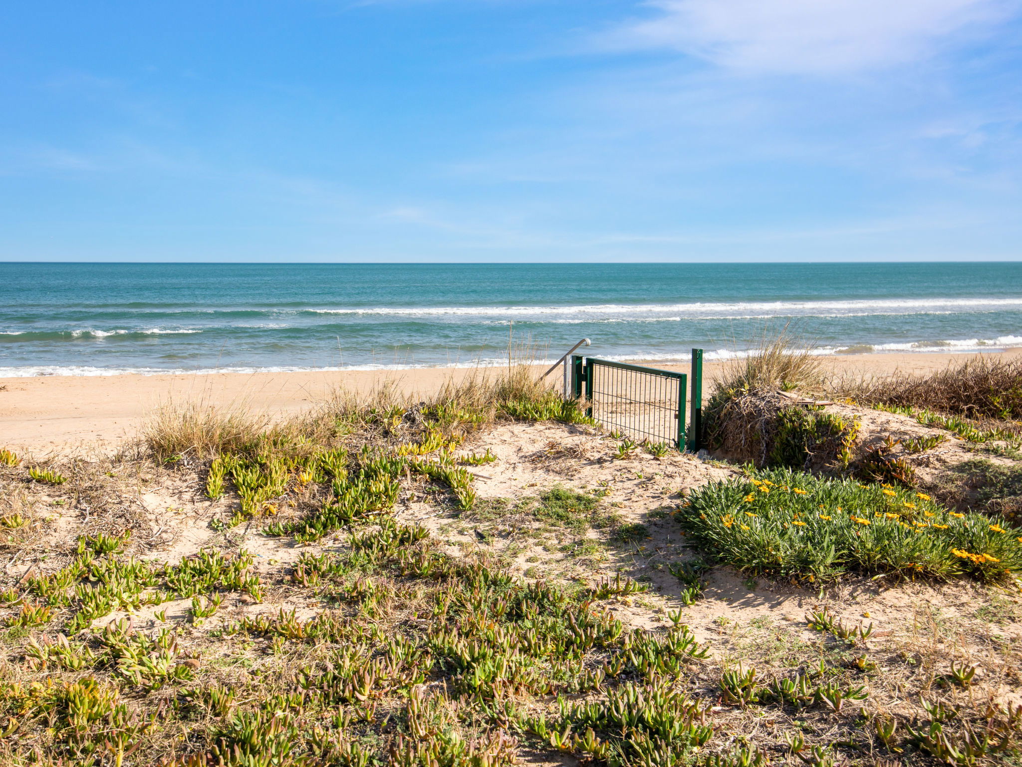 "Casita Mar", 5-room terraced house 160 m2 on 2 levels. Simple furnishings: living/dining room with satellite TV, digital TV and electric heater. Exit to the terrace, pergola. 1 room with 1 french bed (150 cm, length 190 cm), fan. Kitchen (oven, 4 ceramic glass hob hotplates, toaster, kettle, microwave, freezer, electric coffee machine). Shower/WC. Electric heating. Upper floor: 1 room with 1 french bed (135 cm, length 190 cm), electric heater and fan. Exit to the terrace. 1 room with 2 beds (90 cm, length 190 cm), electric heater and fan. Exit to the terrace. 1 room with 1 french bed (150 cm, length 190 cm), electric heater and fan. Bath/bidet/WC. Patio. Terrace furniture. Marvellous view of the sea. Facilities: washing machine, iron, children's high chair, baby cot, hair dryer. Internet (WiFi, free). Parking (3 cars). Maximum 1 pet/ dog allowed. Direct access to the beach through the dunes (protected natural area - see pictures). VT-452960-A // Reg. Nr.: ESFCTU00000304500025865200000000000000000VT-452960-A9