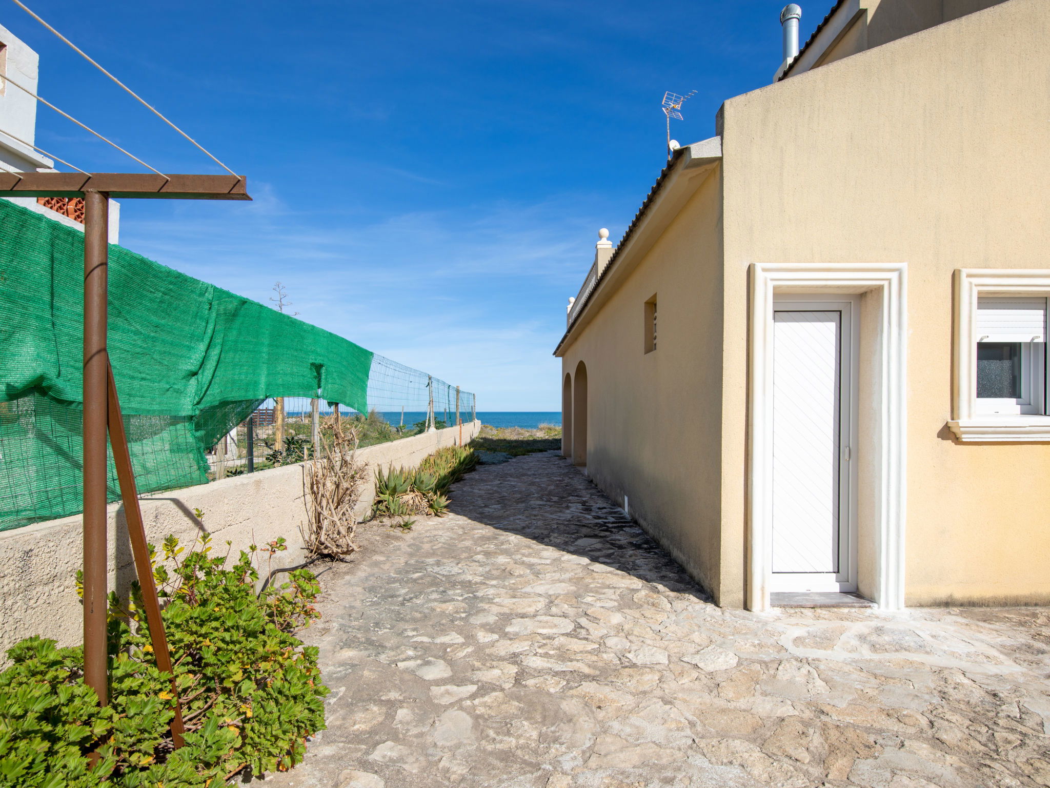 Very old house "Casita Mar", 2 storeys, semi-detached, built in 1936. In the resort Denia(playa Santa Ana), in a quiet, sunny position, 10 m from the sea, 5 m from the beach, direct access to the beach. Private: natural state property. Terrace, barbecue, barbecue house, parking (for 2 cars) on the premises. Shop 500 m, supermarket 3 km, restaurant 300 m, café 400 m, bus stop 500 m, railway station 1.7 km, ferry 1.9 km, sandy beach "Playa de Santa Anna" 5 m. Surf school, sailing school 600 m. Nearby attractions: Dunas de Santa Anna - delante de la casa 5 m, zona de dunas protegida por ley, No es un jardin que se pueda hacer, mantenimiento, plantas autóctonas. Groups of teenagers on request only.