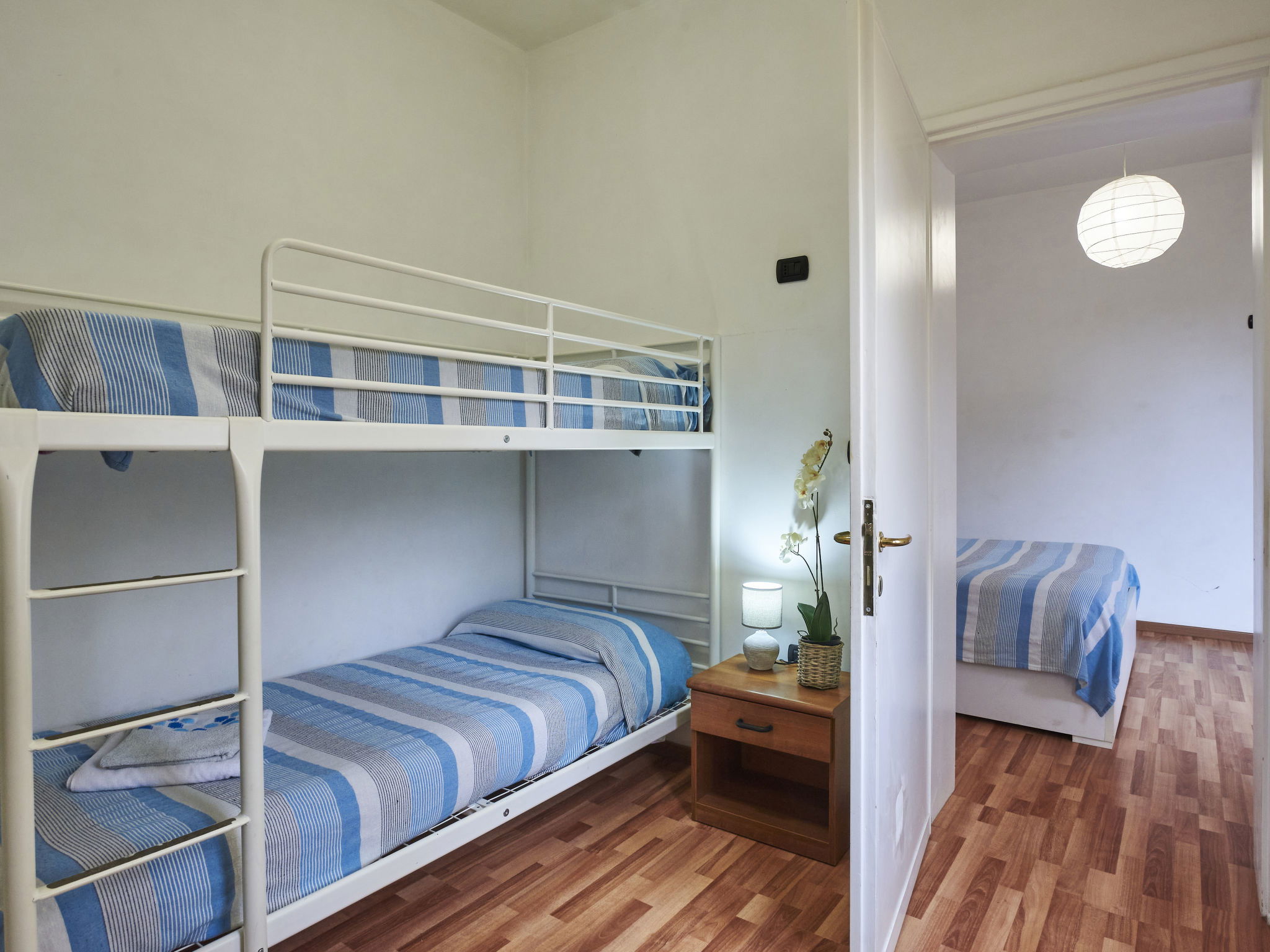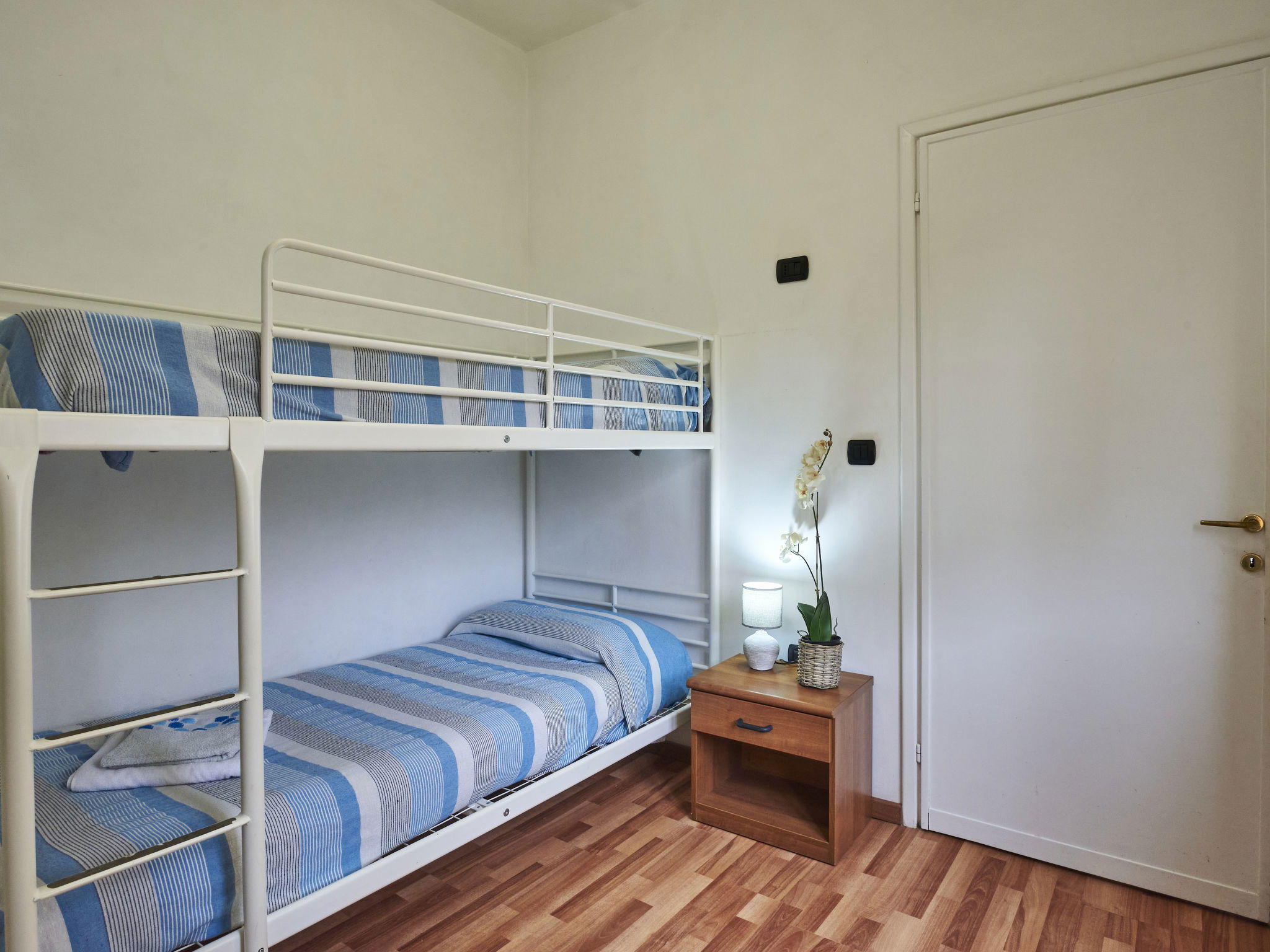 8-room house 200 m2 on 2 levels. Comfortable and cosy furnishings: living room with satellite TV. 1 room with 1 french bed (160 cm). 1 room with 1 x 2 bunk beds. Interconnecting room with 1 french bed (160 cm). 1 room with 1 x 2 bunk beds, shower/WC. Open kitchen (oven, dishwasher, 4 gas rings, toaster, kettle, microwave, freezer, electric coffee machine) with open-hearth fireplace (only for decoration), dining table. Exit to the terrace. Shower/WC. Upper floor: (exterior staircase) living room with sloping ceilings with dining table and satellite TV. Exit to the terrace. 1 room with sloping ceilings with 1 french bed (160 cm). 1 room with sloping ceilings with 1 bed and 1 pull-out bed. Open kitchen (oven, dishwasher, 4 gas rings, freezer, electric coffee machine). Shower/WC. Gas heating. Parquet floors. Small terrace 12 m2 partly roofed, large terrace 30 m2. Terrace furniture, deck chairs (5), box-room. Facilities: washing machine, iron, children's high chair, baby cot for up to 2 year olds. Internet (WiFi, extra). Please note: non-smokers only. Maximum 2 pets/ dogs allowed. No internal connecting door between the floors. IT097030C2KRJUCCQT