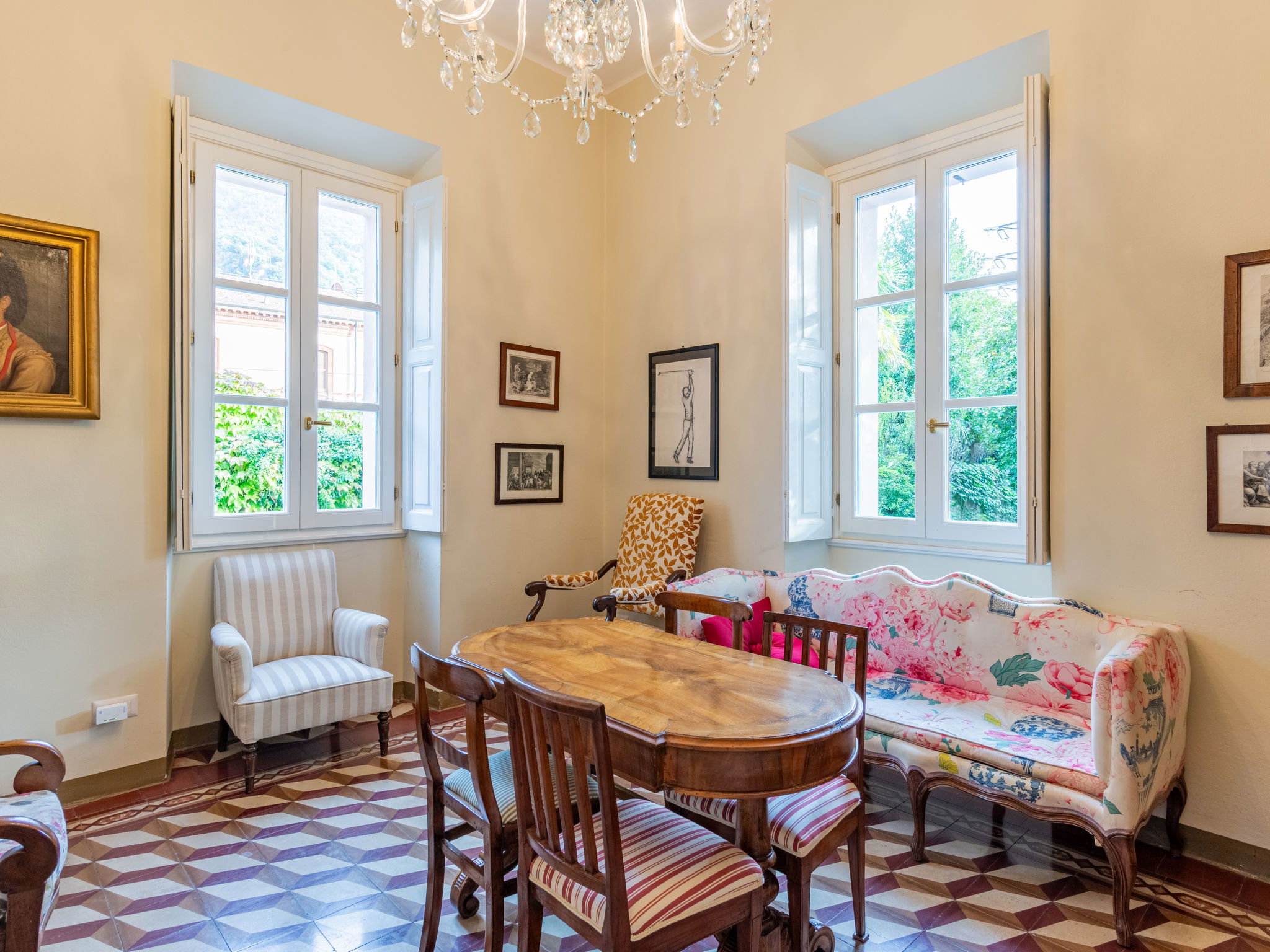 Comfortable villa "Eugenia", 3 storeys, from the 19th century, renovated in 2015. In the resort Dervio, 9 km from the centre of Varenna, 30 km from the centre of Lecco, in a central position, 700 m from the lake, in a cul-de-sac. Private: park 2'500 m2 (fenced), natural garden, meadow, swimming pool (4 x 10 m, depth 140 cm, seasonal availability: 15.May. - 15.Oct.). Pool maintenance by the owner/gardener. Linen change (suppl. charge extra). Room cleaning on request (extra). Parking (for 5 cars). Shop 150 m, supermarket 110 m, restaurant 240 m, bar, bakery 100 m, bus stop 270 m, railway station 450 m, ferry 700 m, pebble beach "Dervio" 600 m. Marina 1 km, surf school 600 m, sailing school 800 m, children's playground 600 m. Nearby attractions: Torre di Orezia 1 km, Corenno Plinio 3 km, Orrido di Bellano 4 km, Menaggio 13 km. Well-known ski regions can easily be reached: Madesimo 57 km, Chiesa in Valmalenco 65 km, St. Moritz 80 km. Well-known lakes can easily be reached: Lago di Mezzola. Hiking paths: Monti di Dervio e Muggiasca, Sentiero del Viandante, Sentieri Valvarrone. The owner does not accept any youth groups. Please note: railway line 50 m from the property.