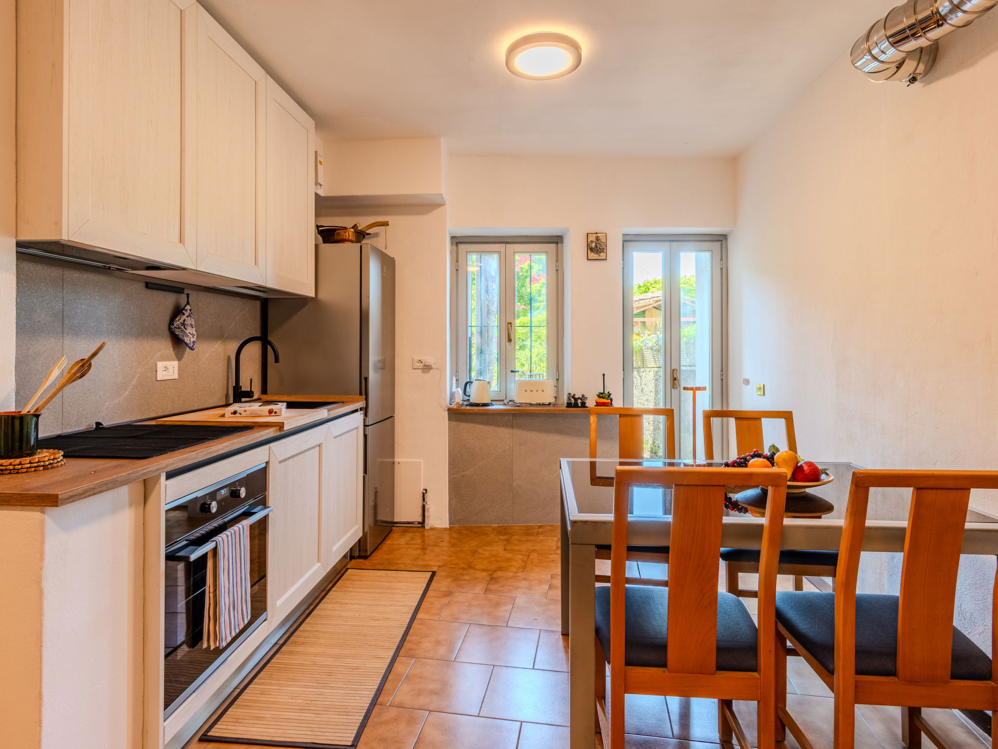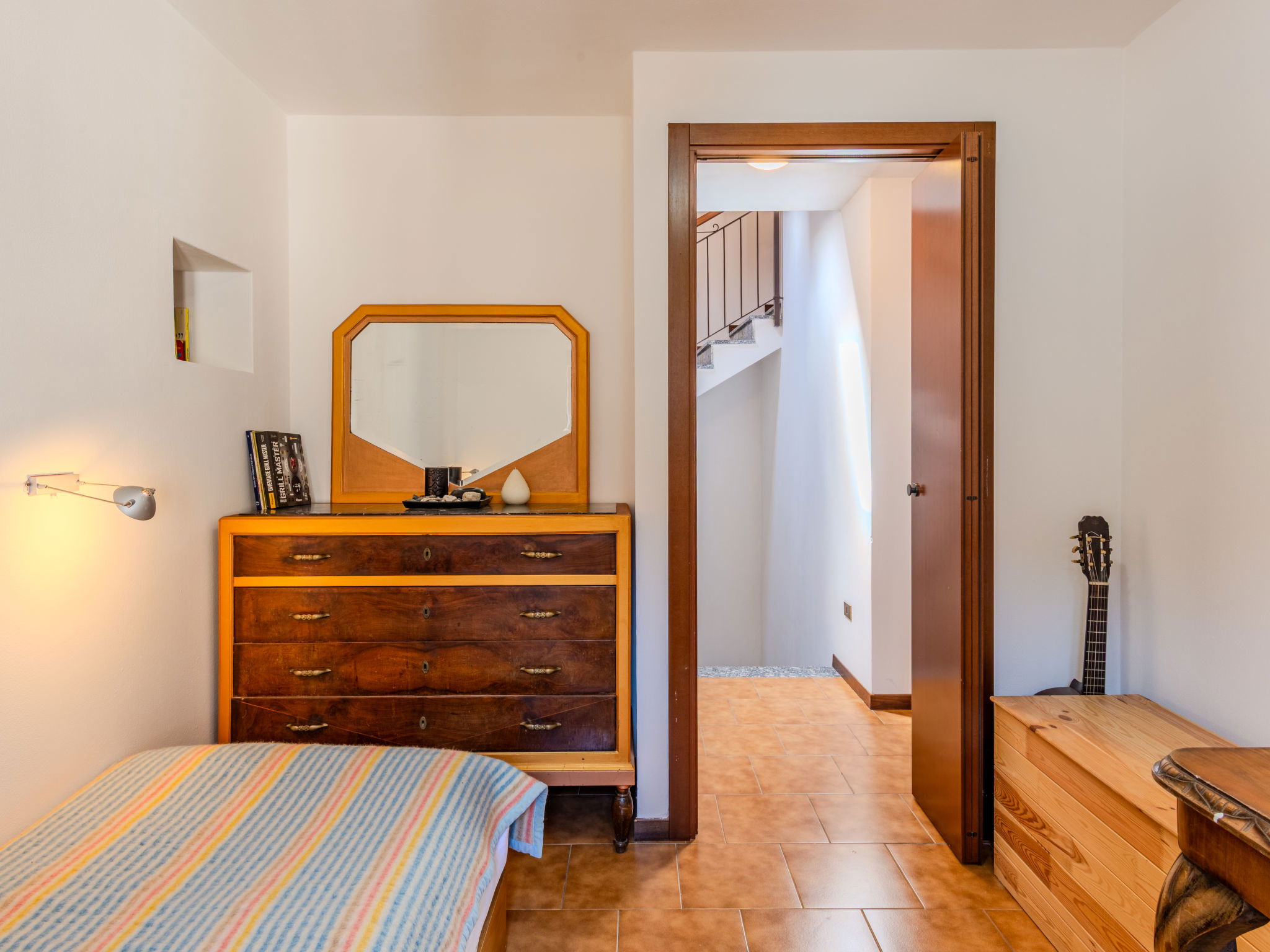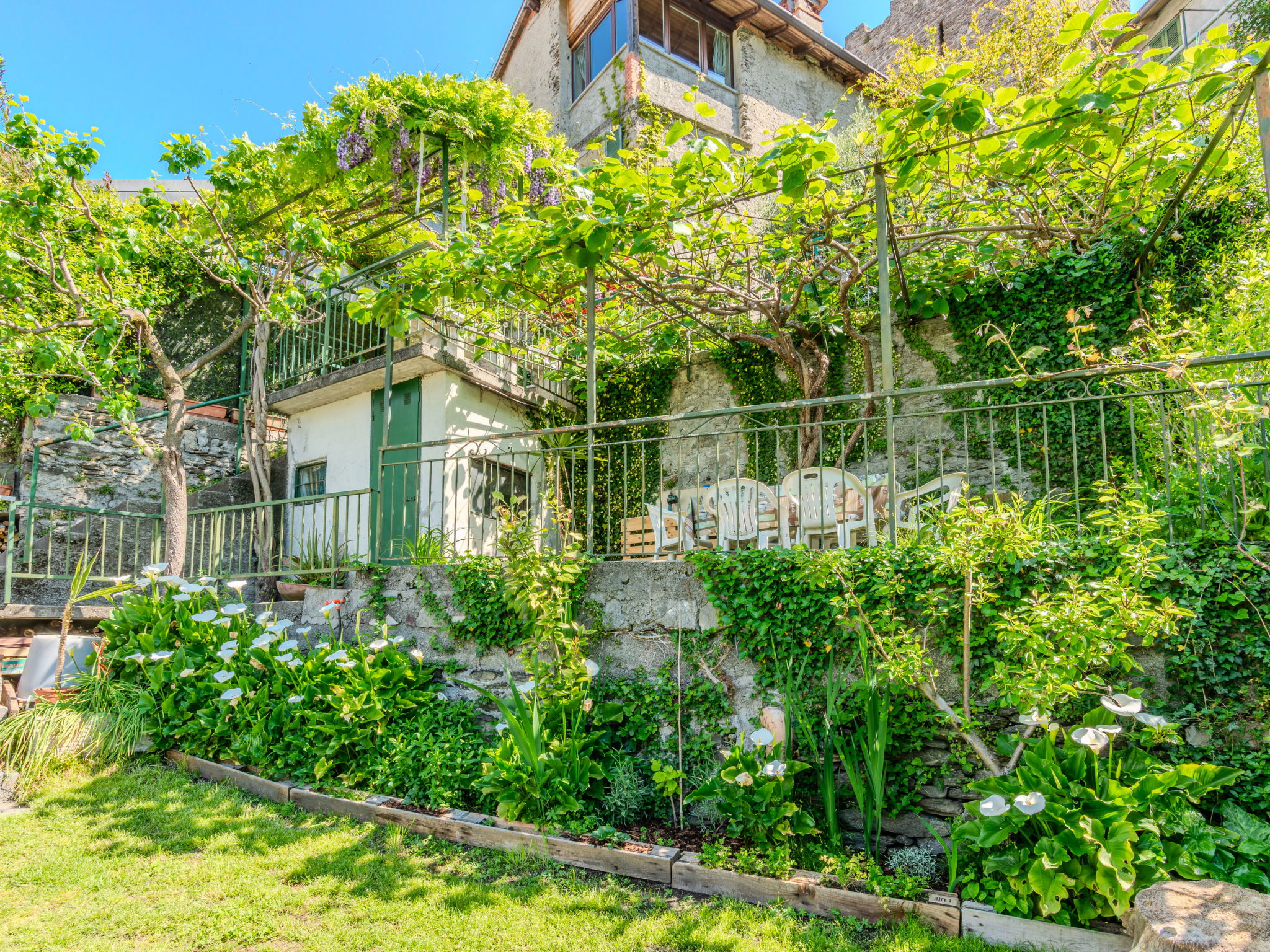 "rustico" cottage "Castello", 3 storeys, semi-detached. In the hamlet Castello 1 km from the centre of Dervio, 31 km from the centre of Lecco, 61 km from the centre of Como, traffic calmed area, 1.5 km from the lake, in a pedestrian area. Private: large terraced garden wildlife garden and trees. Linen change (suppl. charge extra). Towel change (suppl. charge extra). Room cleaning on request (extra). Very narrow motor access. 130 m footpath to the house. Public parking 350 m. Supermarket 1 km, restaurant 1.3 km, bakery 1 km, bus stop 300 m, railway station "Dervio" 1.3 km, ferry "Dervio" 1.9 km, pebble beach "Dervio" 1.5 km, outdoor swimming pool 400 m. Sports harbour 2 km, surf school 1.5 km, walking paths from the house 50 m, children's playground 1.5 km. Nearby attractions: Torre di Orezia, Acquapark Dervio, Castello di Vezio Varenna, Forte Montecchio Nord a Colico. Well-known ski regions can easily be reached: Madesimo, Livigno. Well-known lakes can easily be reached: Lago di Mezzola. Hiking paths: Sentiero del Viandante, Valvarrone, Valsassina. Please note: car recommended.