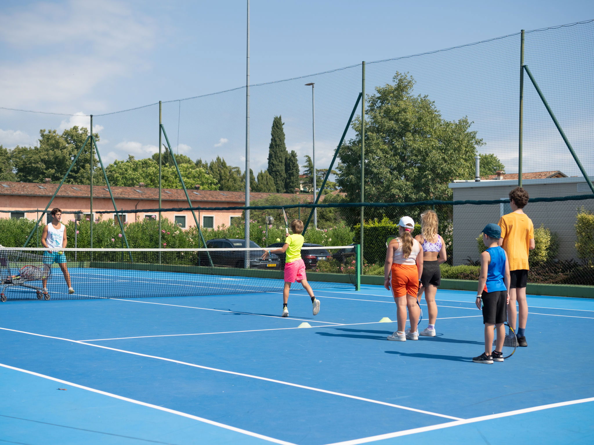 Large, child friendly holiday village "San Francesco Camping Village". 202 houses in the resort. In the district of Colombare, on the outskirts, 5 km from the centre of Sirmione, 100 m from the lake, 100 m from the beach, direct access to the beach. For shared use: property 16 ha, swimming pool (seasonal availability: 24.Apr. - 28.Sep.). WC in the pool area, children's pool, slide, outdoor shower, hot tub, tennis, table tennis, beach volleyball, children's playground. In the complex: reception, restaurant, bar, bistro, WiFi, fitness room, relaxation room, playroom, table football, kiosk, bicycle rental. Available: canoe, boat (extra). Parking on the premises. E-charging station. Supermarket 500 m, bus stop 450 m, ferry "Sirmione, Piazza Carducci" 4 km, sandy beach 100 m, thermal baths "Aquaria" 4.2 km. Marina 1.5 km, minigolf 100 m. Nearby attractions: Desenzano 5 km, Peschiera del Garda 9 km, Verona 40 km, Mantova 50 km. Please note: entertainment in the season. Suitable for families, baby equipment on request (extra).
