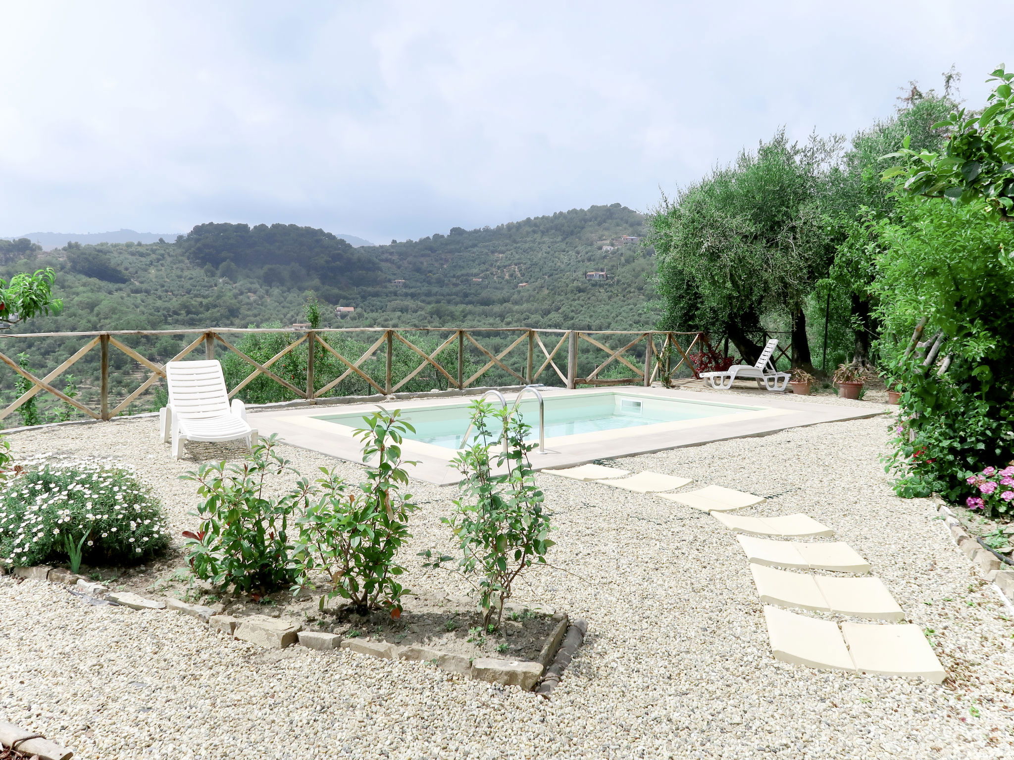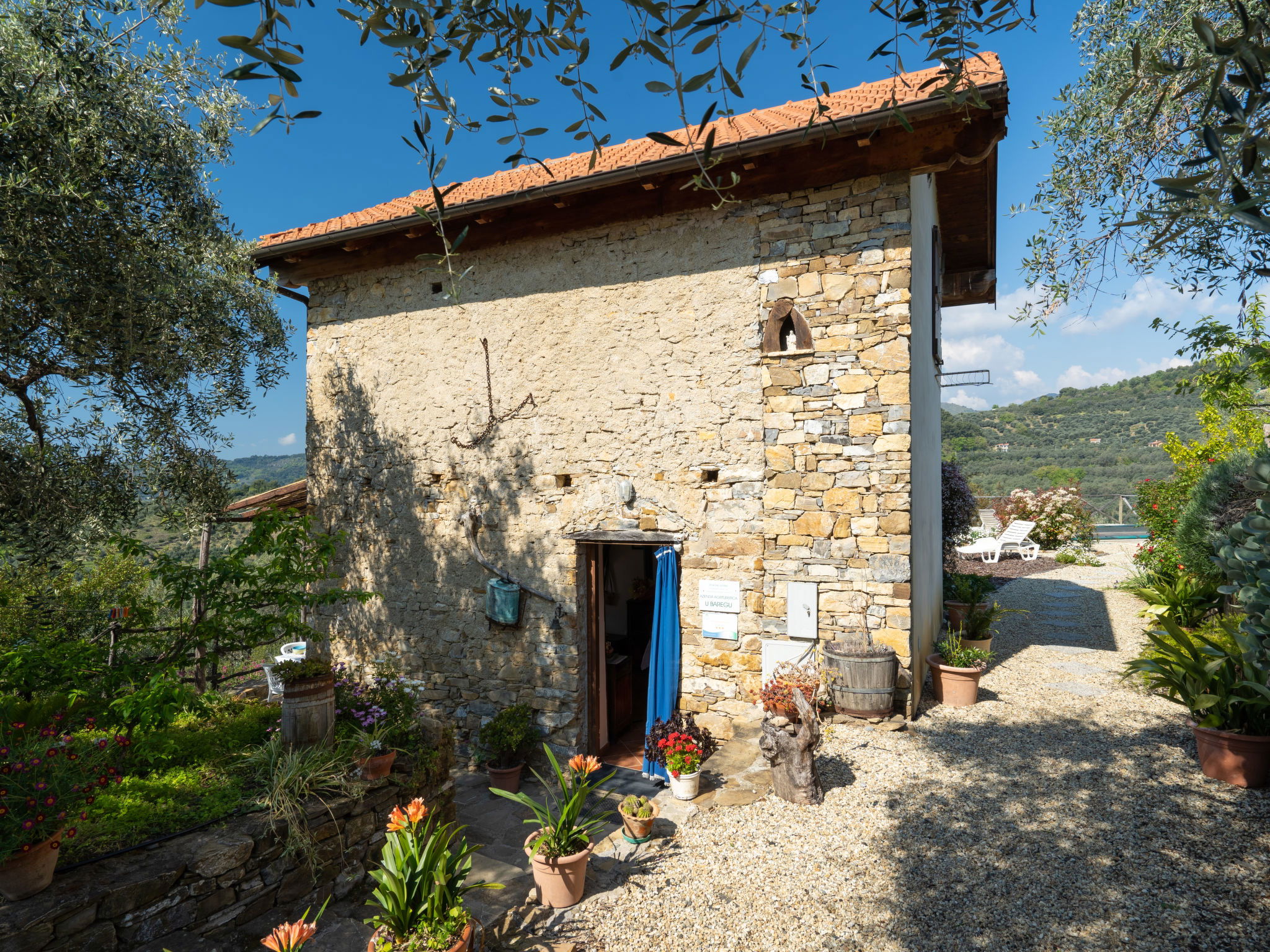 Small, cosy, rustic single-family house "Casa U Baregu". 5 km from the centre of Diano Marina, 11 km from the centre of Imperia, 22 km from the centre of Alassio, in a secluded, elevated position, 5 km from the sea, in the countryside. Private: property 20 ha, terraced garden with wildlife garden, orchard, swimming pool (6 x 3 m, depth 140 cm, seasonal availability: 01.Apr. - 31.Oct.). Pergola, terrace, garden furniture, barbecue, pool maintenance by the owner/gardener. 300 m long bumpy motor access. Stepped path to the house. Parking (for 2 cars) on the premises. Shop 2 km, supermarket 6 km, bus stop 10.9 km, sandy beach "Diano Marina" 5 km. Local sale of farm products. Please note: the owner lives on the same property.