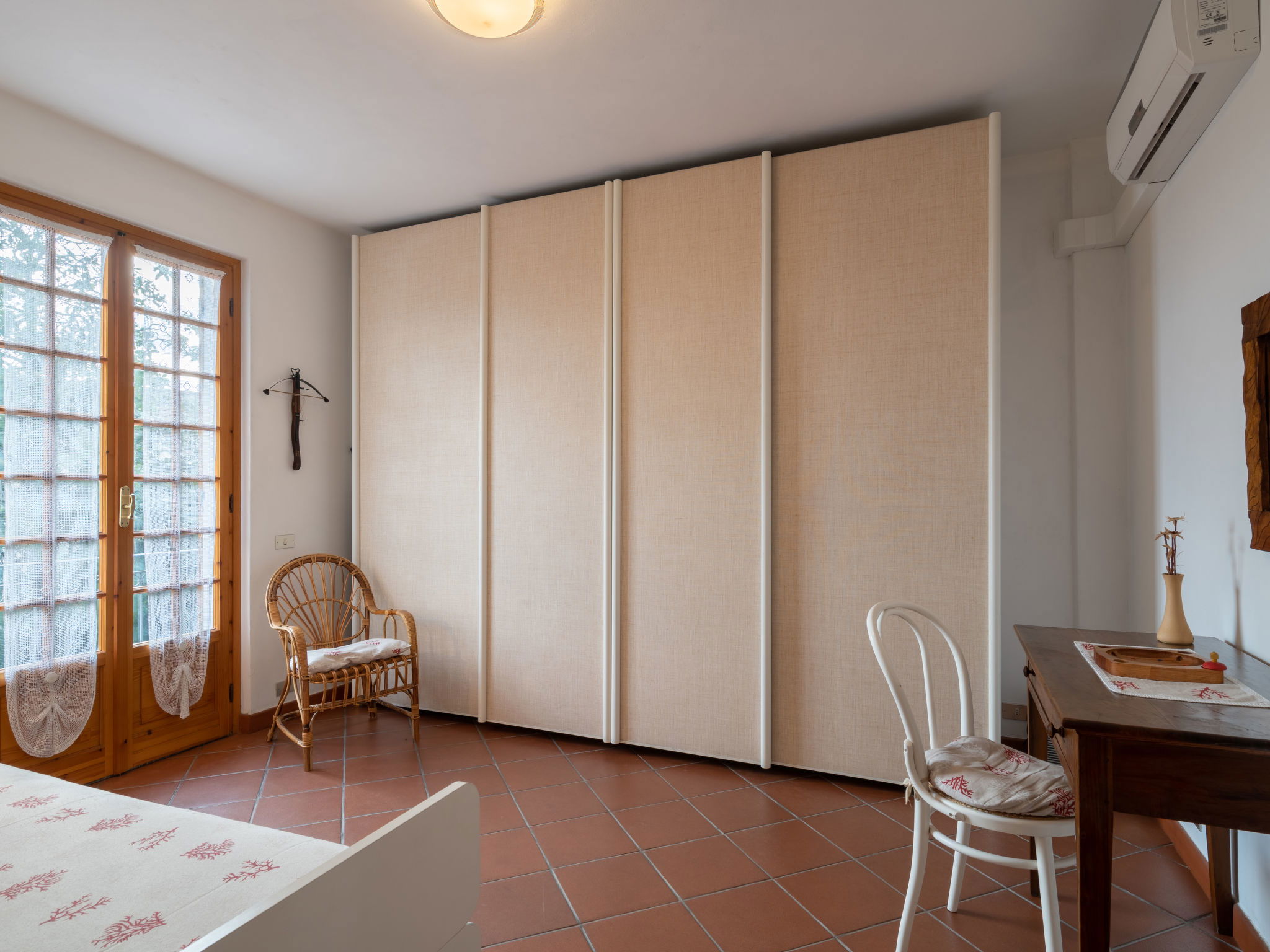 "Casa Paolo", 3-room house 80 m2, on the upper floor. Partly renovated in 2017, rustic and cosy furnishings: large living/dining room with open-hearth fireplace (only for decoration), dining table, satellite TV and DVD. 1 room with 1 french bed (160 cm). 1 room with 1 bed (80 cm), 1 pull-out bed (2 x 80 cm). Exit to the terrace. Small, open kitchen (mini-oven, oven, dishwasher, 4 gas rings, toaster, kettle, freezer, electric coffee machine) with bar. Shower/WC. Heating, air-conditioning. Terrace 50 m2, roofed. Terrace furniture, barbecue, deck chairs (2), box-room. Beautiful distant view of the countryside, the resort and the ocean. Facilities: washing machine, iron, baby cot. Internet (WiFi). Please note: maximum 2 pets/ dogs allowed. Private entrance. IT008028C26ZEPPTL7