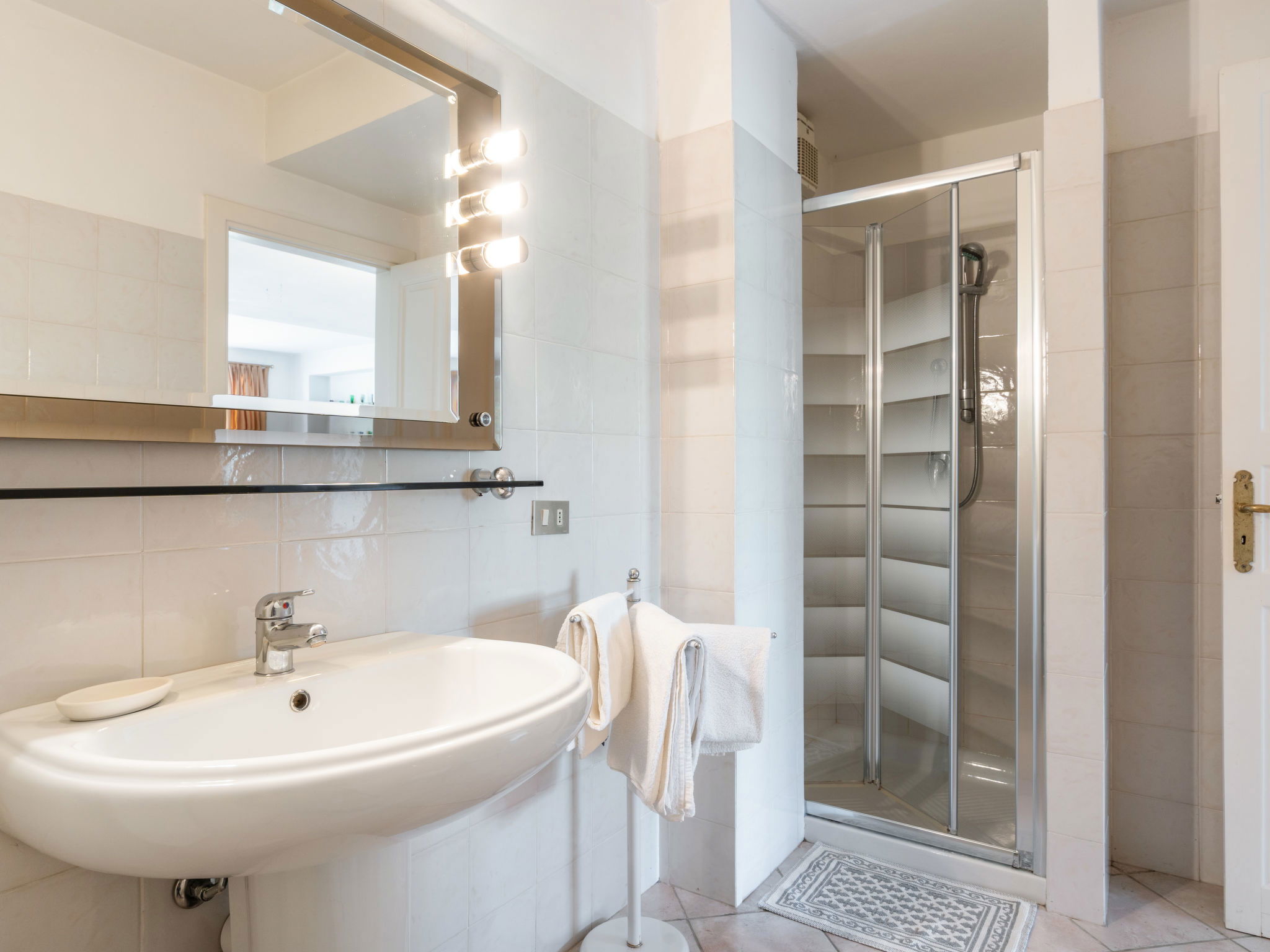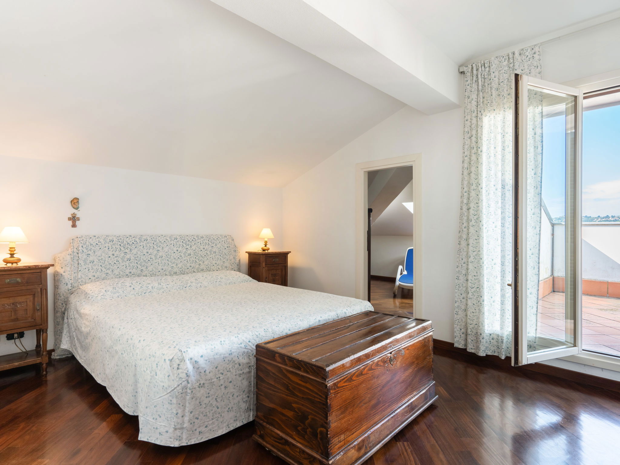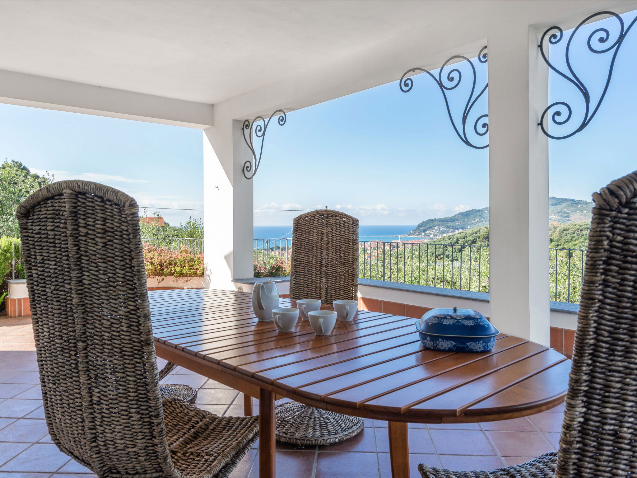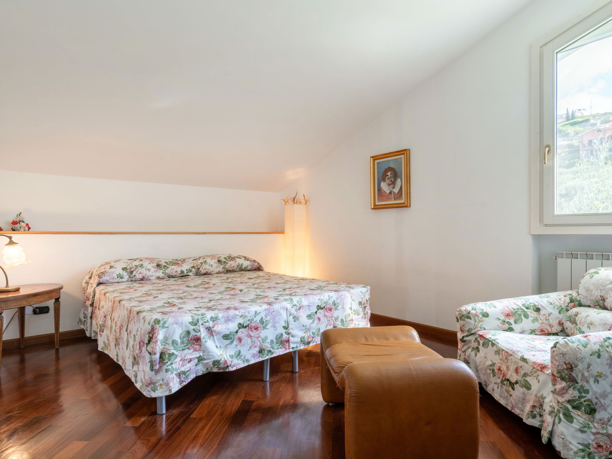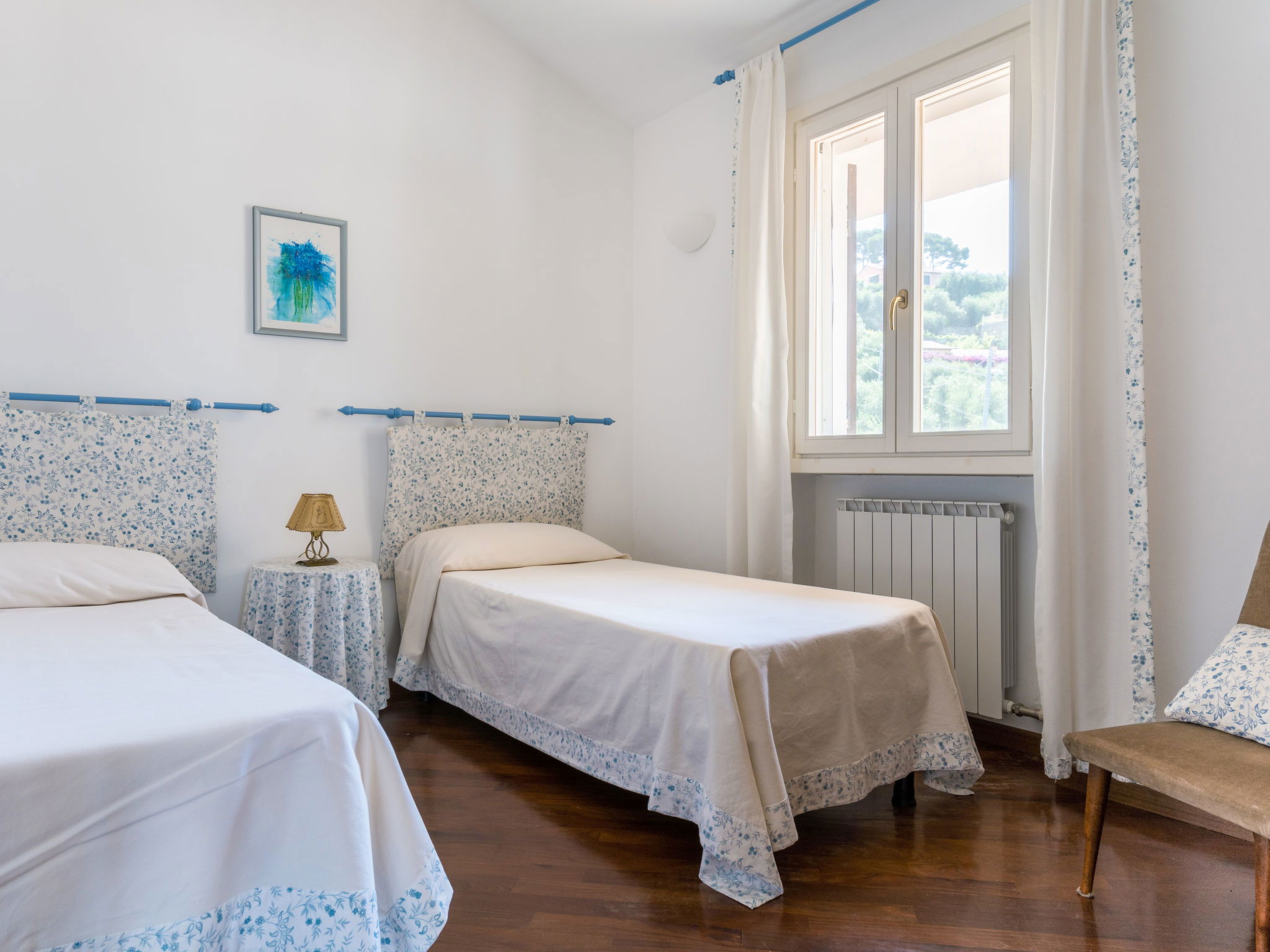 "Alberto", 9-room house 250 m2 on 3 levels. Spacious, comfortable and tasteful furnishings: living/sleeping room with 1 double sofabed (160 cm), dining table, satellite TV and wood-burning stove. Exit to the terrace. 2 rooms, each room with 1 double bed. 1 room, without window with 2 beds (80 cm). Open kitchen (oven, 4 gas rings, toaster, freezer, electric coffee machine) with dining table. Bath/shower/bidet/WC. Upper floor: large living room with open-hearth fireplace and satellite TV. Exit to the terrace. 1 room with 2 beds (80 cm). Kitchen (oven, dishwasher, 5 gas rings, toaster, kettle, microwave, freezer, electric coffee machine). Bath/bidet/WC. 2nd upper floor: 1 room with Dressing room with 1 double bed and shower/WC. Exit to the terrace. 1 room with 1 double bed. 1 room with 2 beds. Bath/shower/WC. Electric heating, air-conditioning. Parquet floors. Box-room. Very beautiful view of the sea, the countryside and the town. Facilities: washing machine, iron. Internet (WiFi, free). Parking (5 cars). E-charging station. Please note: non-smoking house. Maximum 1 pet/ dog allowed. No internal connecting door between the separated properties. The pool mentioned in the description is for private use. Bed layout is flexible. There are more sleeping options available than the maximum number of people allowed which may, however, not be exceeded. IT008026C267R5AAQC