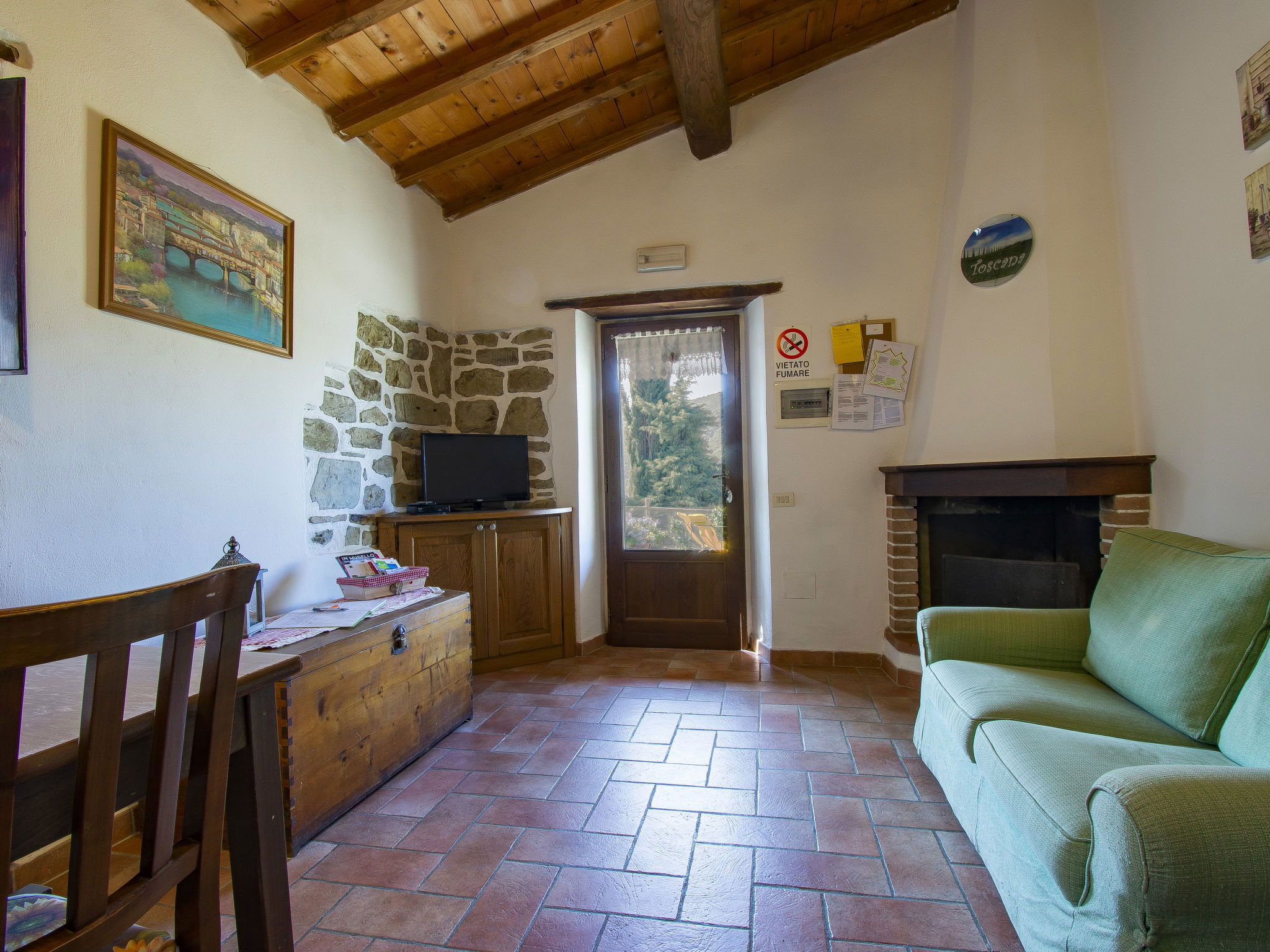 Single-family house "Il Poderino", 500 m a.s.l., renovated. 7 km from the centre of Dicomano, 14 km from the centre of Rufina, 40 km from the centre of Firenze, 3 km from the lake, in the countryside. Private: natural state property 700 m2, garden 300 m2 (fenced), swimming pool (above ground) (3.5 m diameter, seasonal availability: 01.May. - 30.Sep.). Arbour, terrace (30 m2), garden furniture, barbecue. In the house: sauna, hot tub (extra). Heating available only from 15.Nov. - 15.Apr.. 600 m long steep, narrow motor access (700 m via unmade road). Parking. Supermarket 3 km, bus stop 4 km, railway station "Contea Londa" 5 km. Groups of teenagers on request only.
