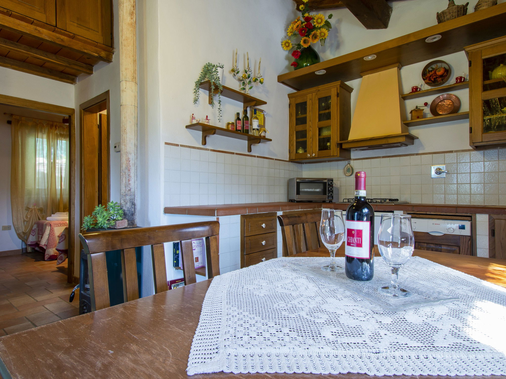 "Il Poderino", 3-room house 60 m2. Renovated in 2010, practical furnishings: living/sleeping room with (80 cm), 1 sofabed, open-hearth fireplace and satellite TV. 1 room with 1 french bed (160 cm). 1 small room with 2 beds (80 cm). Small, open kitchen (dishwasher, 4 gas rings, toaster, kettle, microwave, electric coffee machine) with dining table. Shower/bidet/WC. Heating, gas heating. Deck chairs. Panoramic view. Facilities: washing machine, baby cot. Internet (WiFi, free). Please note: non-smoking house. Maximum 2 pets/ dogs allowed. IT048013C1IADFRFE9