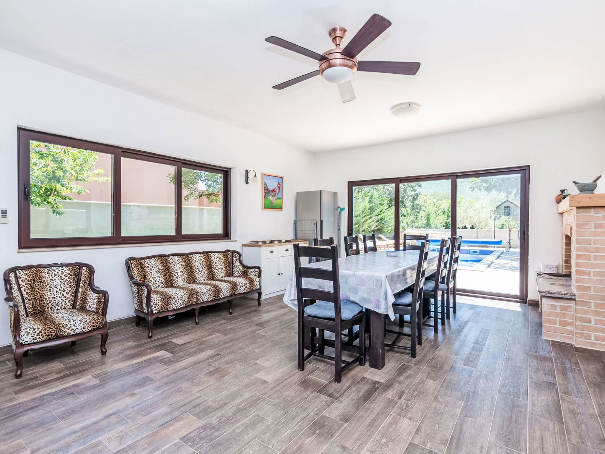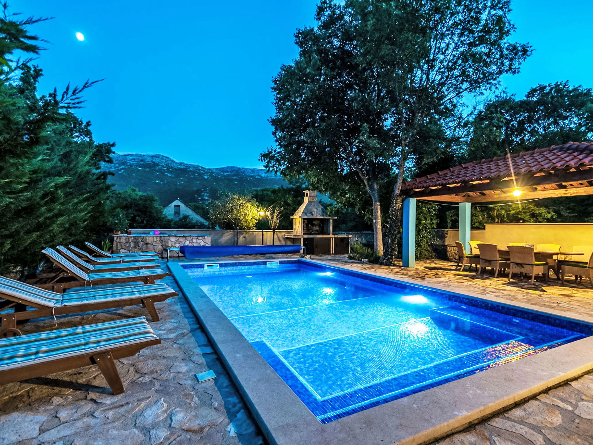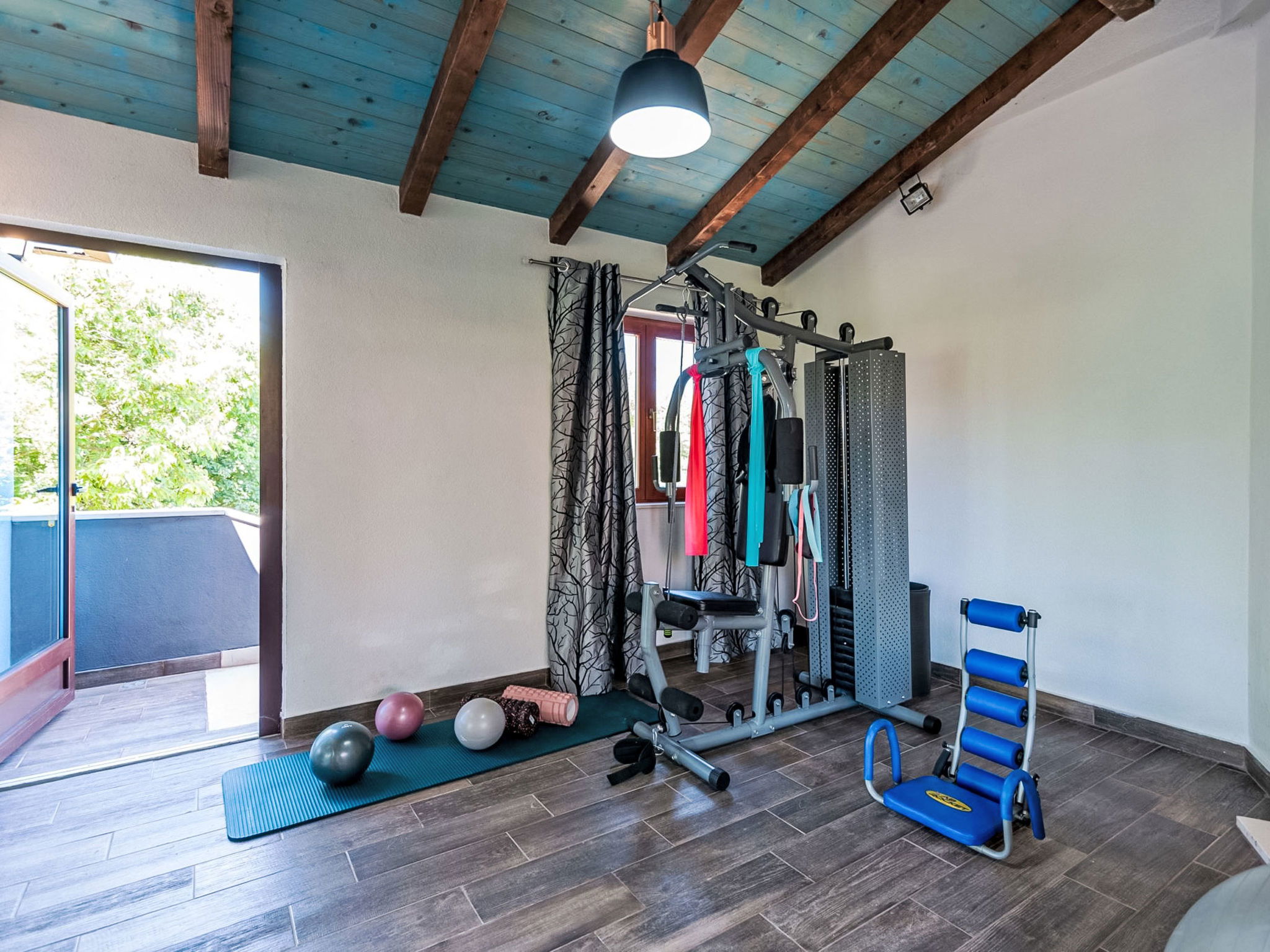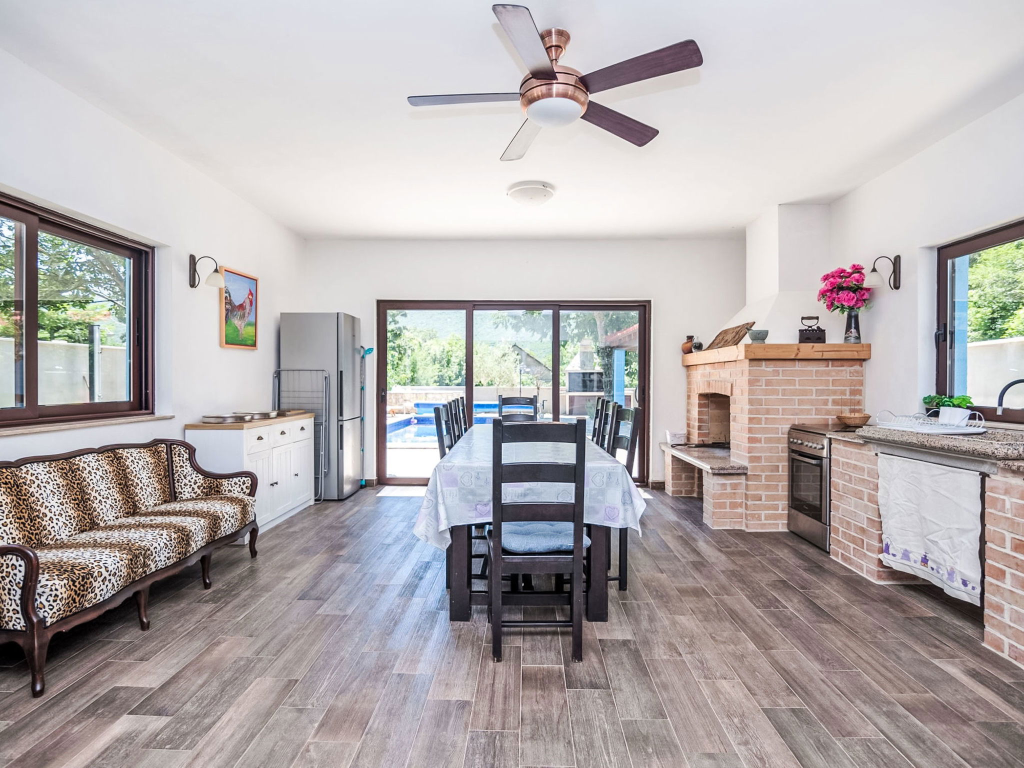 Single-family house "Lino", 2 storeys. 20 km from the centre of Split, in a secluded, quiet, sunny position, 18 km from the sea, 18 km from the beach. Private: property 600 m2, swimming pool angular (8 x 4 m, depth 140 - 170 cm, seasonal availability: 01.May. - 01.Oct.) with internal staircase. Outdoor shower, hot tub, terrace (14 m2), barbecue. In the house: internet access, fitness room, table tennis, billiard table, table football, washing machine. Parking, single garage. Shop 3 km, restaurant 600 m, bus stop 200 m, pebble beach 18 km, rocky beach 18 km.