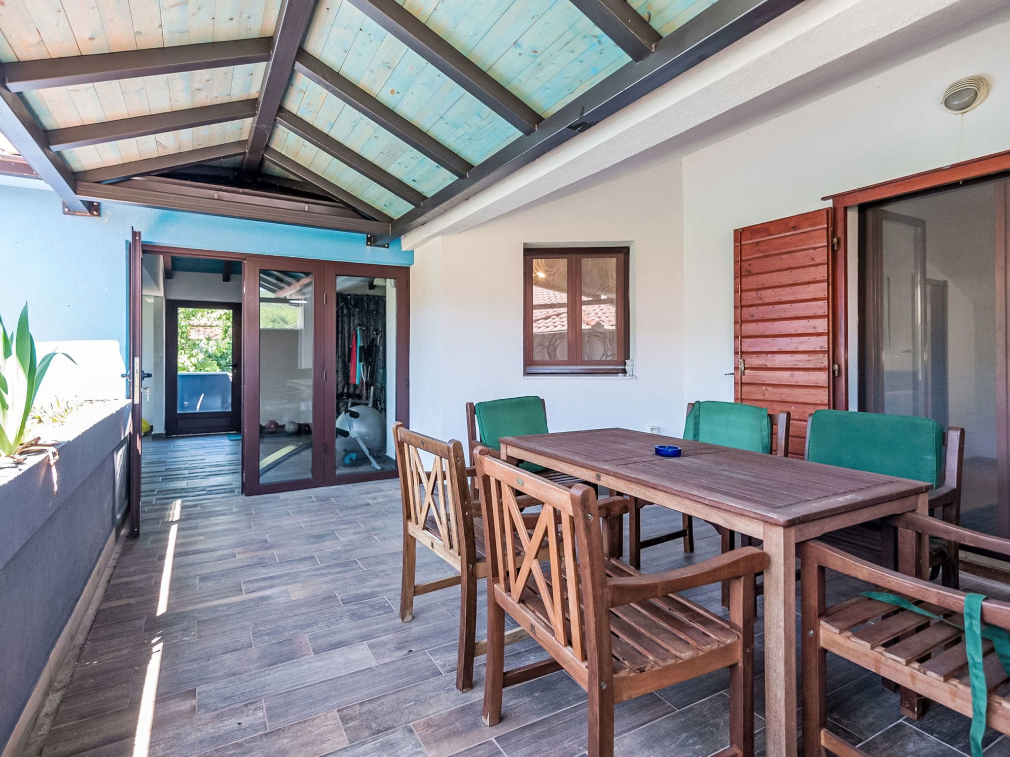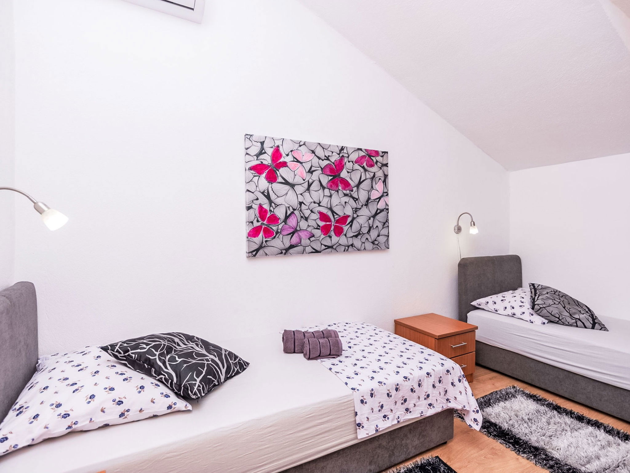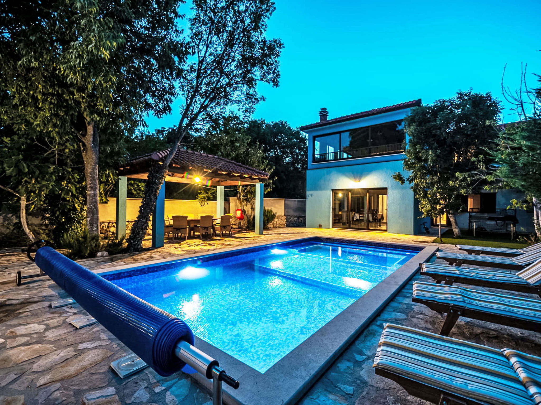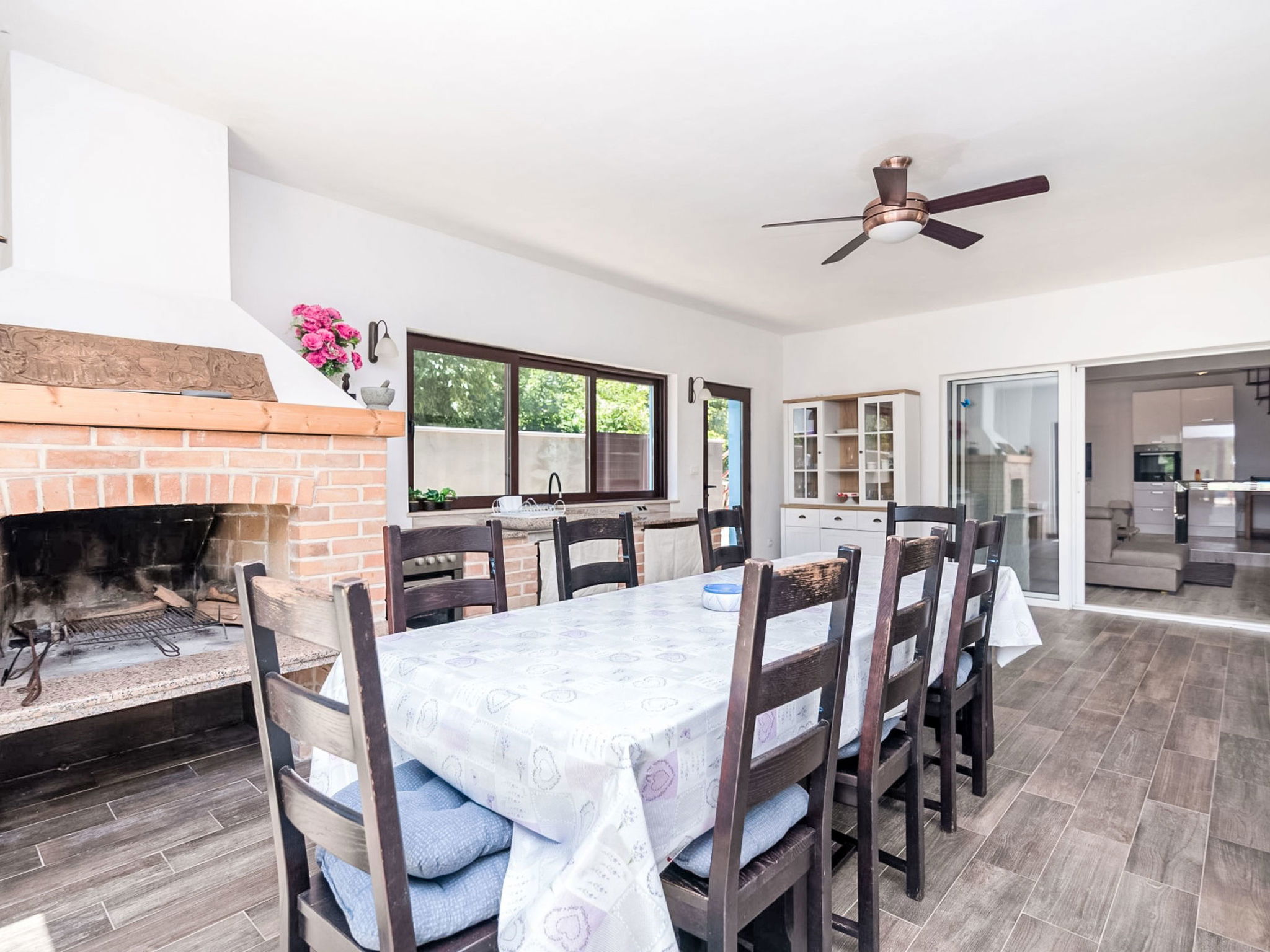 Single-family house "Lino", 2 storeys. 20 km from the centre of Split, in a secluded, quiet, sunny position, 18 km from the sea, 18 km from the beach. Private: property 600 m2, swimming pool angular (8 x 4 m, depth 140 - 170 cm, seasonal availability: 01.May. - 01.Oct.) with internal staircase. Outdoor shower, hot tub, terrace (14 m2), barbecue. In the house: internet access, fitness room, table tennis, billiard table, table football, washing machine. Parking, single garage. Shop 3 km, restaurant 600 m, bus stop 200 m, pebble beach 18 km, rocky beach 18 km.
