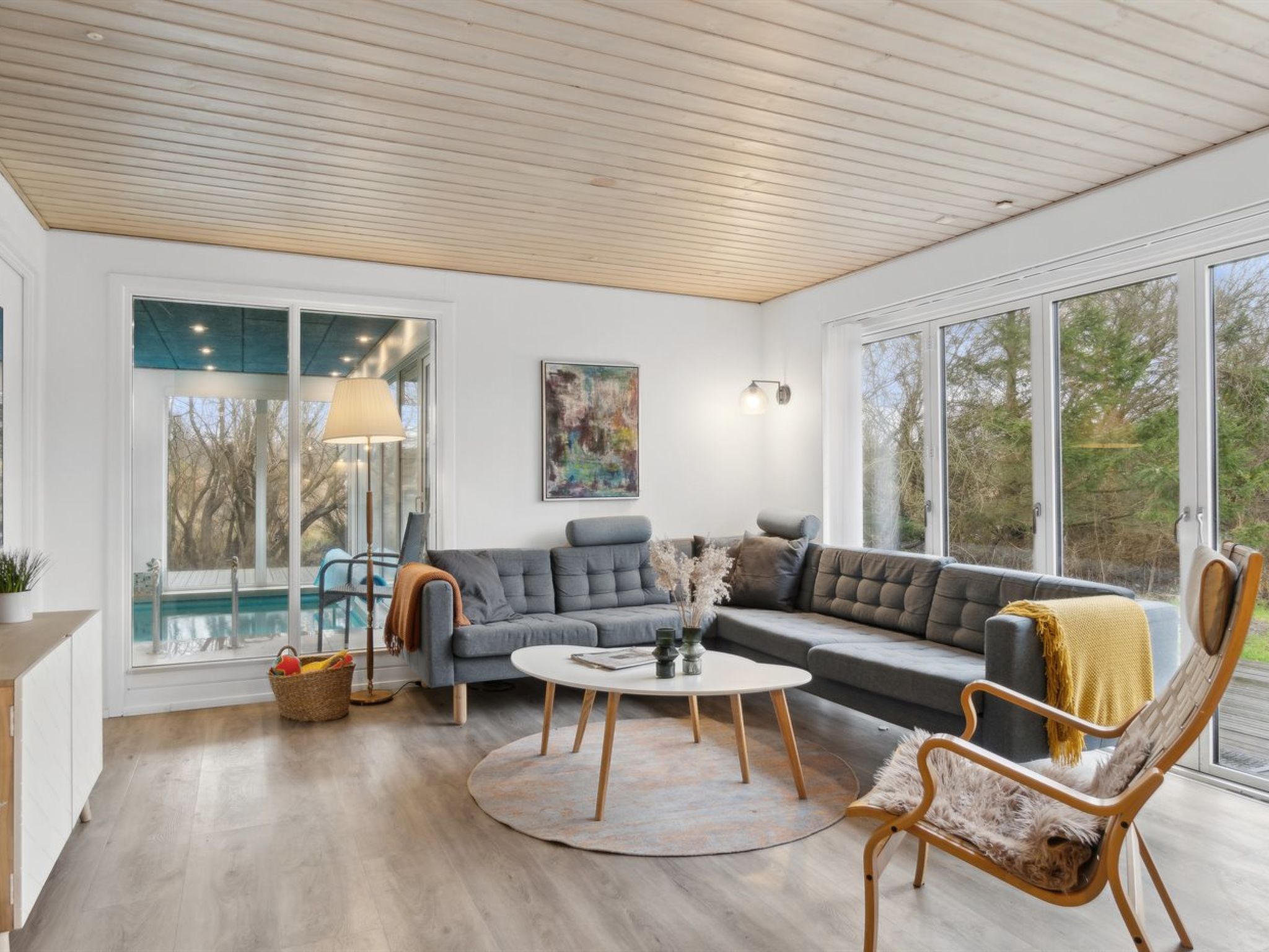 Single-family house, built in 1992. 100 m from the sea. Private: natural state property 1'358 m2, indoor pool (3 x 6 m, 18 m2, depth 140 - 140 cm). Barbecue, children's playground (slide, swing). In the house: sauna, washing machine, tumble dryer. Parking at the house. E-charging station. Grocery 500 m. The owner does not accept any youth groups.