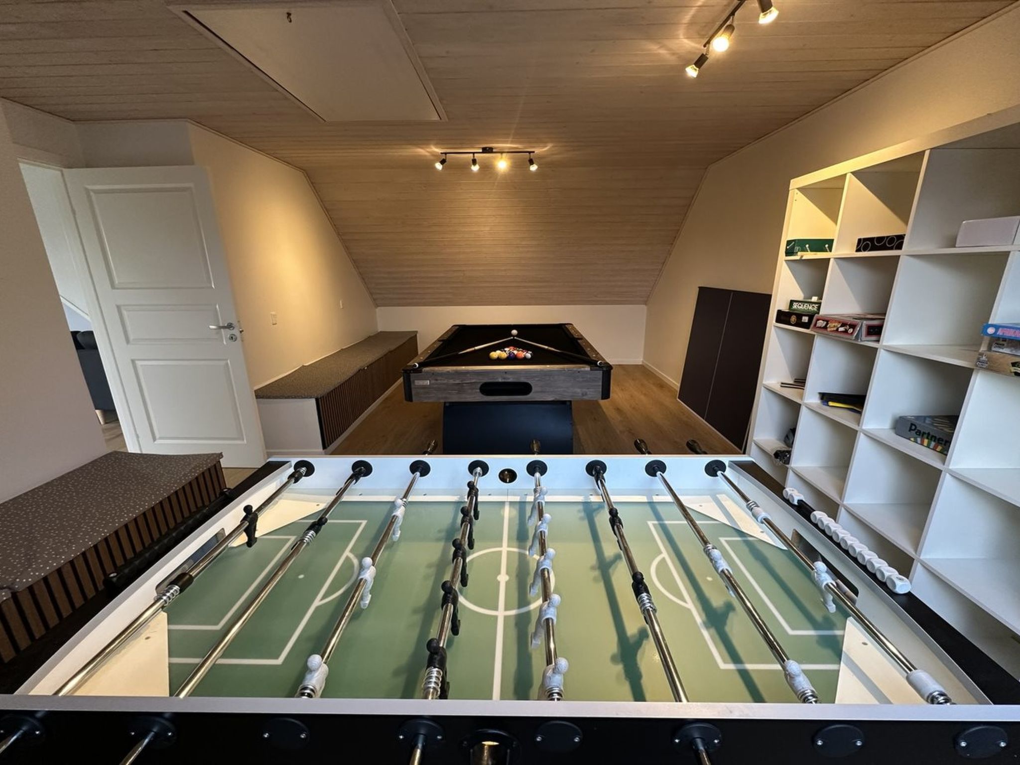Single-family house, built in 1989. 2 km from the sea. For shared use: garden. Private: natural state property 1'250 m2, garden (fenced). Barbecue, children's playground. In the house: table football, washing machine, tumble dryer. Parking at the house. Grocery 1 km. Golf course 3 km. The owner does not accept any youth groups.
