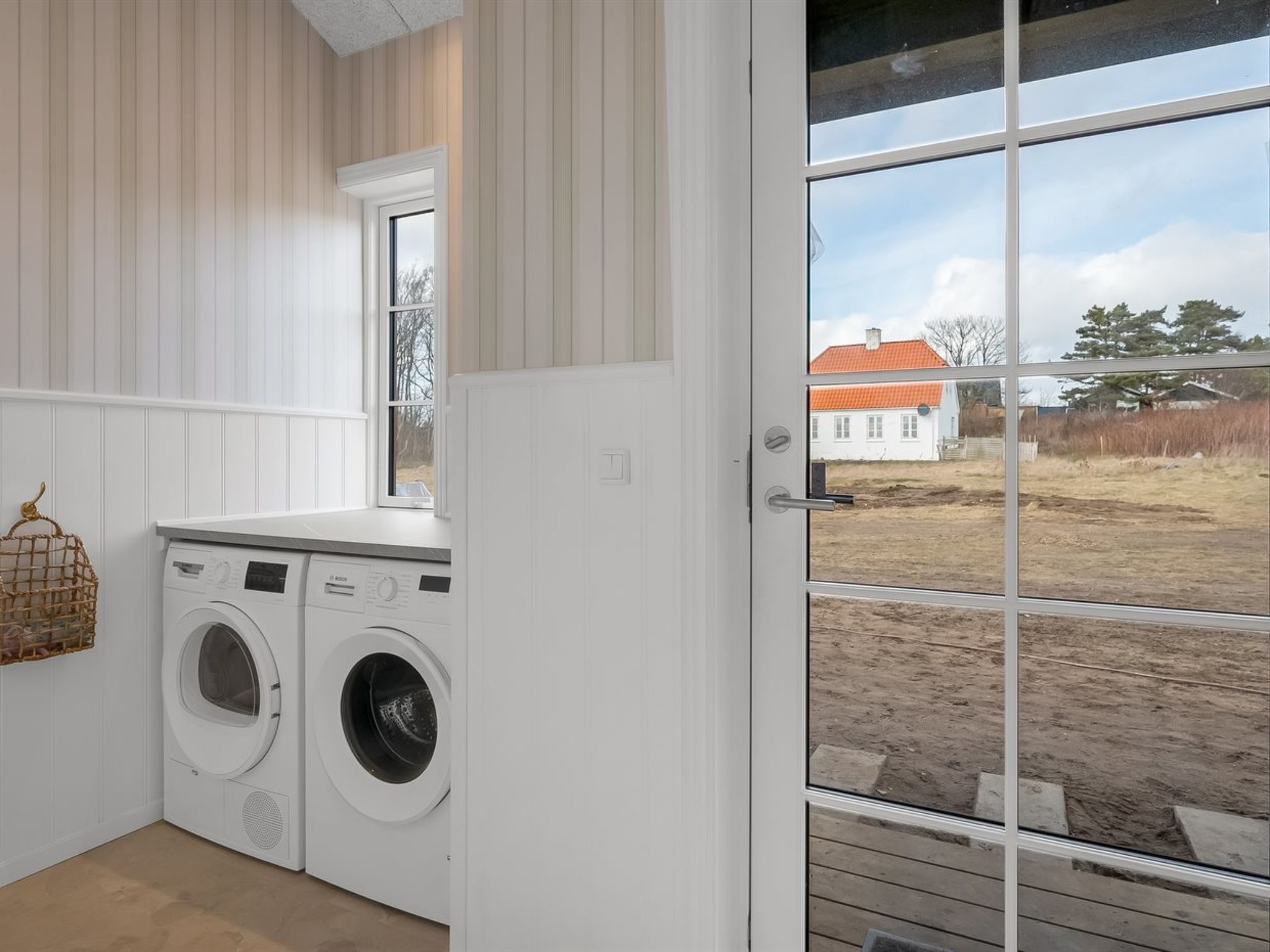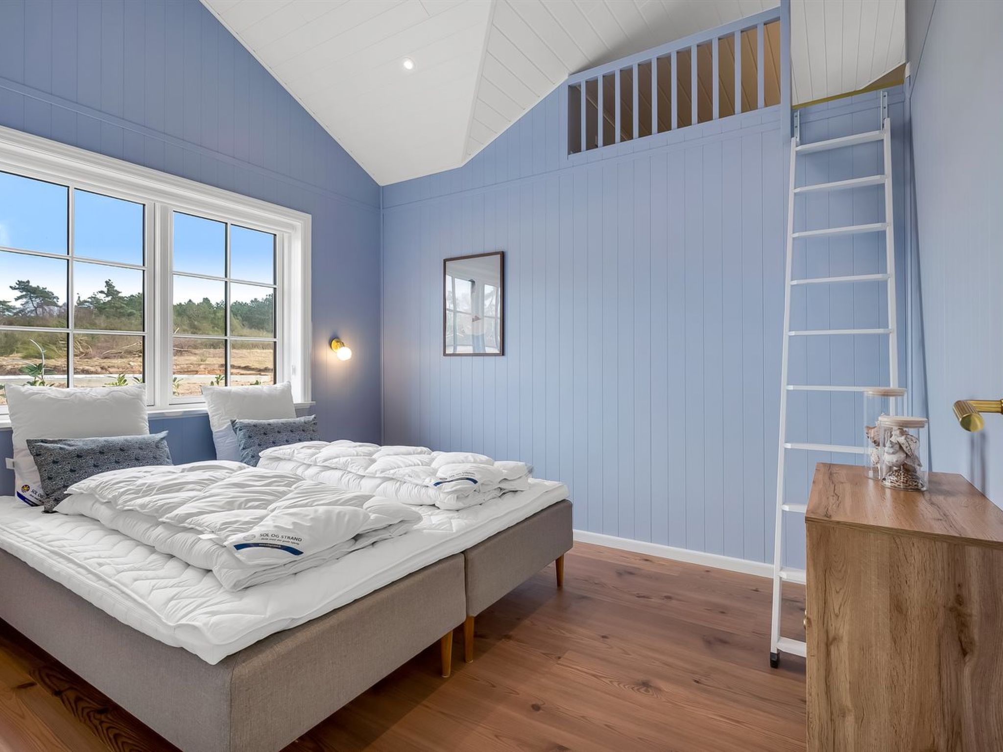 Single-family house, built in 2026. 650 m from the sea. Private: natural state property 1'200 m2. Outdoor shower, barbecue. In the house: table football, trampoline, washing machine, tumble dryer. Parking at the house. E-charging station. Grocery 1.5 km. Golf course 4 km. The owner does not accept any youth groups.