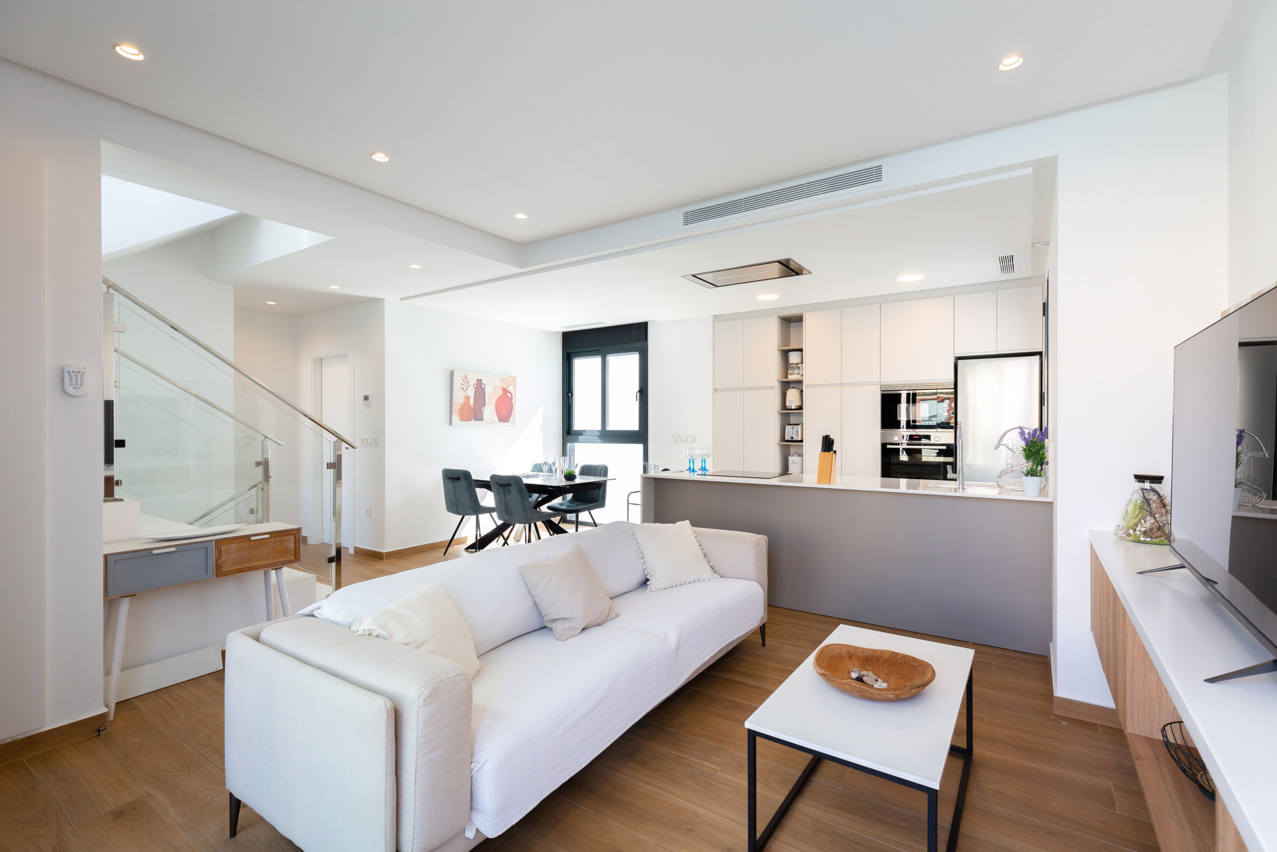 The cosy living spaces are perfect for taking a moment to relax, sink into the comfy sofa, curl up with a captivating book, watch your favorite show, or plan your next adventures in El Campello.