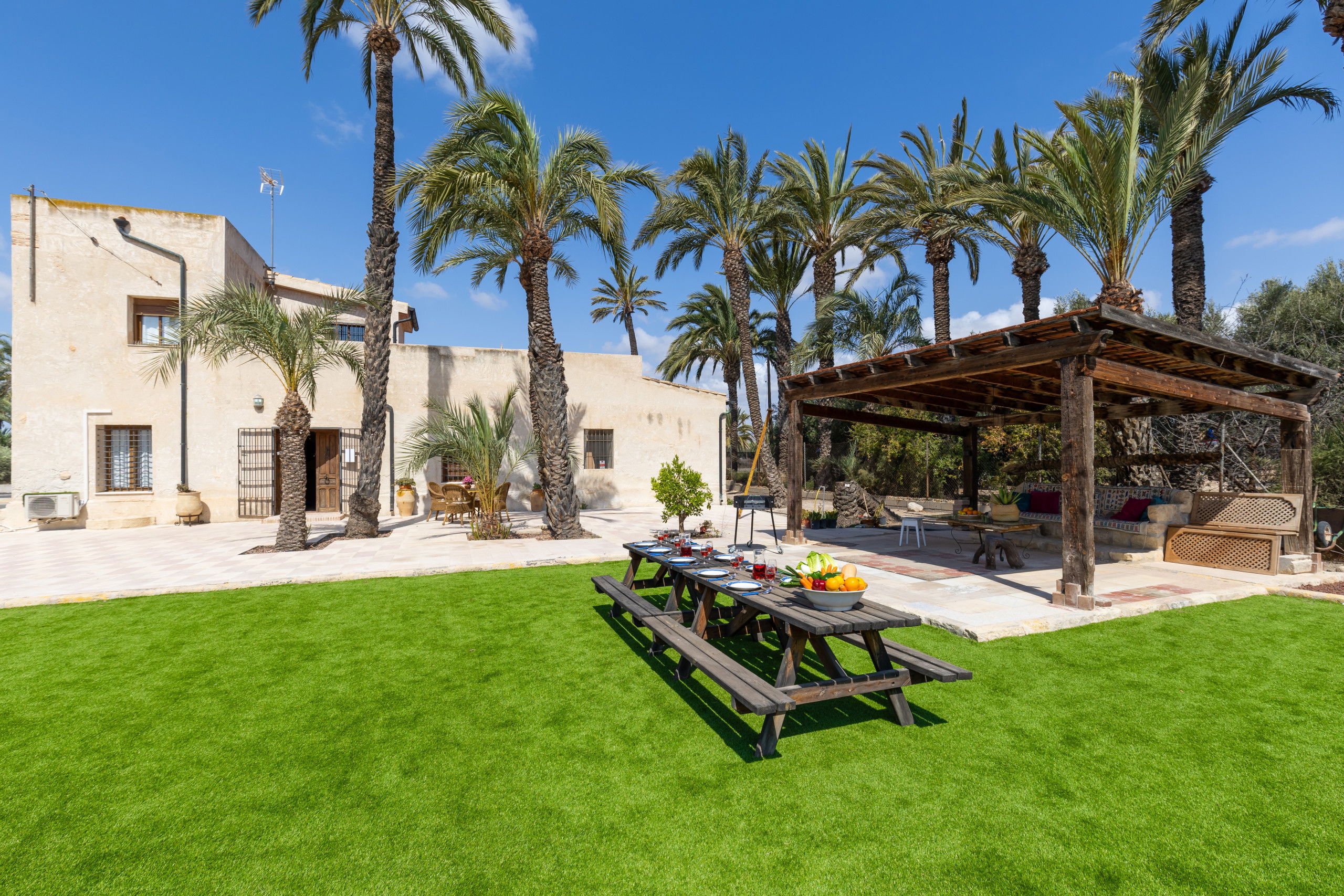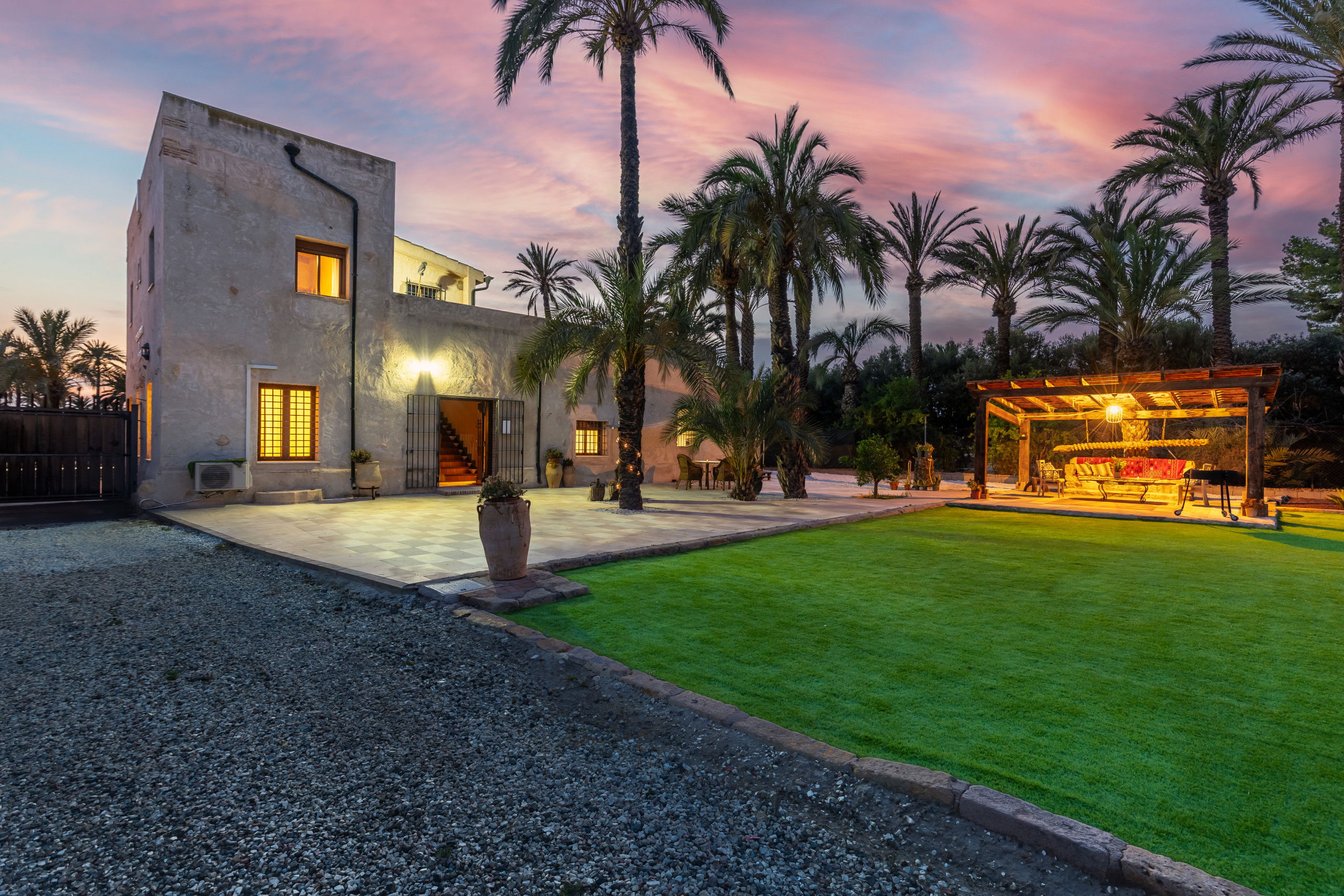 Discover this impressive private estate from the last century with a private pool and barbecue, located 2 km from Elche, surrounded by majestic century-old palm trees that provide a natural and exclusive environment. This property, ideal for enjoying with family or friends, offers a perfect combination of comfort and elegance.