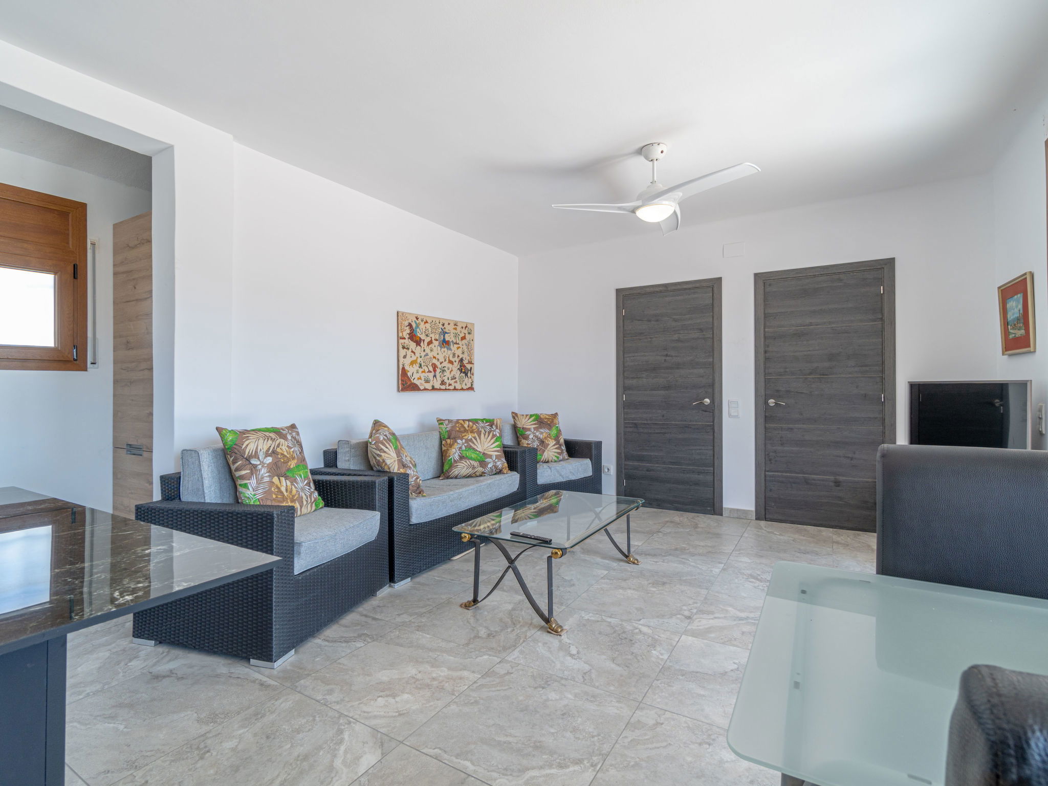 3-room house 60 m2. Bright, comfortable and beautiful furnishings: living/dining room with dining table and satellite TV (flat screen). Exit to the patio, to the swimming pool. 1 room with 1 french bed (140 cm, length 190 cm). 1 room with 2 beds (90 cm, length 190 cm). Open kitchen (4 gas rings, toaster, kettle, microwave, freezer, electric coffee machine). Shower/WC. No heating option. Patio. Terrace furniture. Facilities: washing machine, iron, hair dryer. Internet (WiFi, free). Parking (1 car). Please note: one double bedroom is outside the apartment. Non-smoking house. Maximum 1 pet/ dog allowed. TV only FR, DE. HUTG-022071 // Reg. Nr.: ESFCTU00001702000062094700000000000000HUTG-022071-763