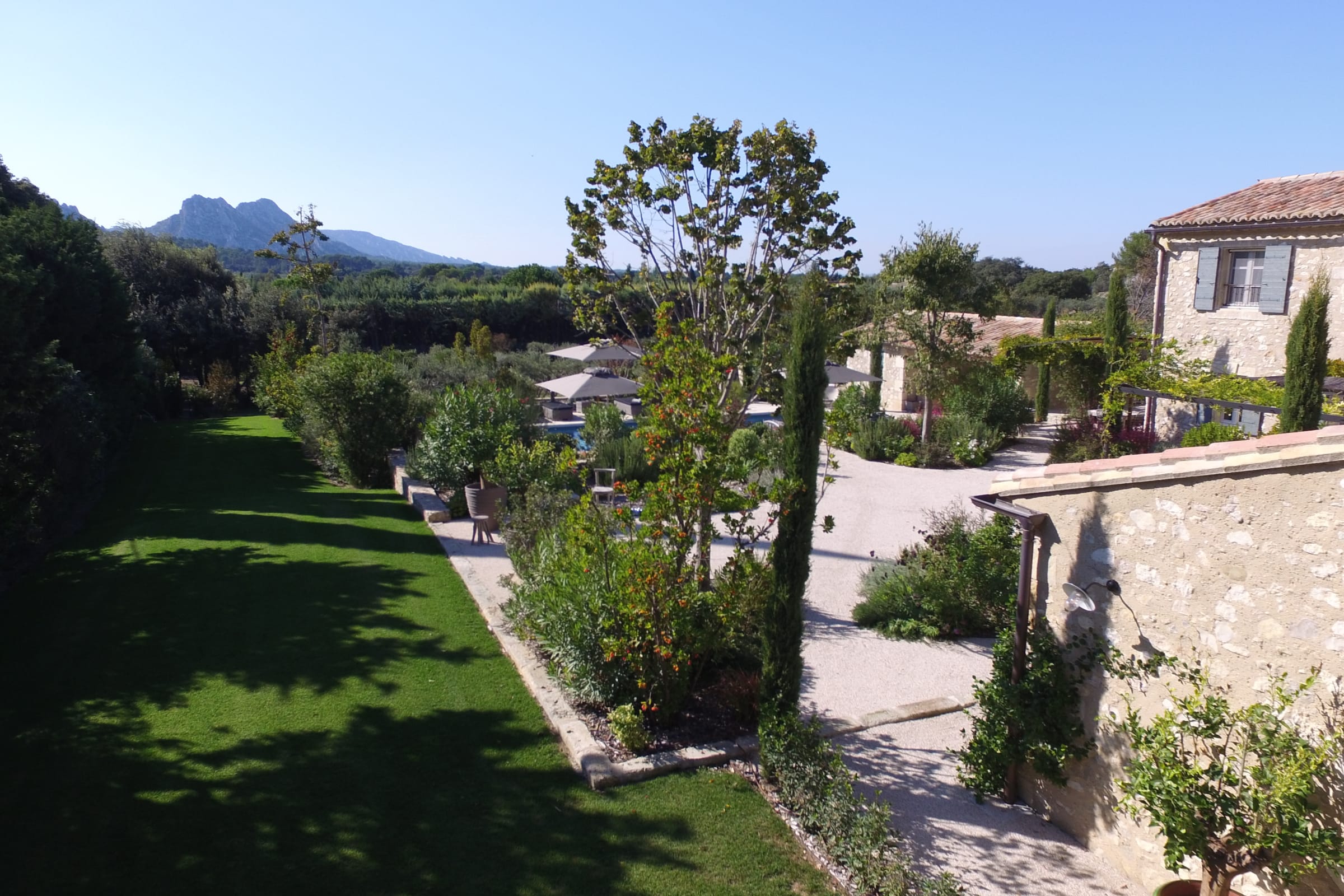 Spacious shaded terraces for outdoor dining, aperitifs facing the sunset over the Alpilles
