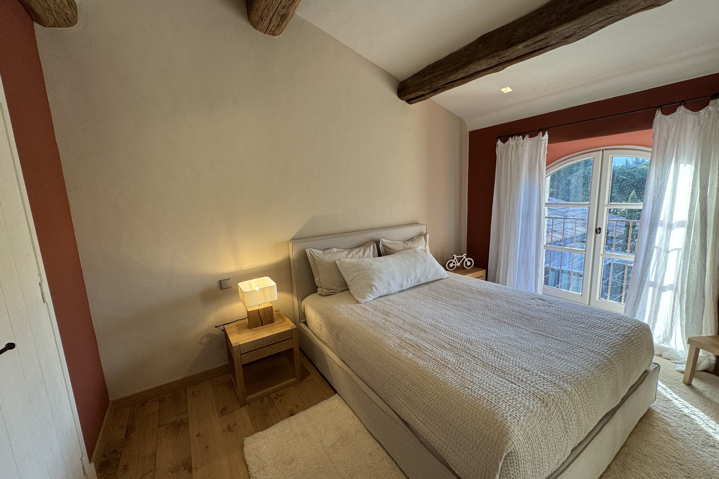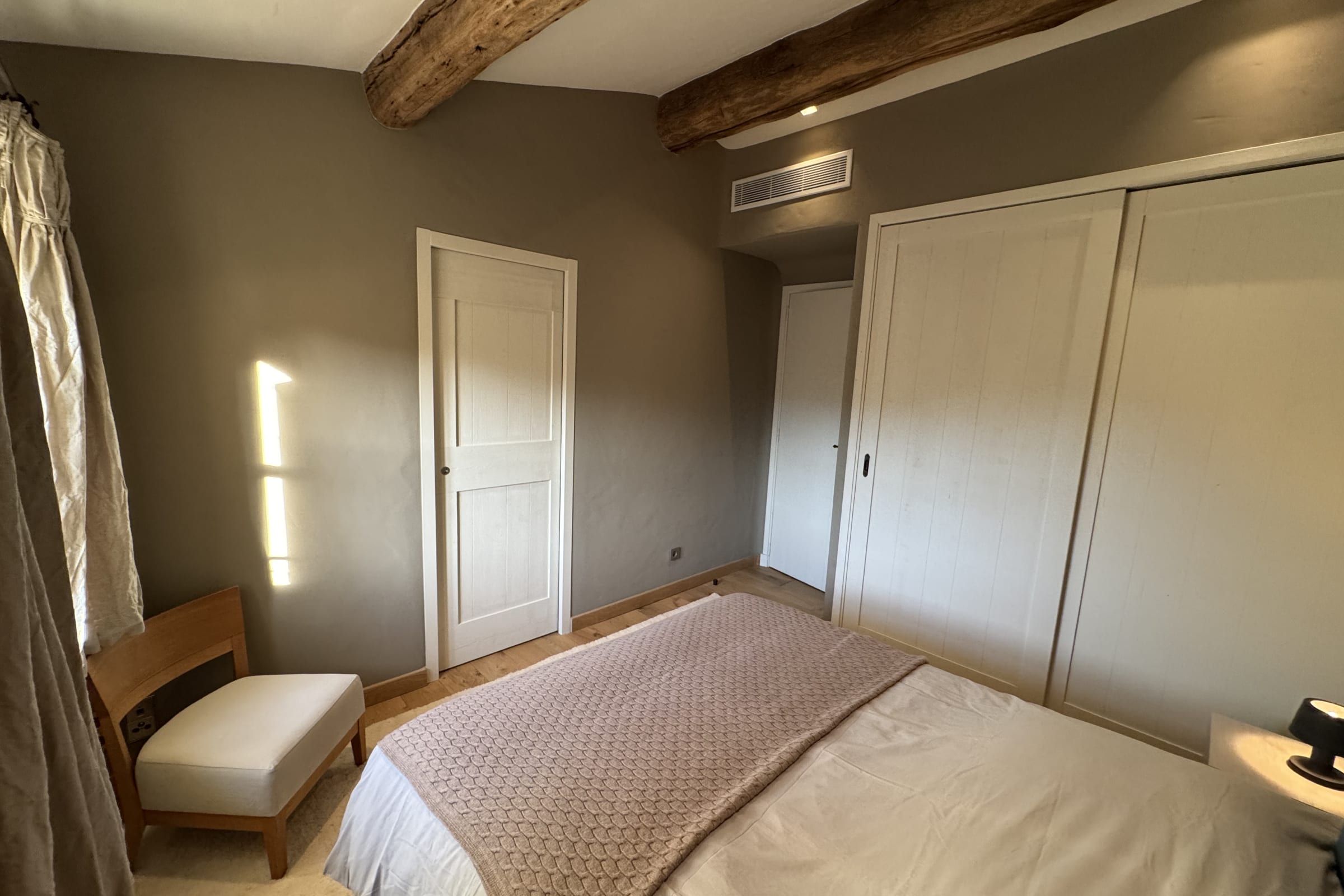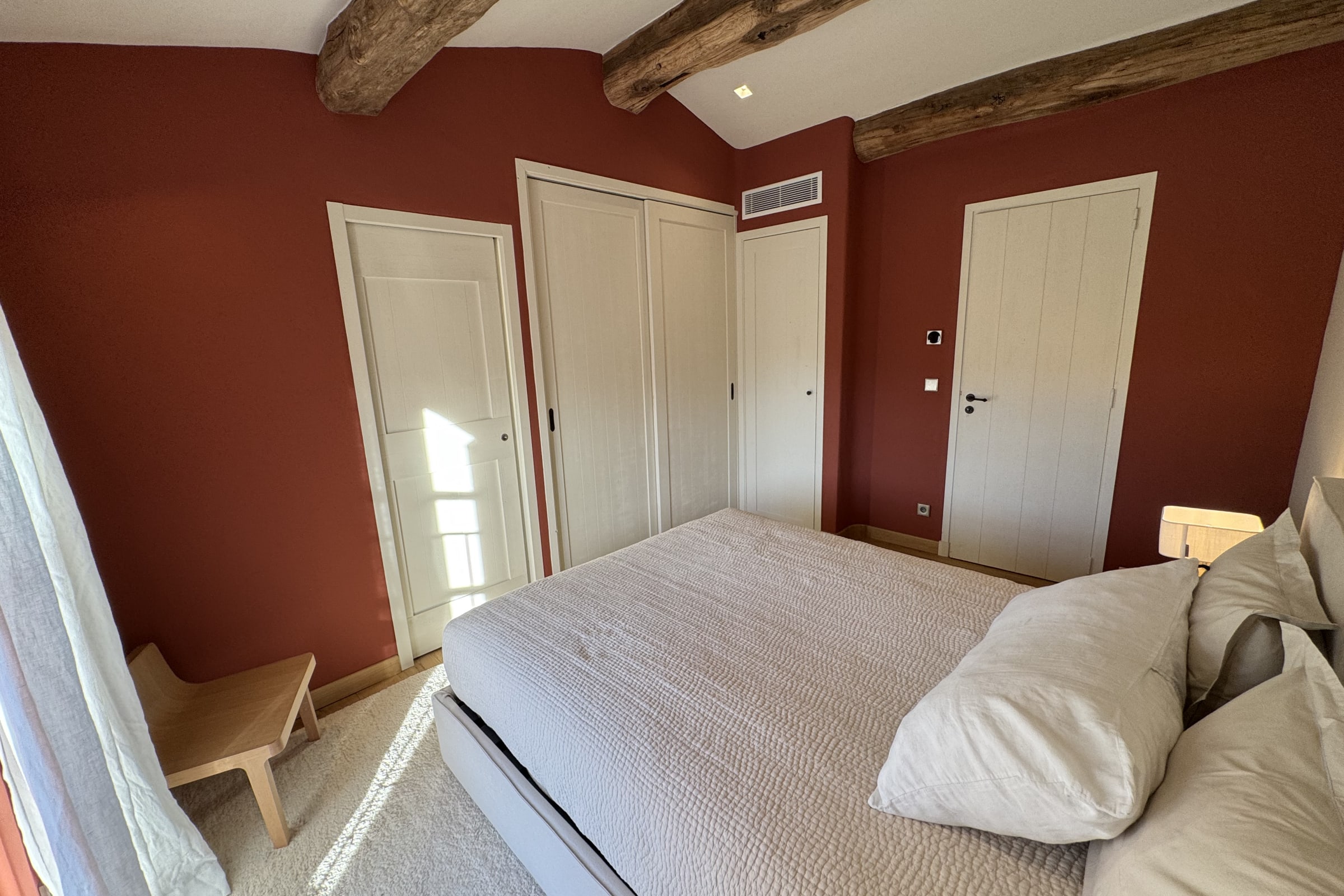 Bedroom 3: queen-size bed 160x200 cm, large closets, bathroom with sink, shower and WC. View of Eygalières village